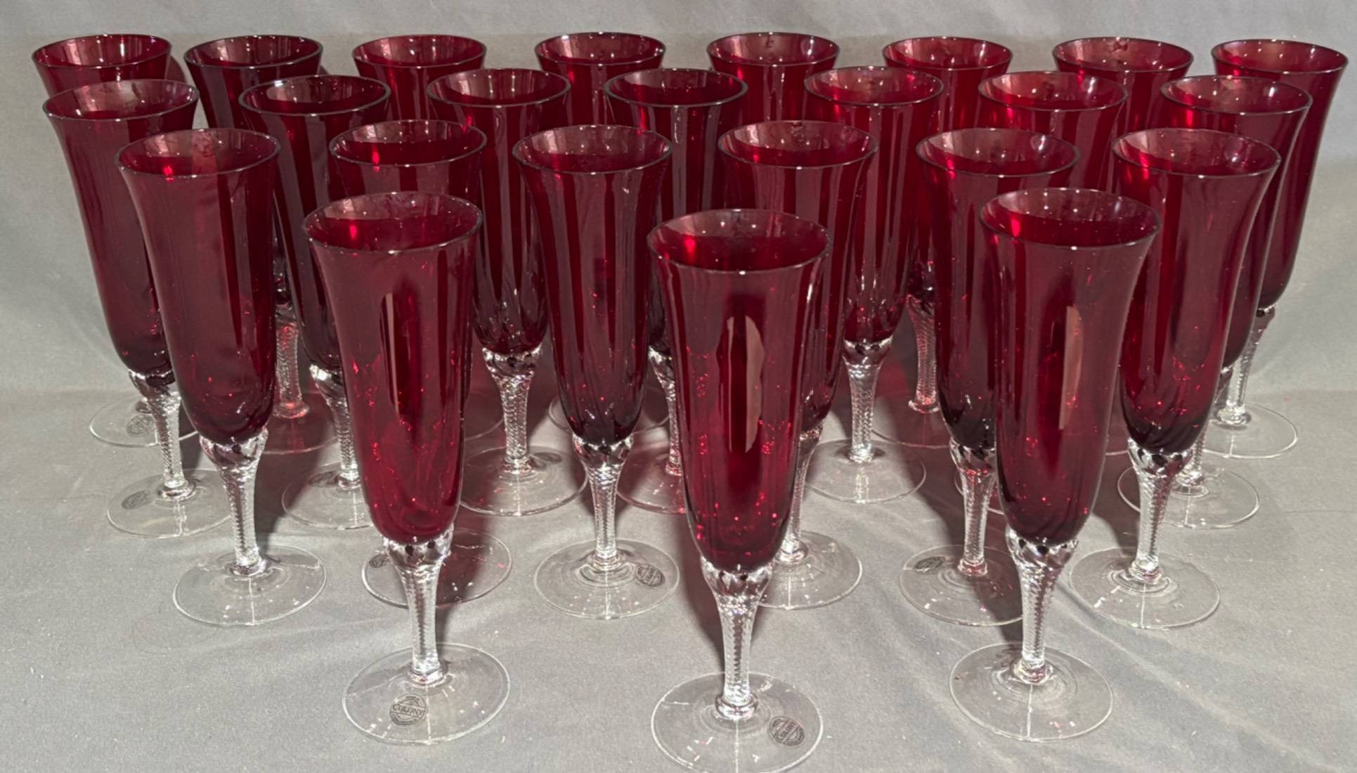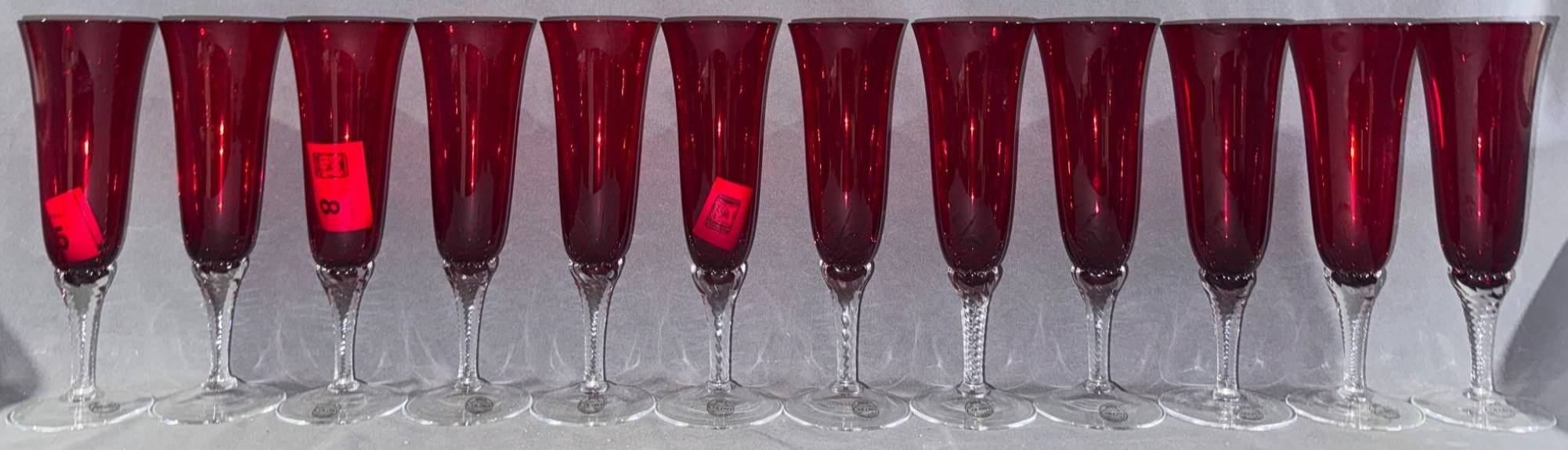 6024 24 Colony Czech Republic Ruby Crystal Champagne Flutes 8.5?
