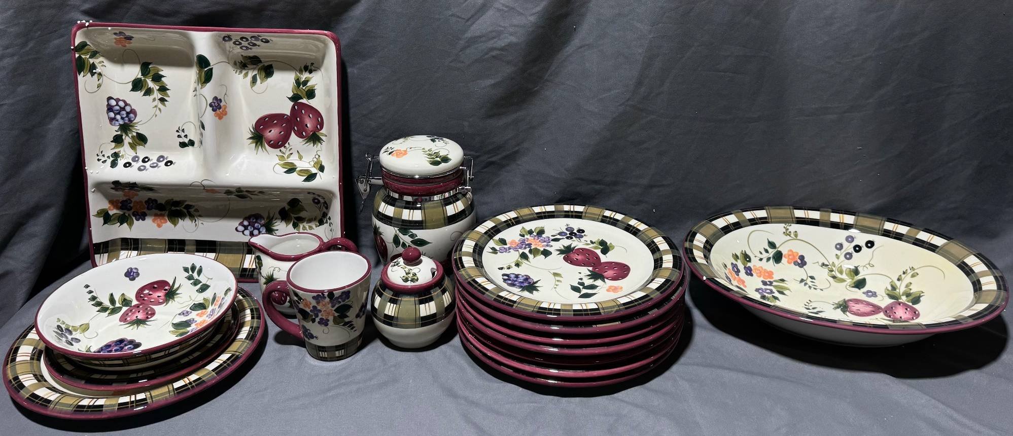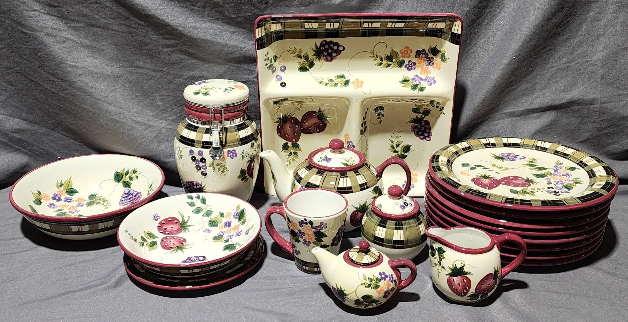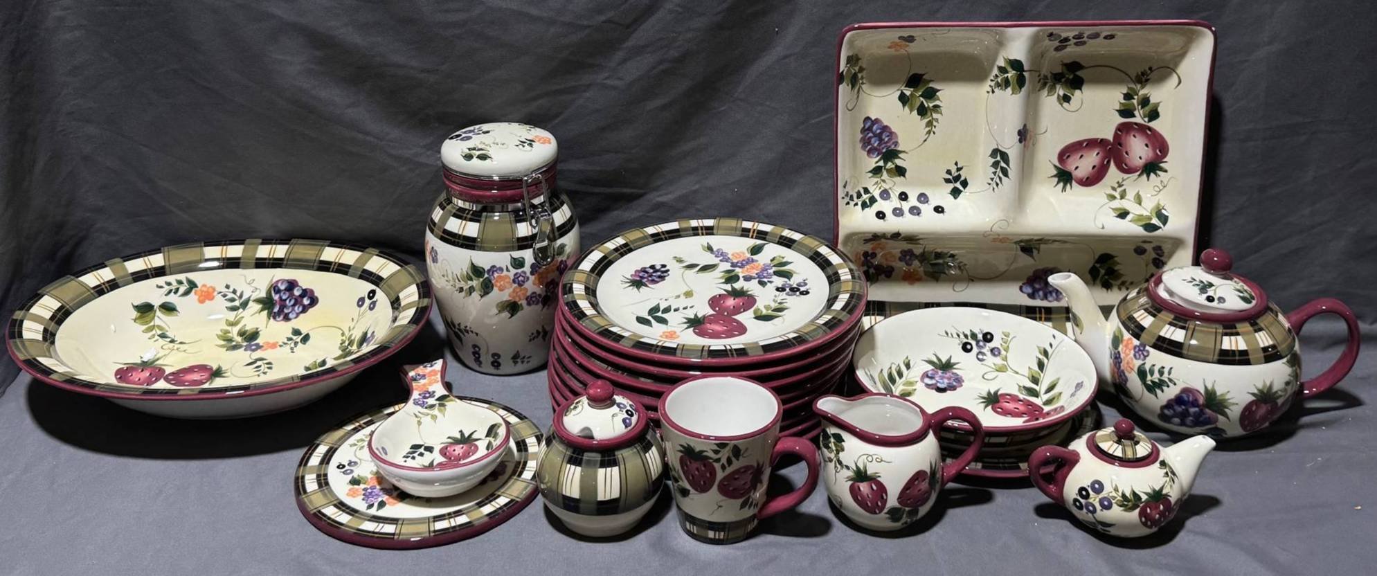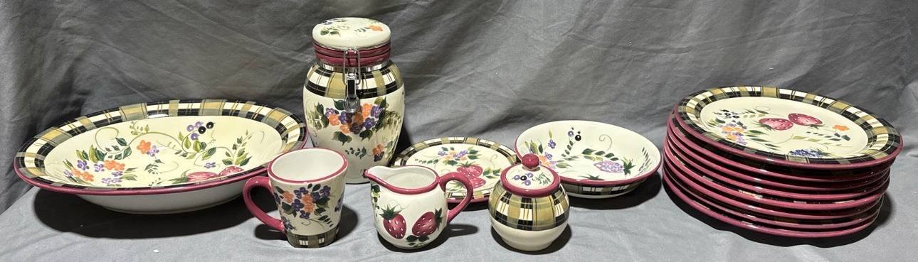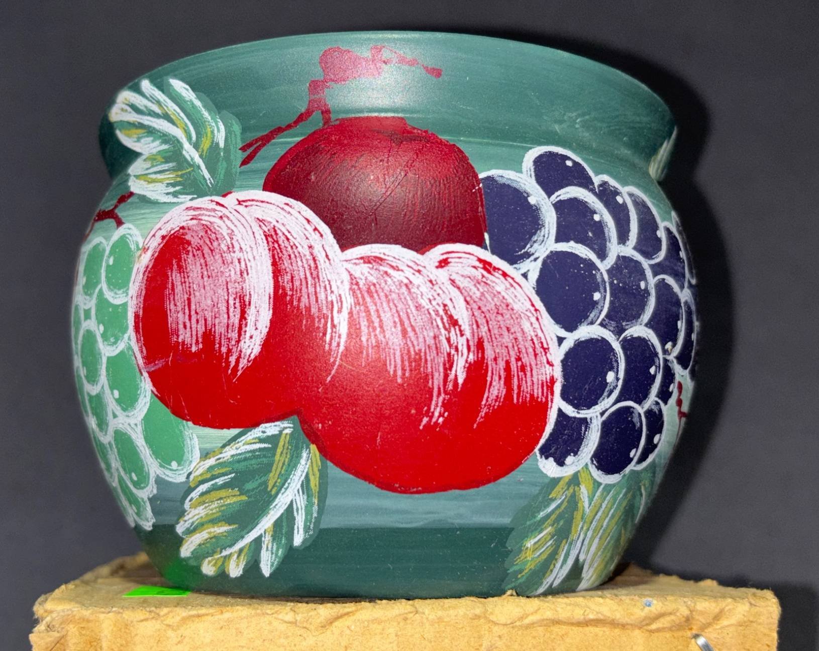 6028 Small Hermitage Pottery French Country Planter with Hand-Painted Fruit Design