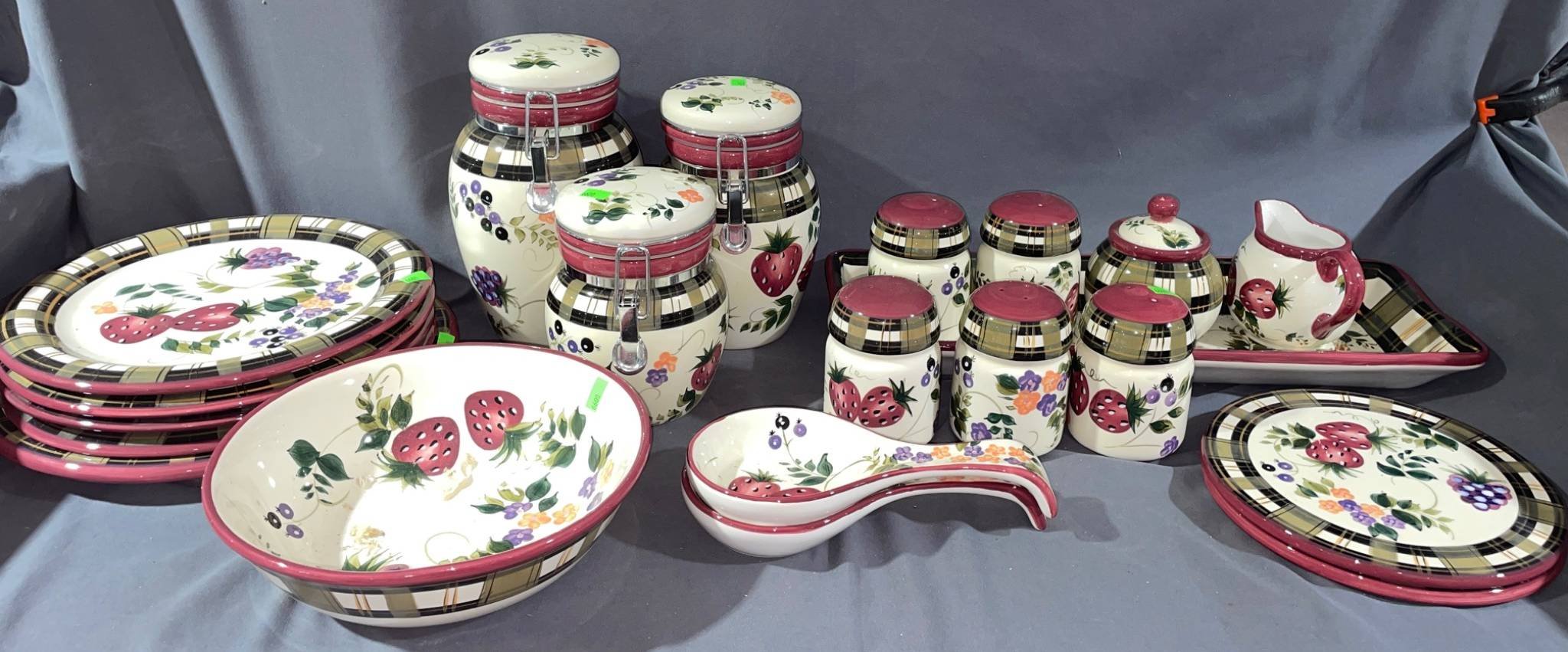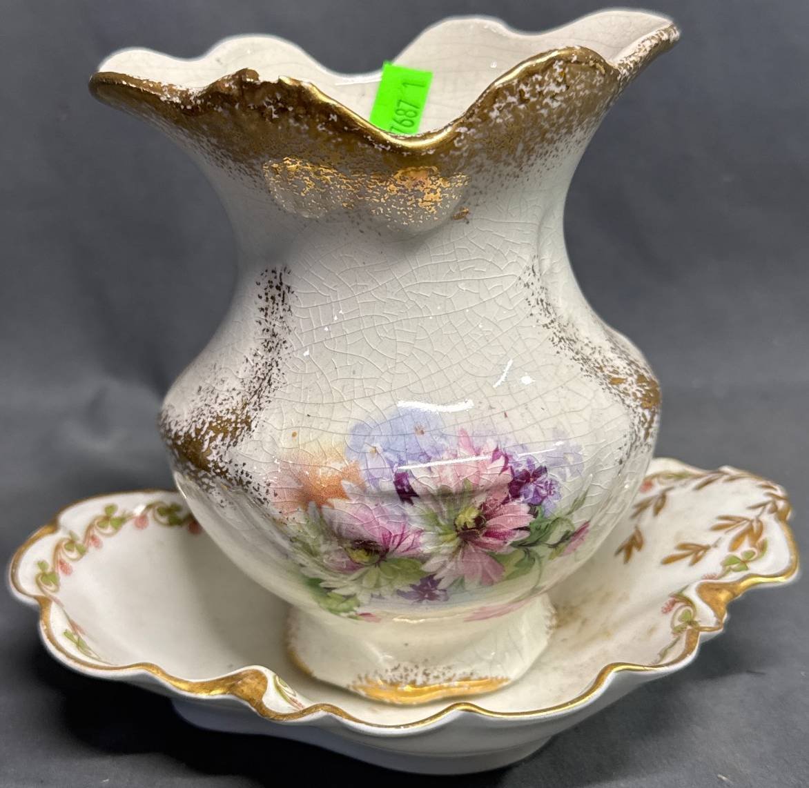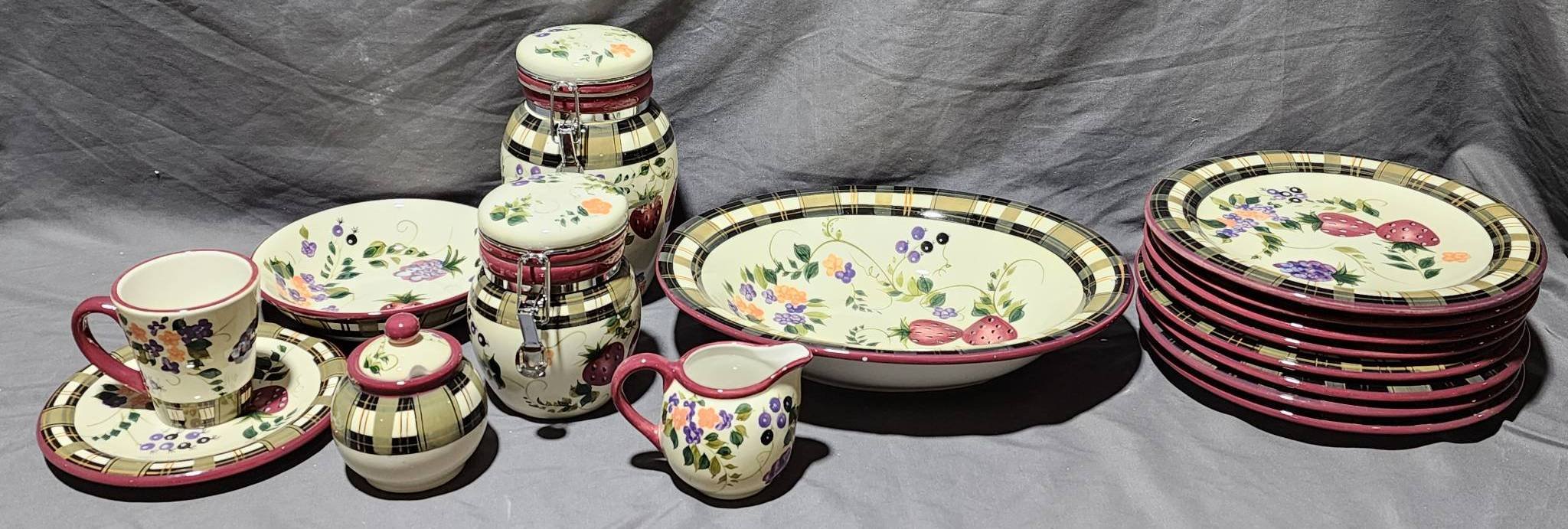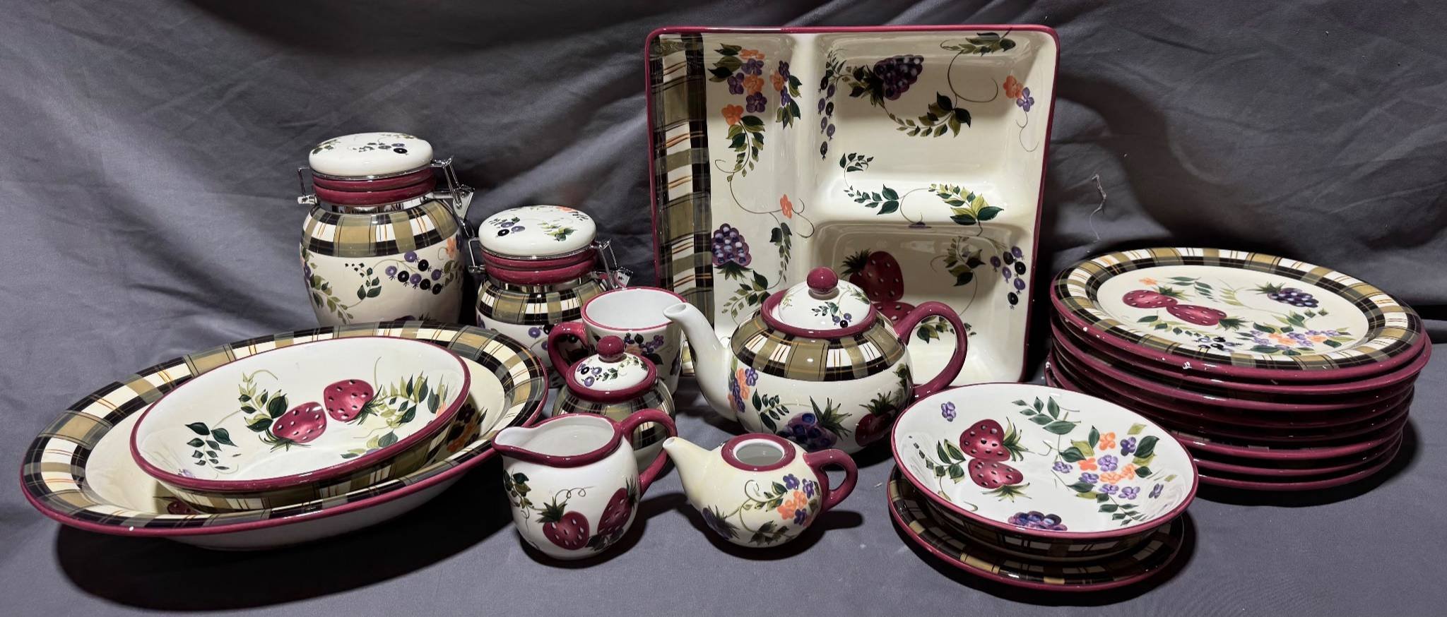 6028 Small Hermitage Pottery French Country Planter with Hand-Painted Fruit Design