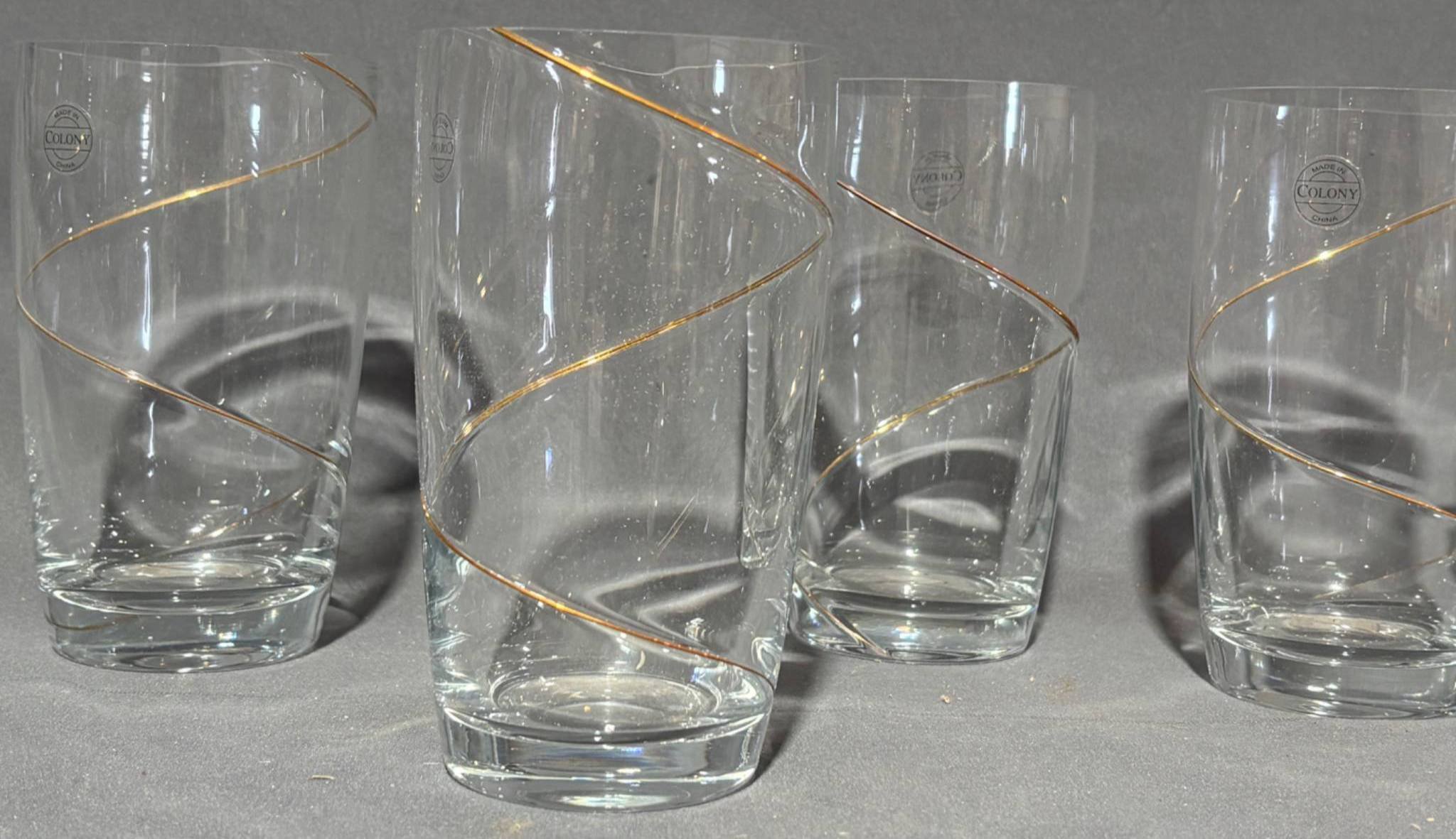 6031 6 – Colony Clear Glass Tumblers with Gold Spiral Design, 5.75” Tall