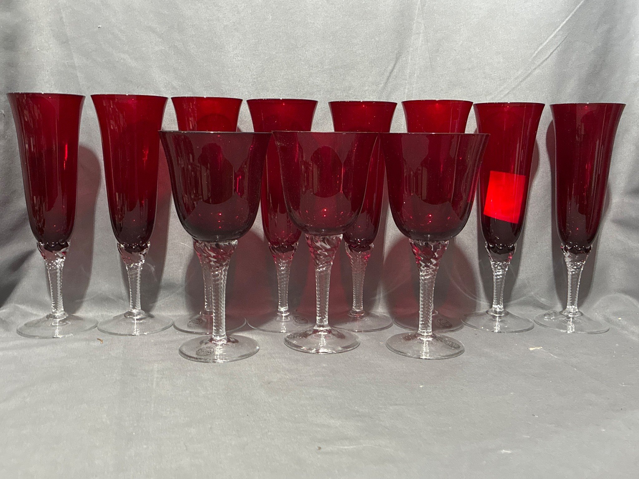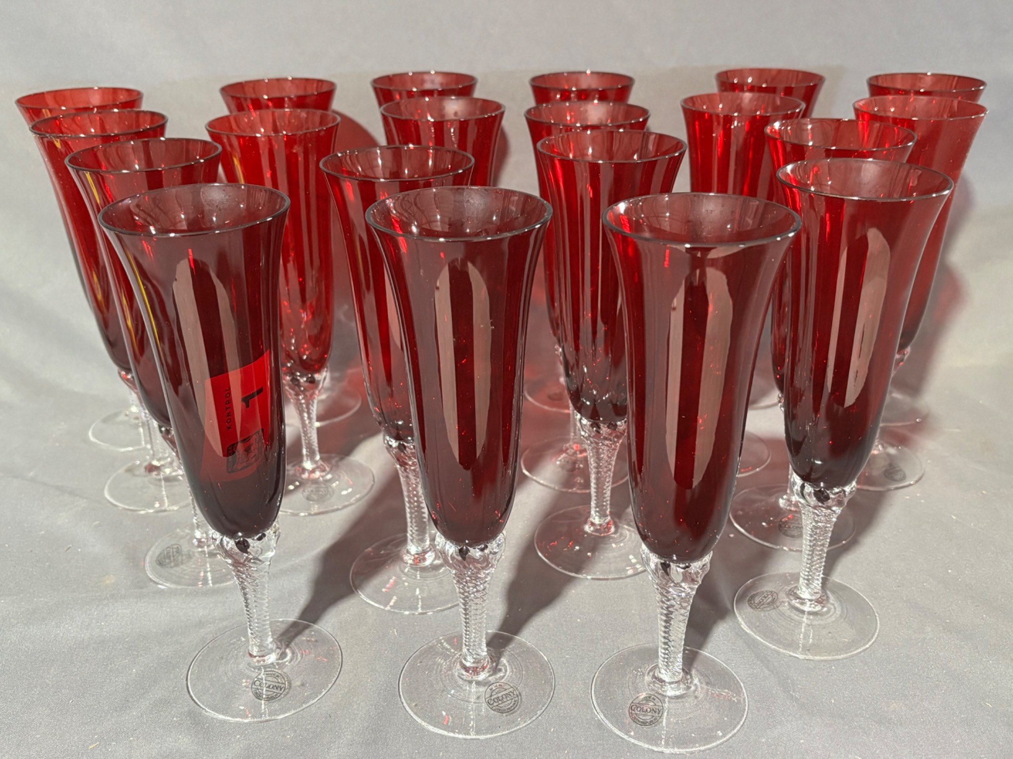6025 24 Colony Czech Republic Ruby Crystal Champagne Flutes 8.5?
