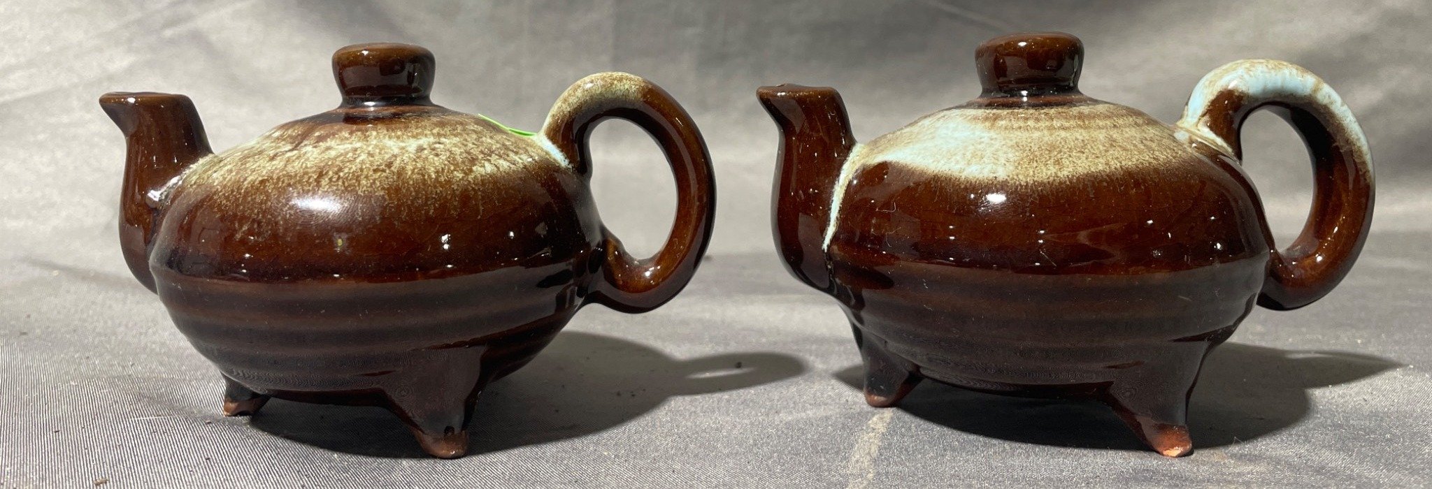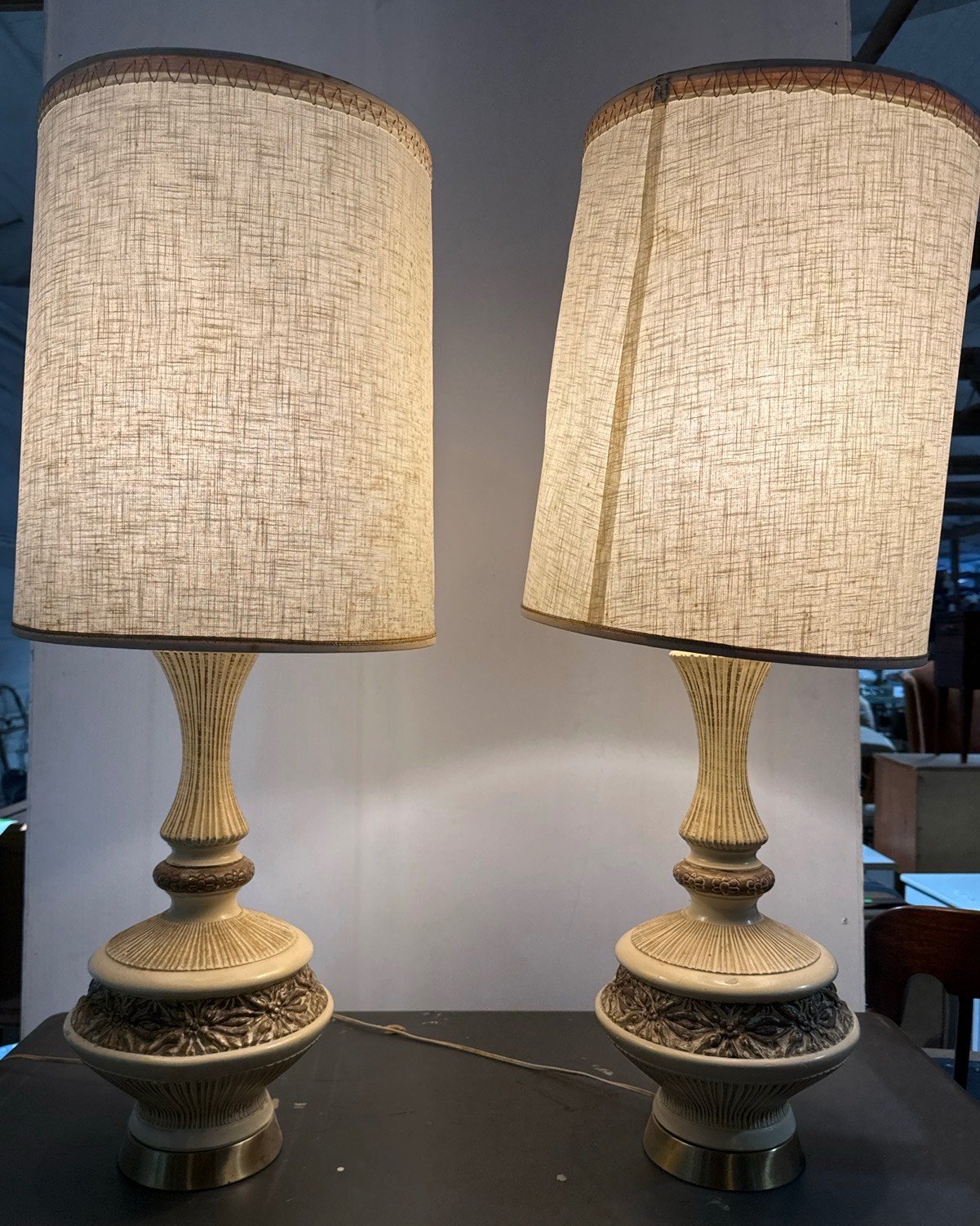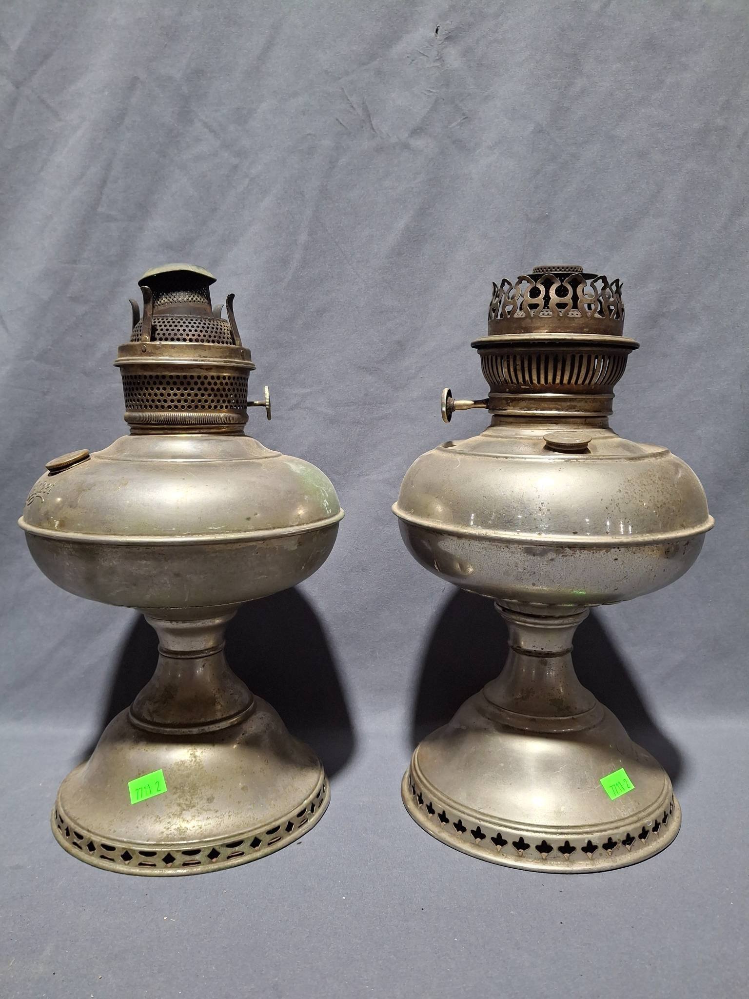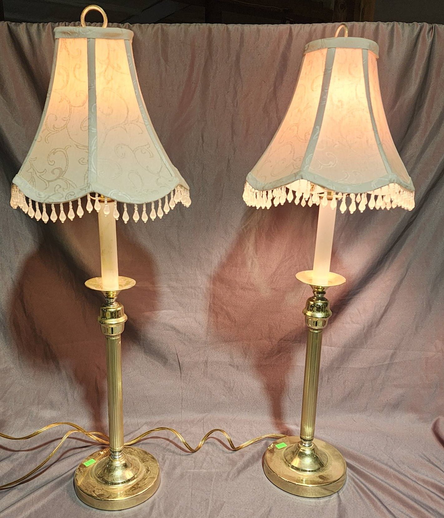 6034 2 – L.E. Smith Glass Fairy Lamps with Plum Tops 8”