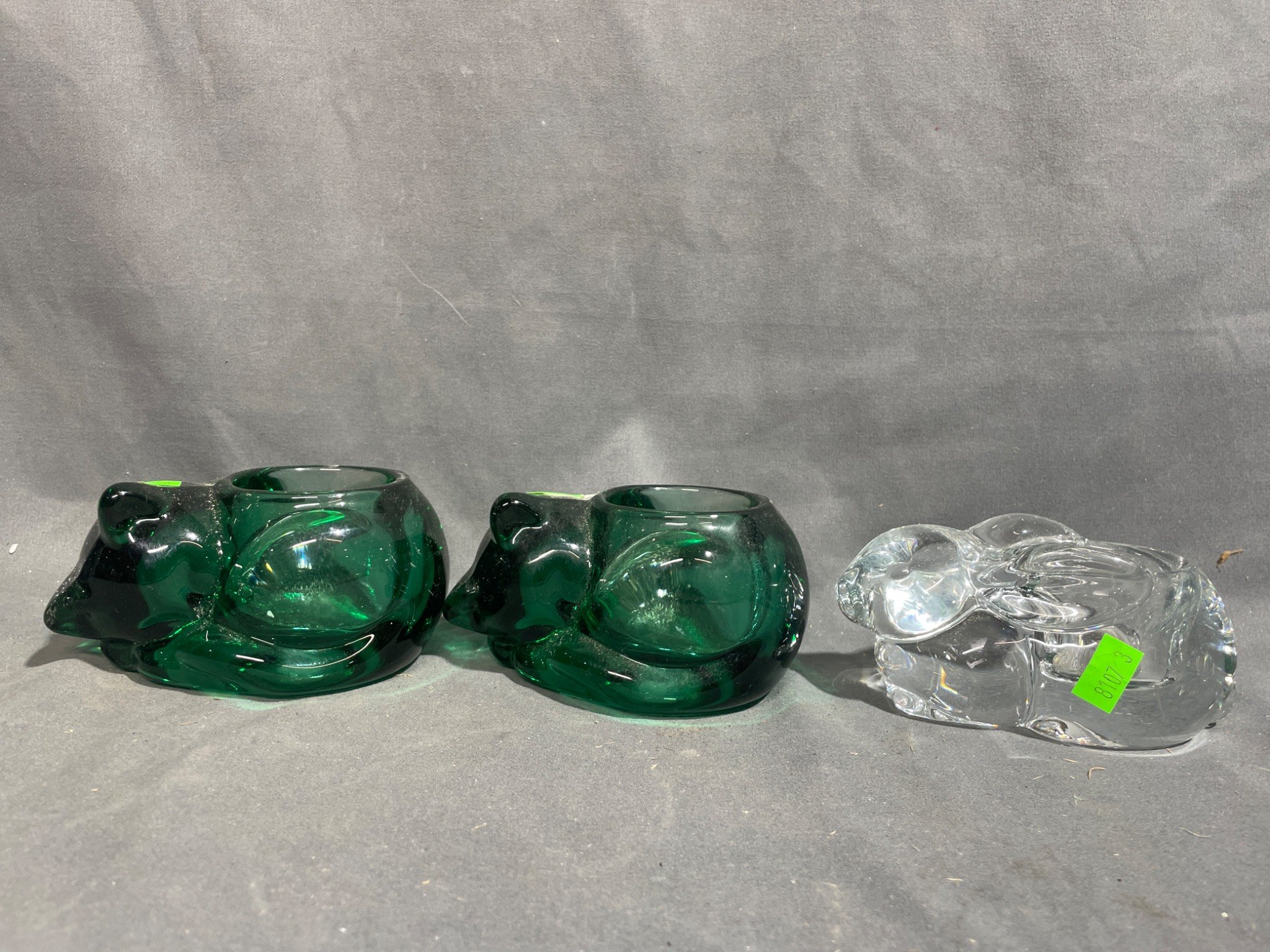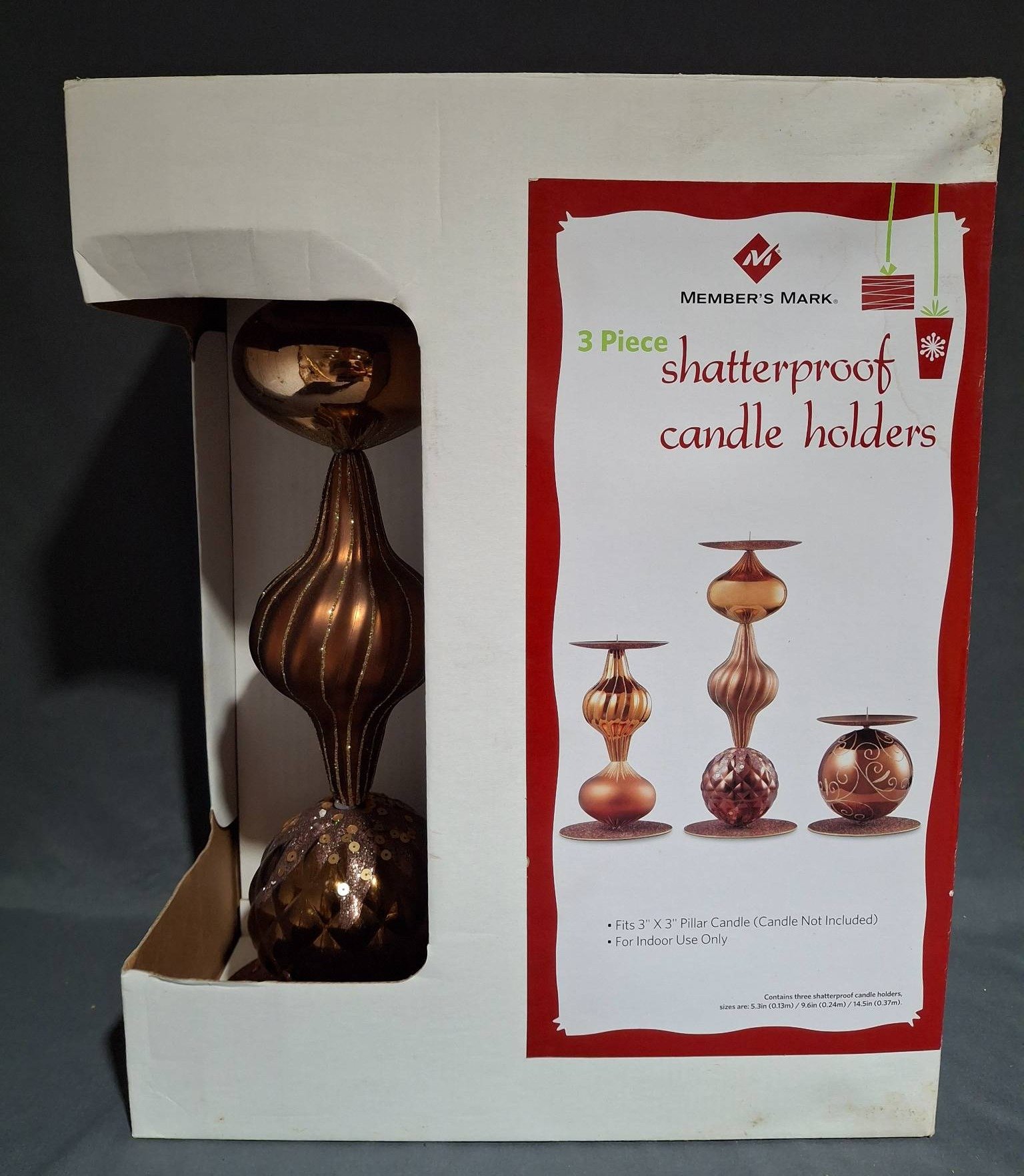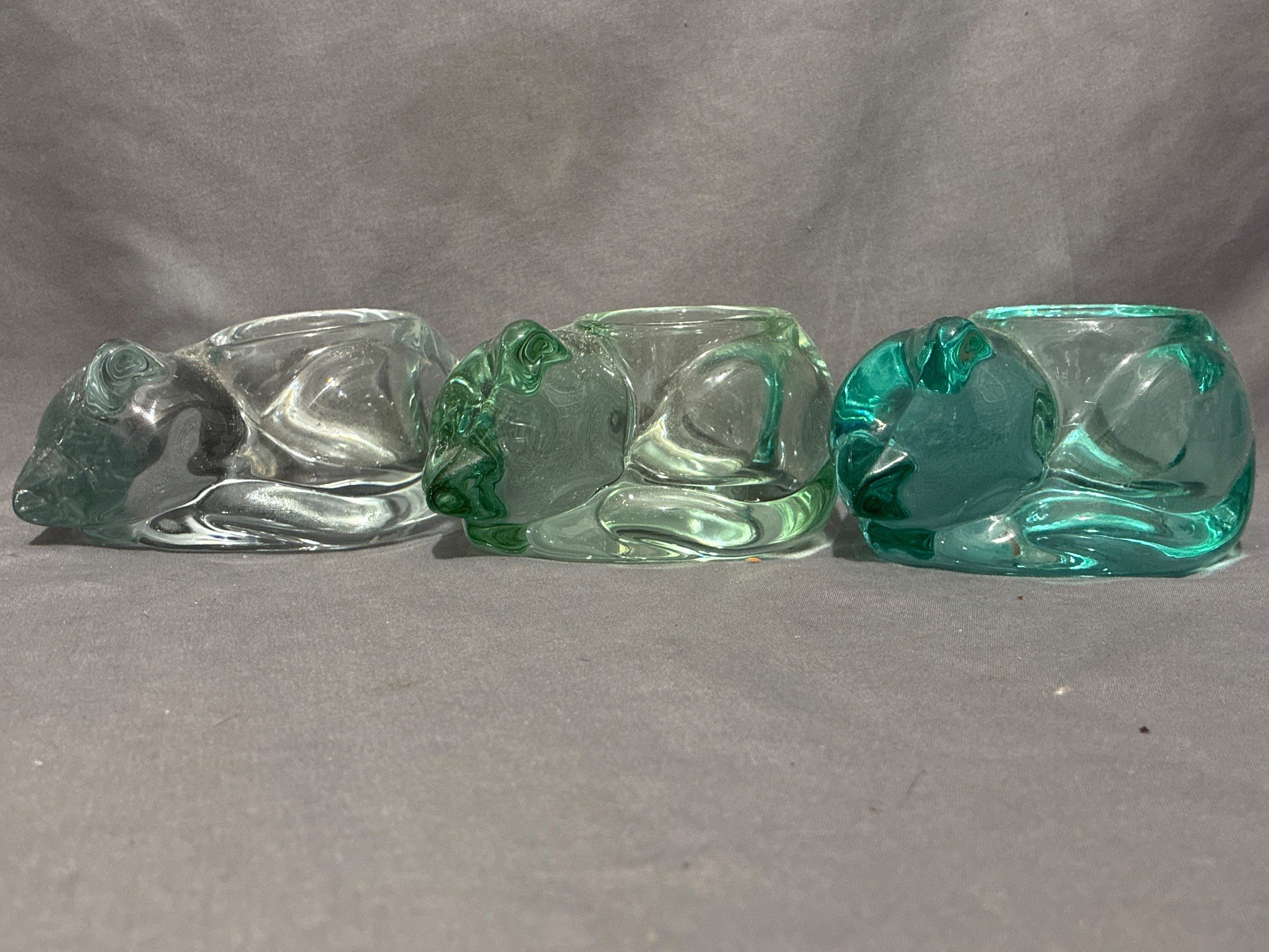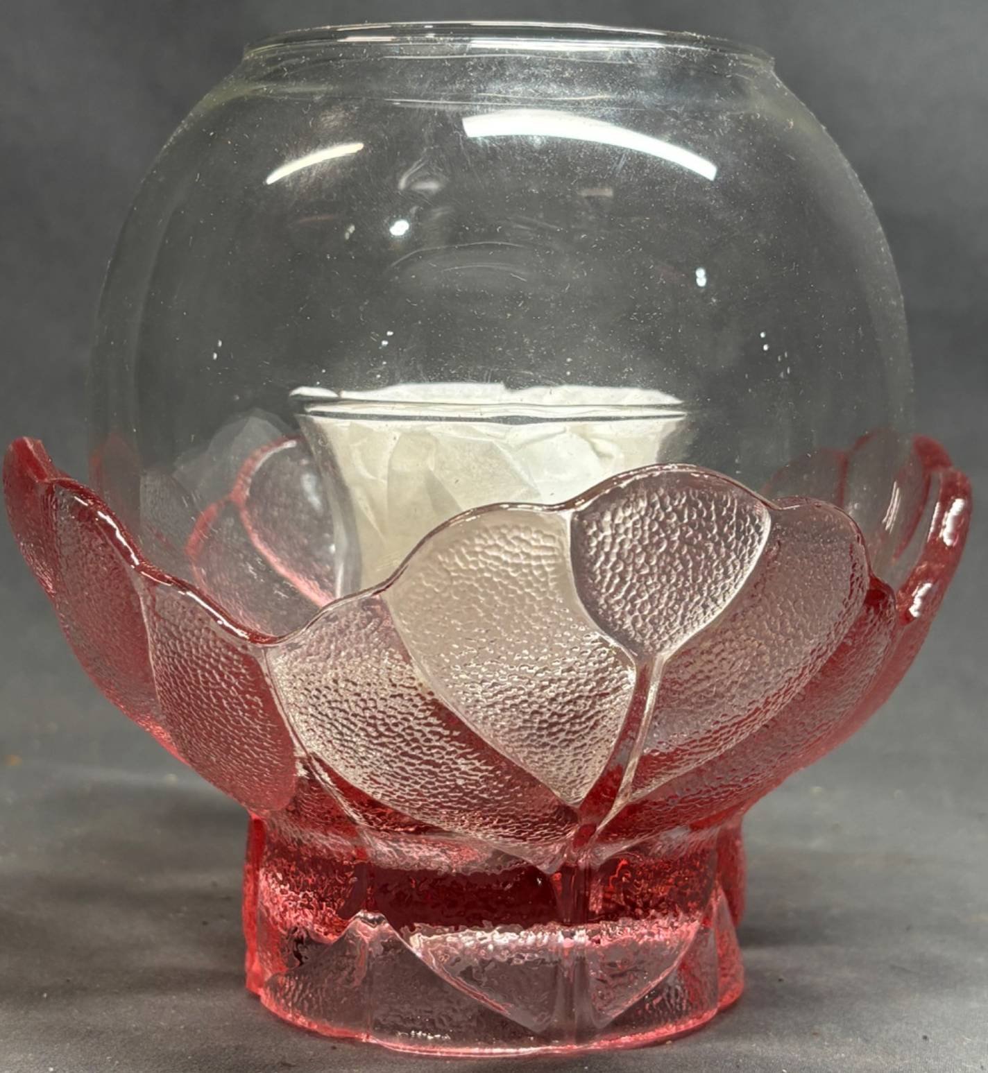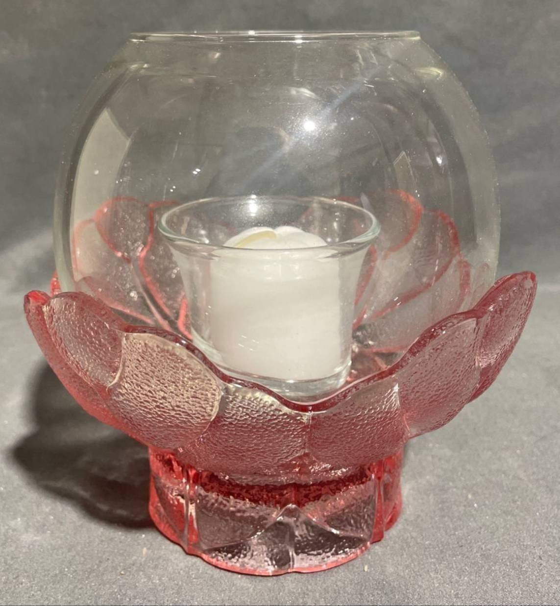6037 3-Piece Pink Lotus Flower Glass Tea Light Candle Holder 5”x5”x6”