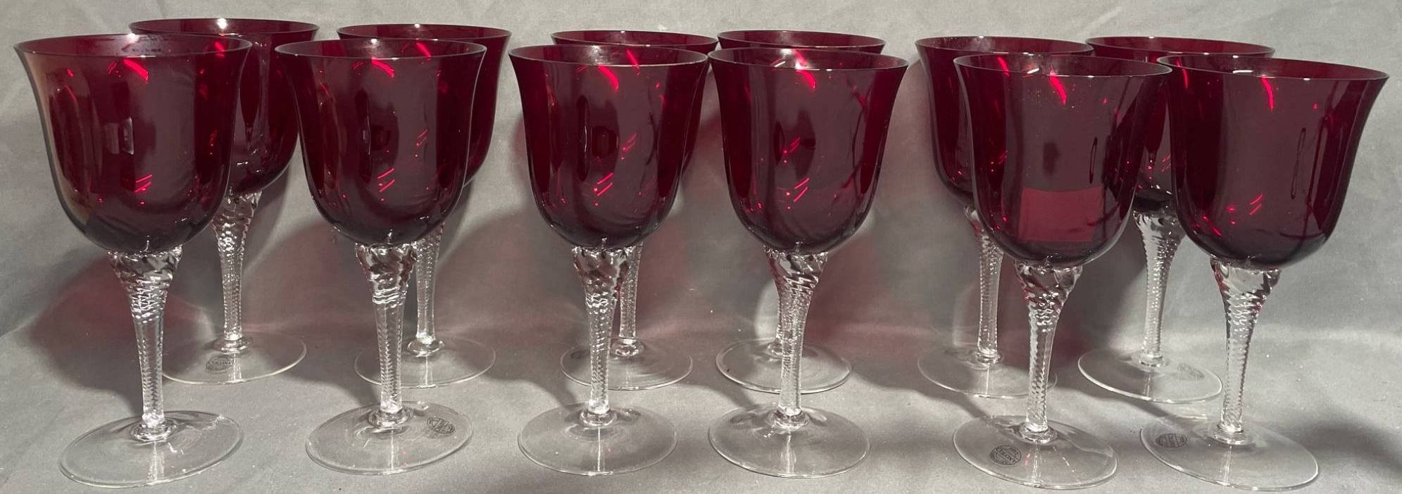 6040 12 Ruby Red Crystal Wine Glasses by Colony, Made in Czech Republic 4”x7.5”