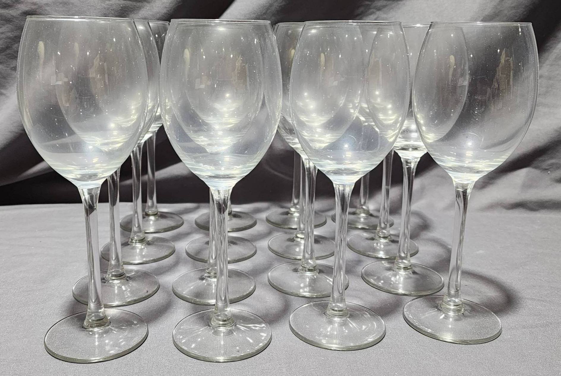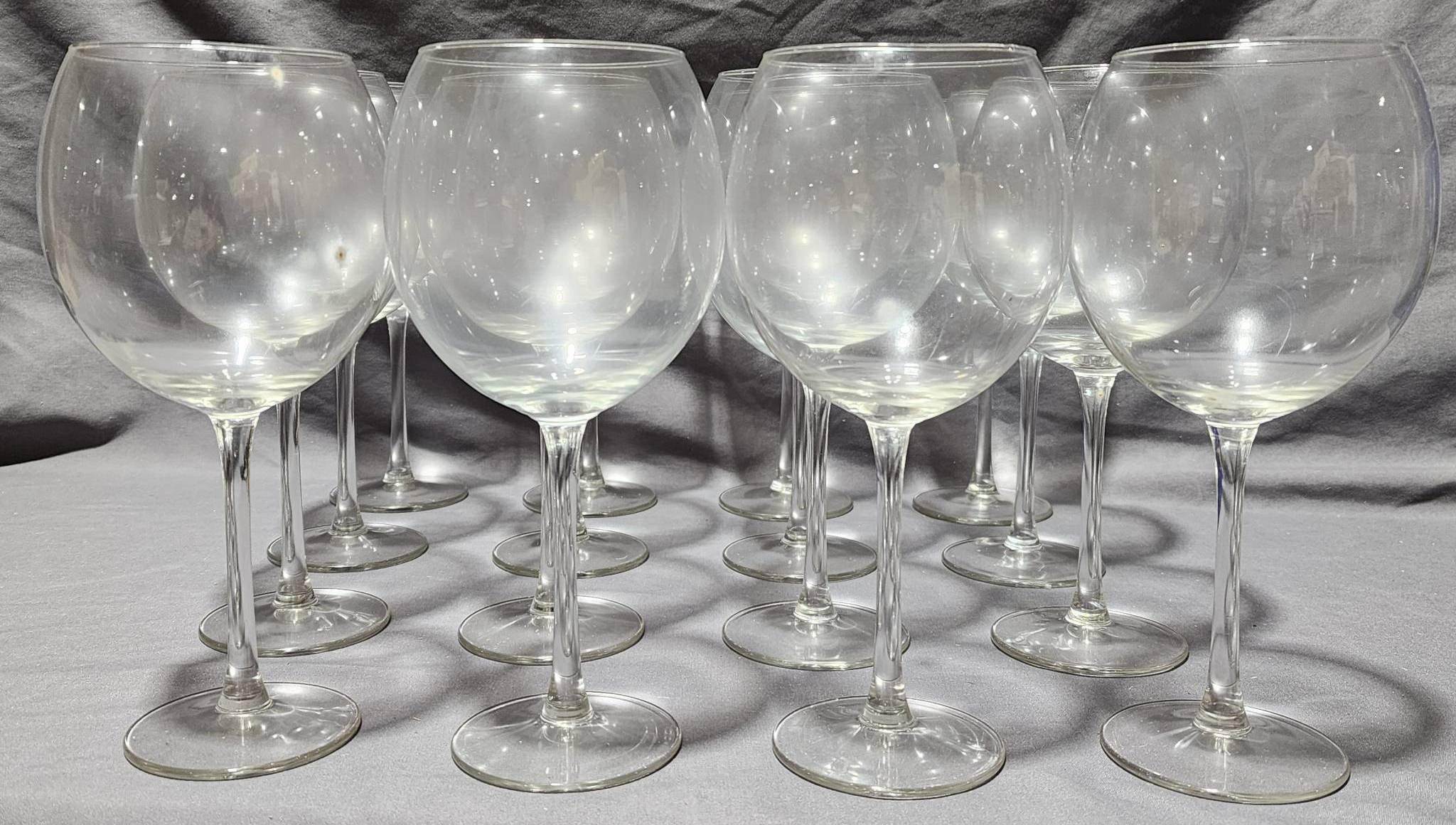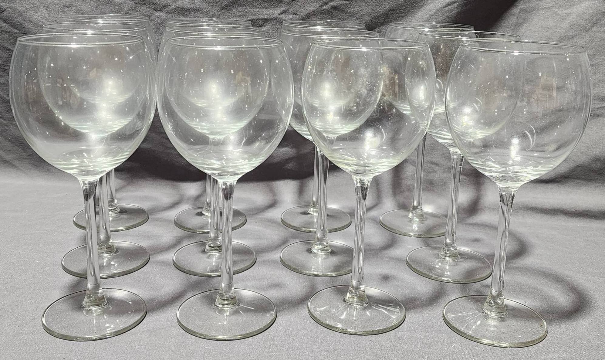 6055 12 Ruby-Colored Stemmed Glasses with Etched Transparent Stems by Colony, Made in Czech Republic 3.5”x7”