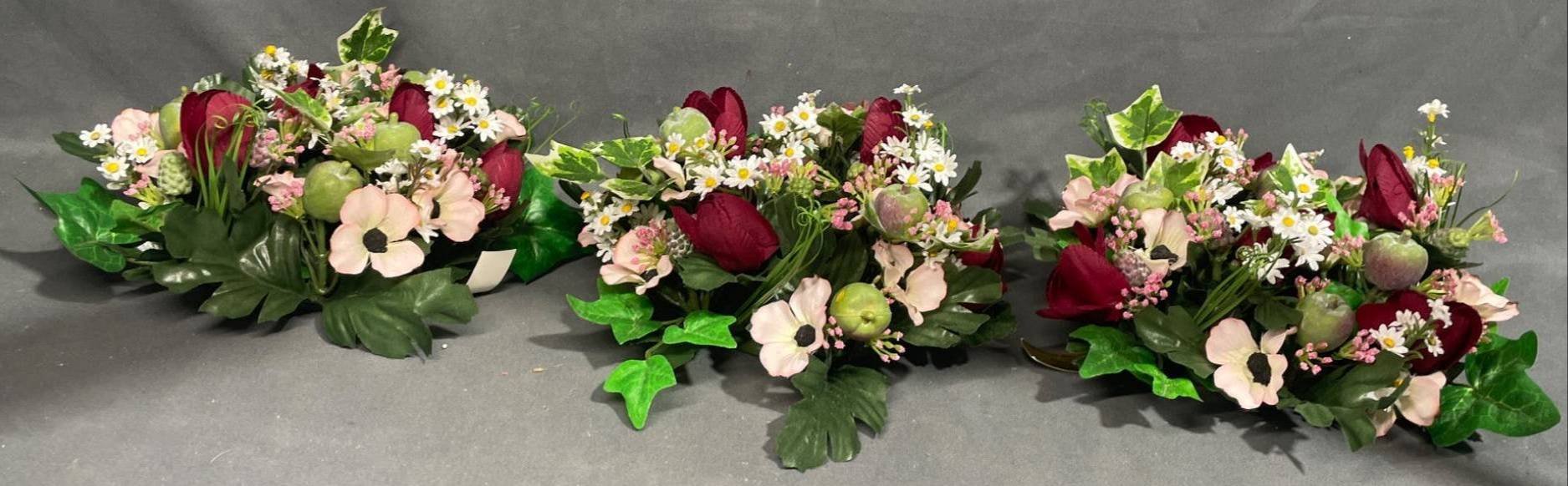 6050 3 Artificial Floral Arrangements With Plastic Bases 8”