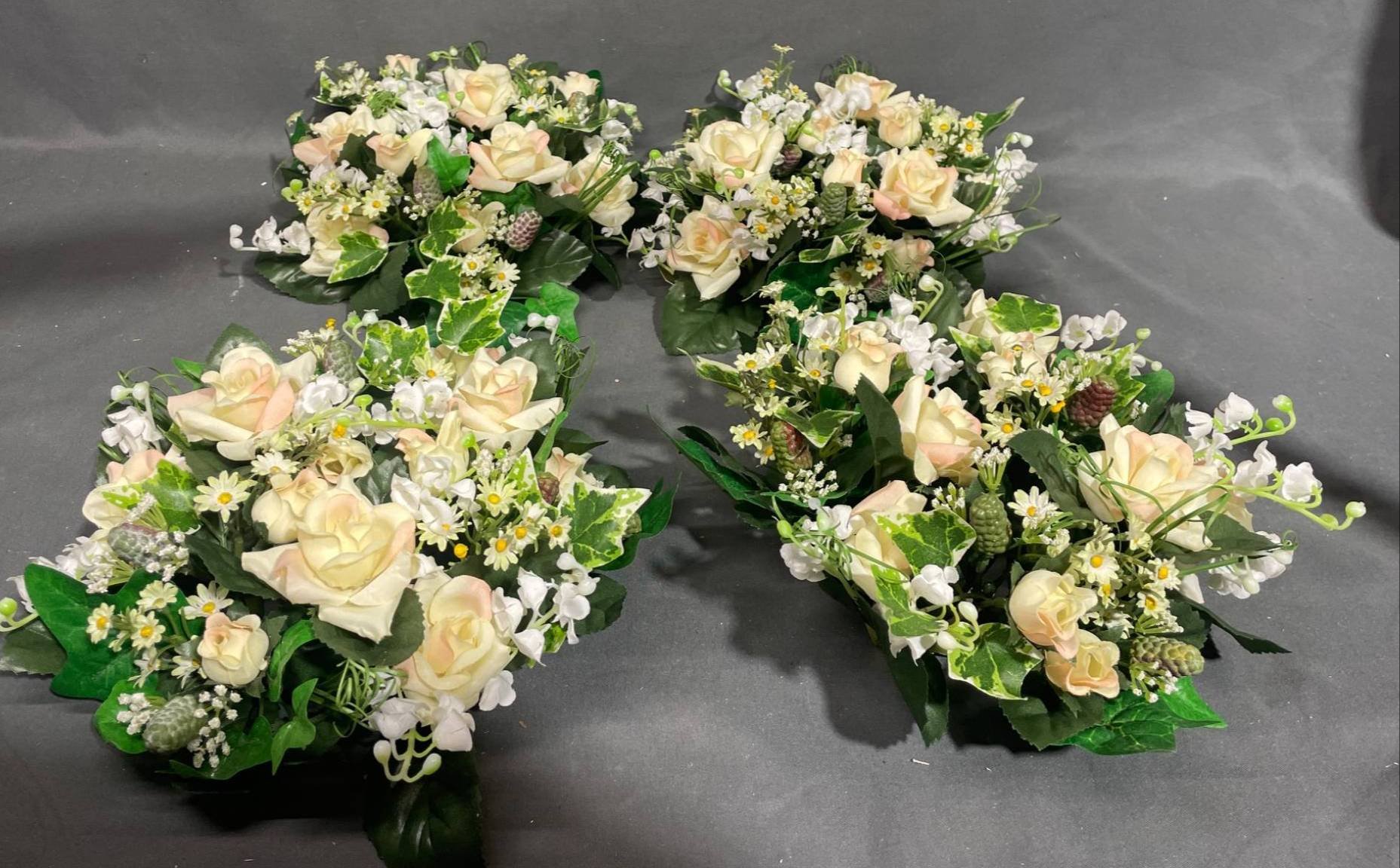 6051 4 Floral Arrangements with Cream Roses and Green Plastic Rings 8”