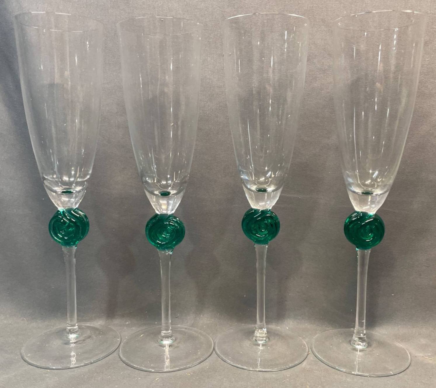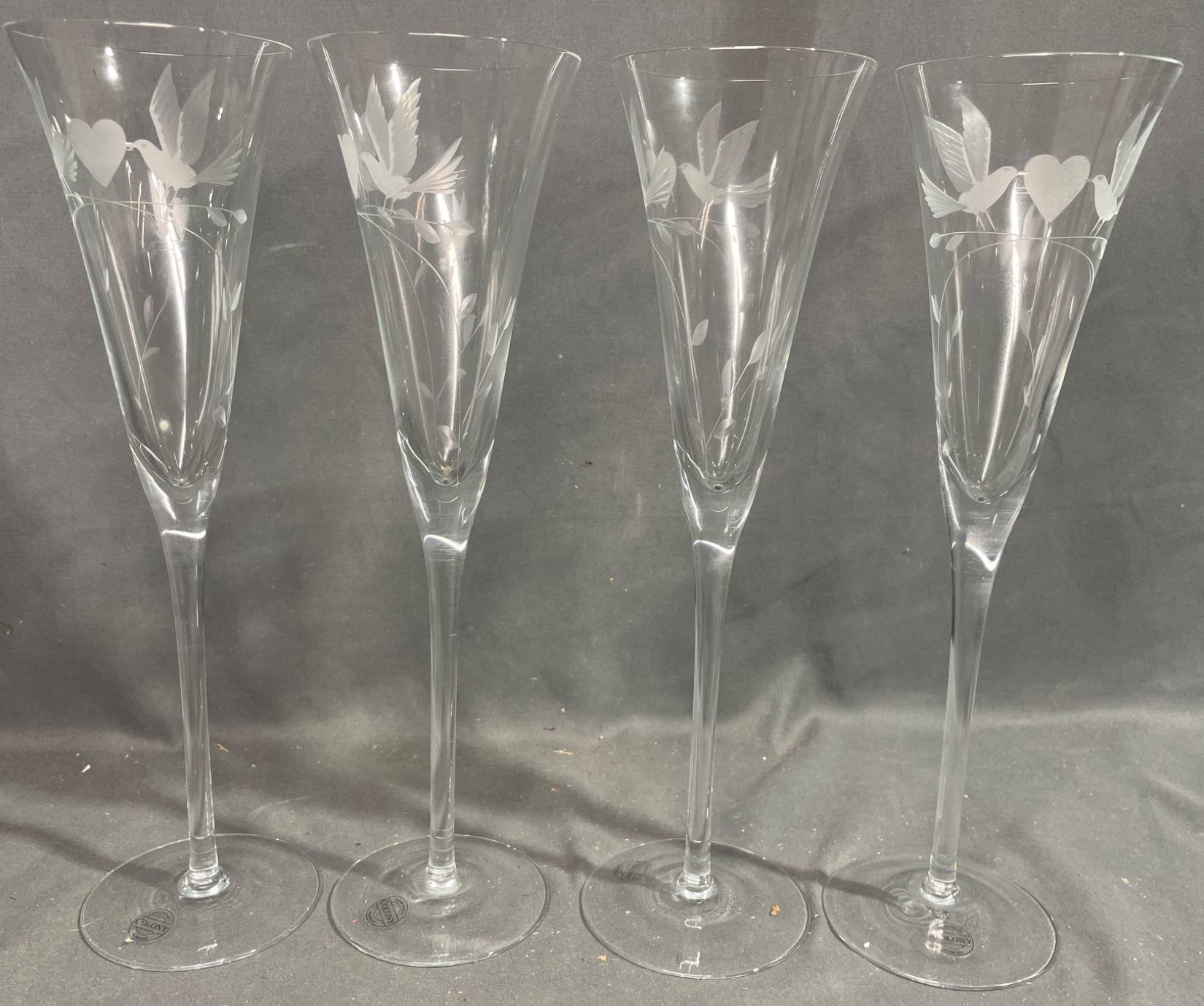6054 4 Clear Handcrafted Crystal Champagne Flutes Made in Romania 3”x10”