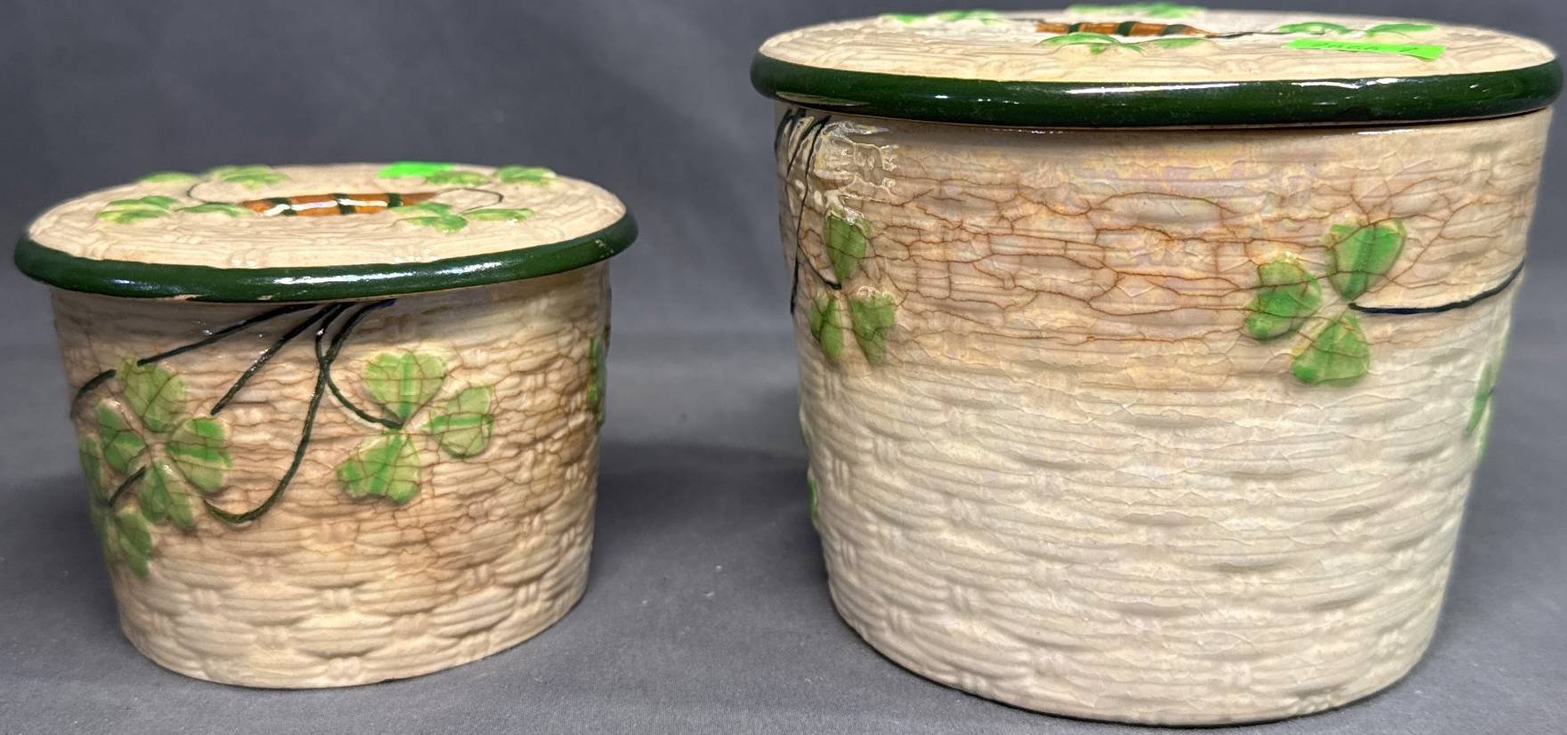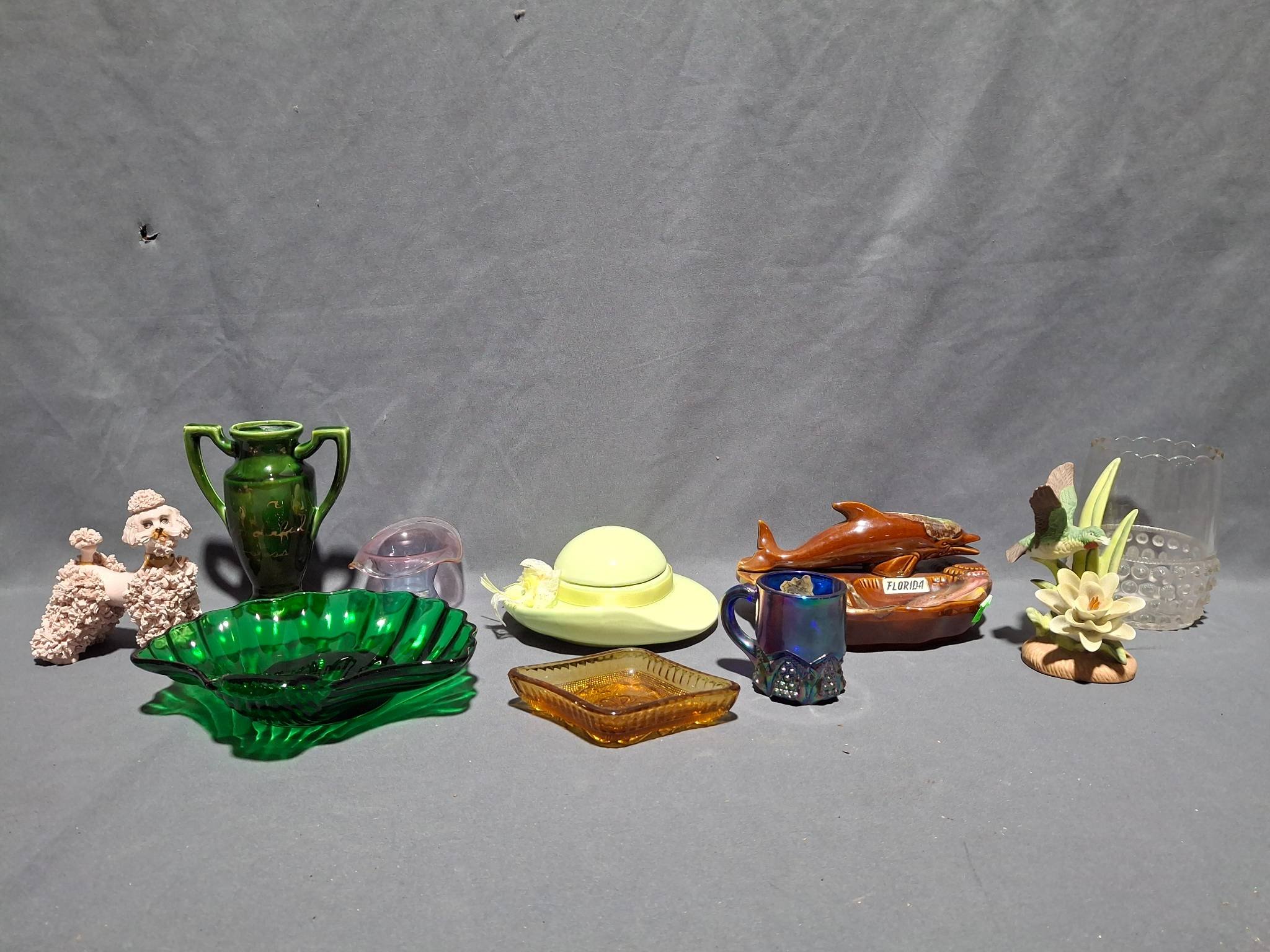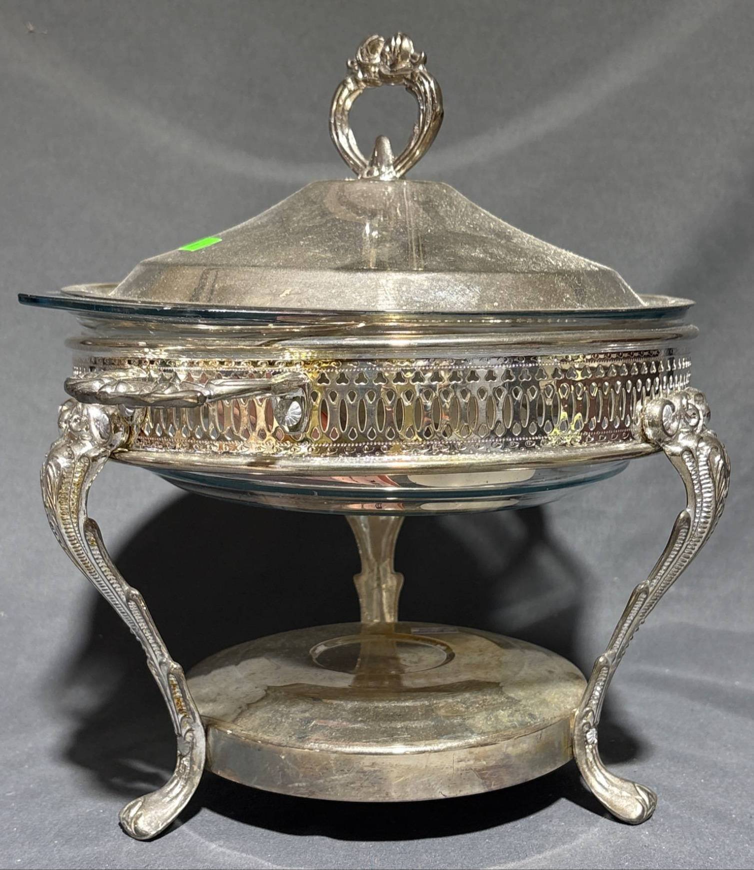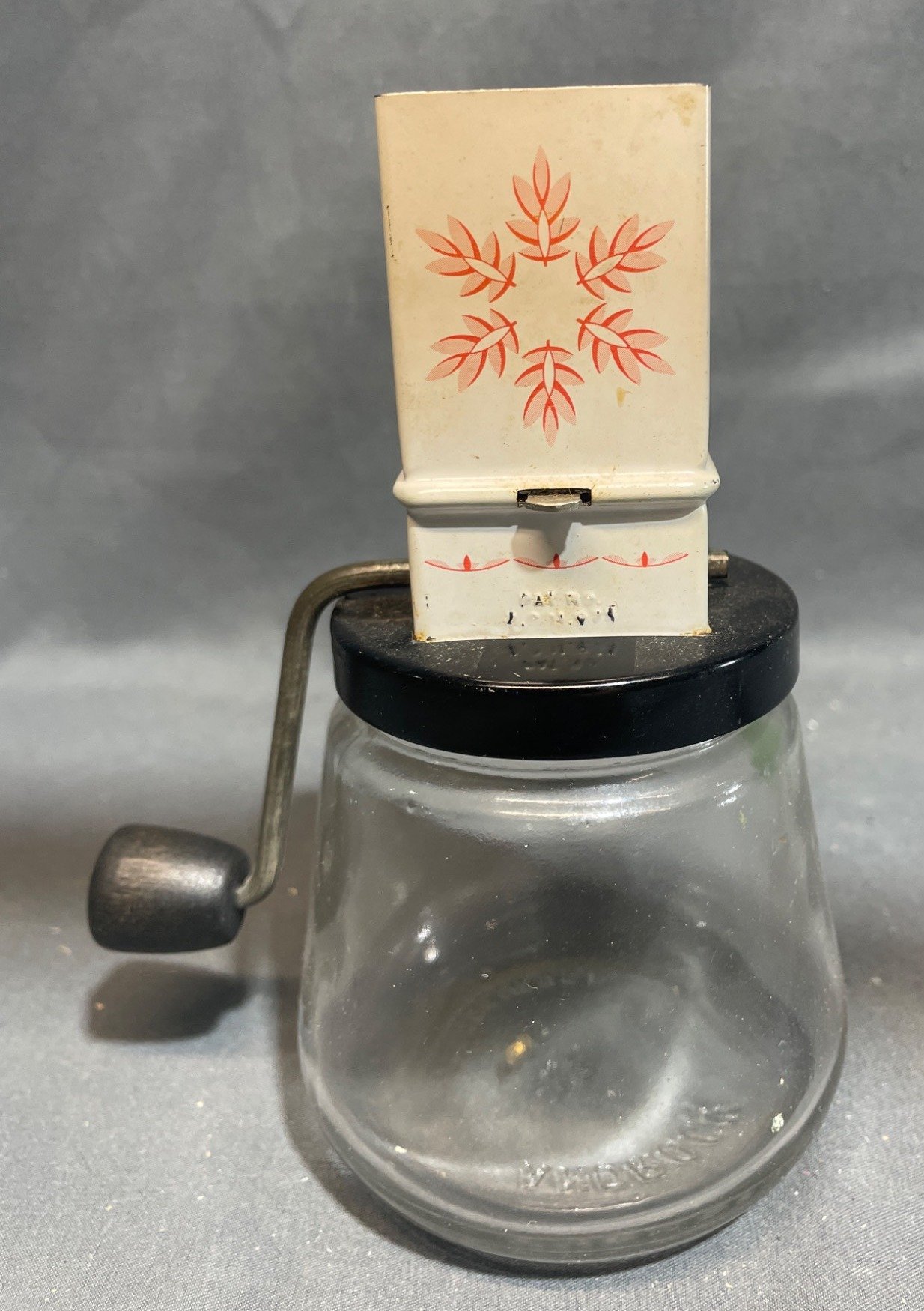 6057 Fostoria Clear Glass Lidded Jar with Green Swirl Handles 9?