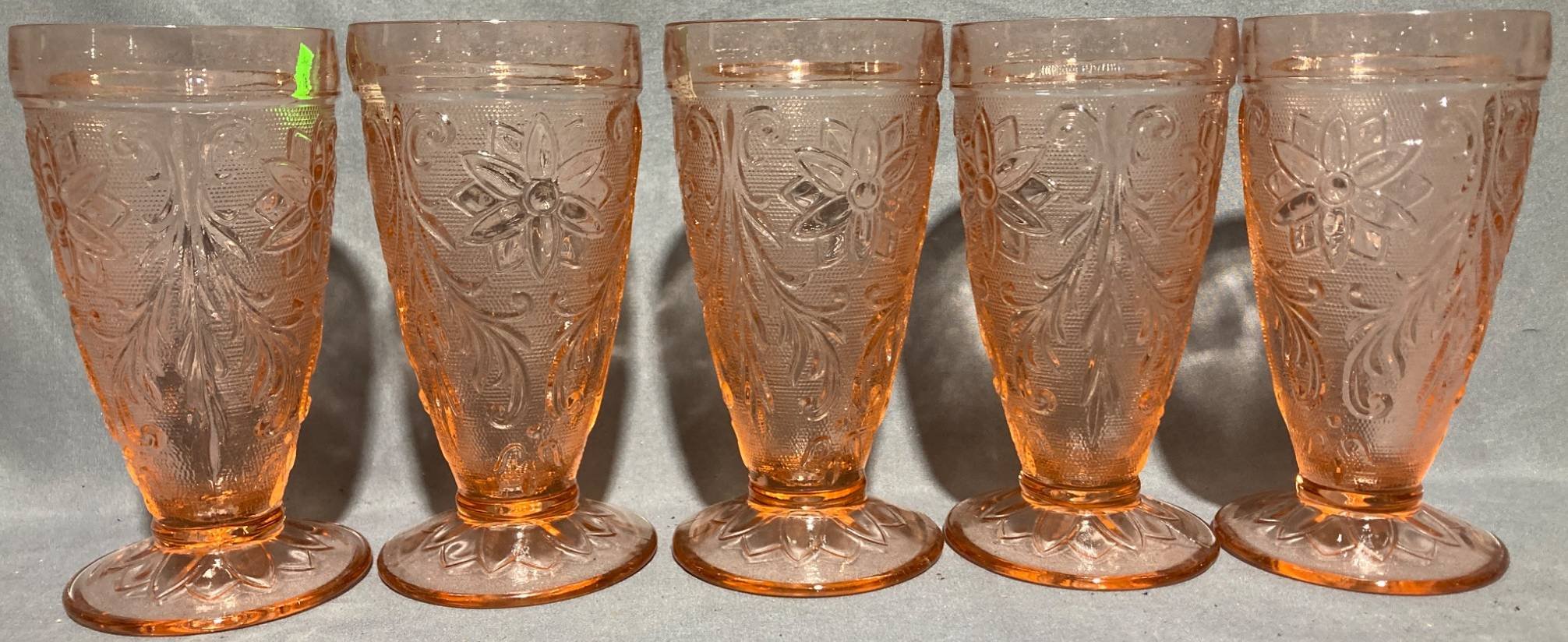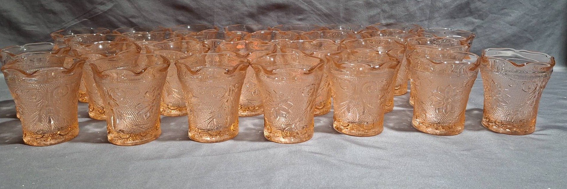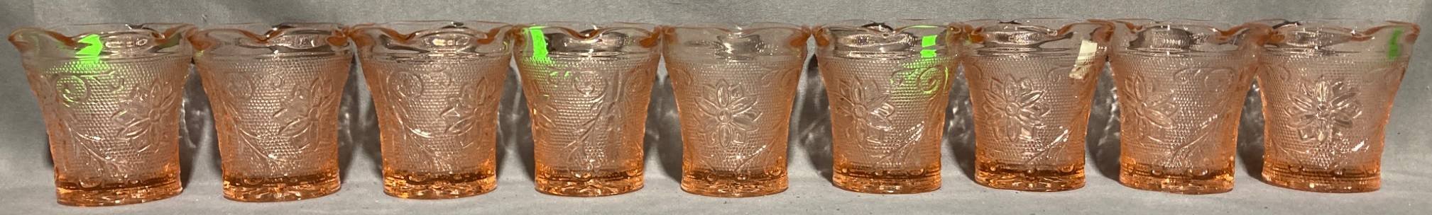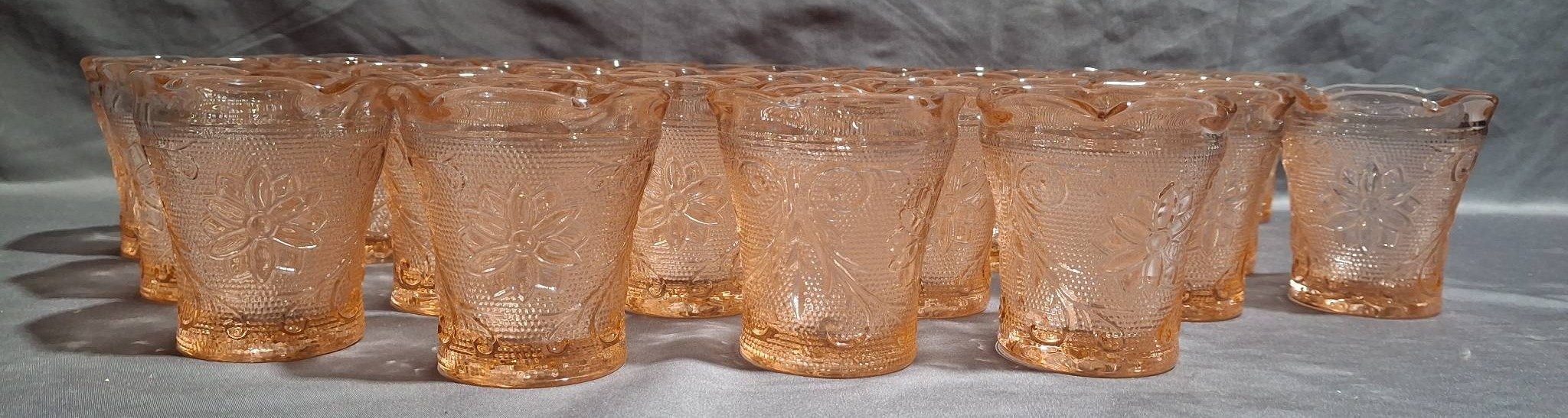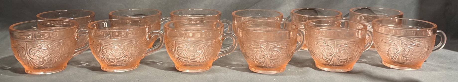 6080 12 Tiara Sandwich Pink Depression Glass Cups with Floral and Geometric Pattern 3.5”x2.5”