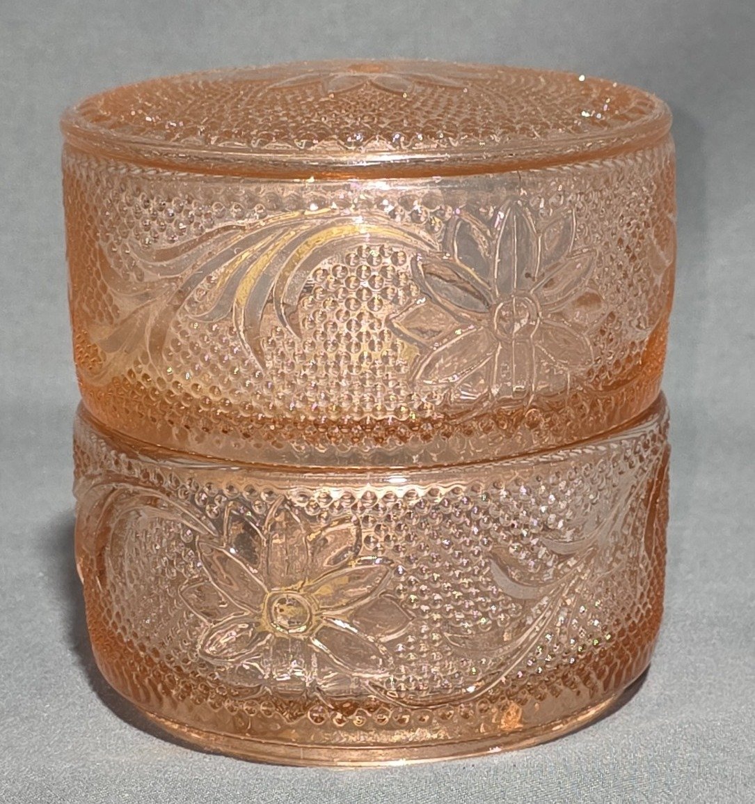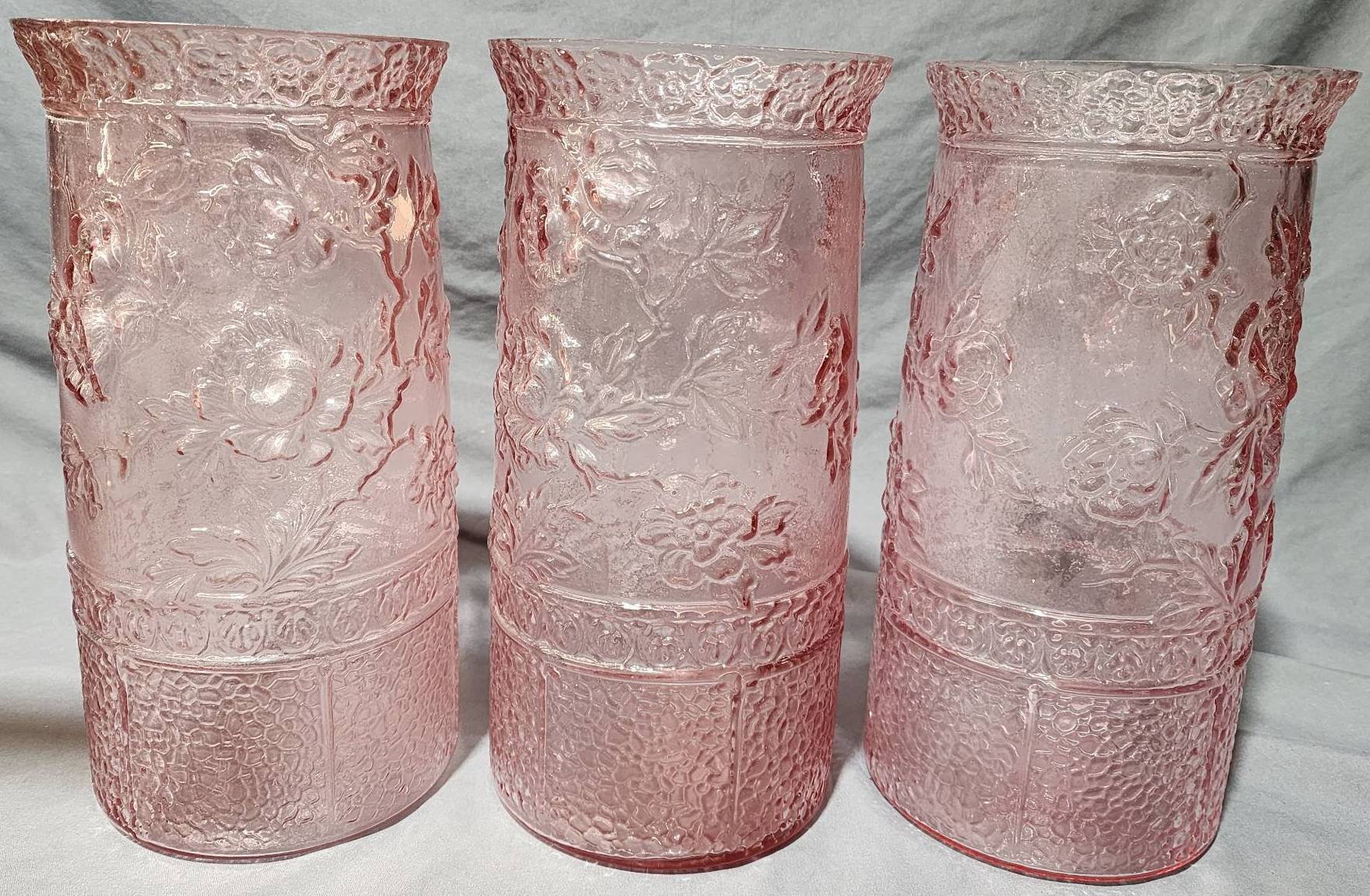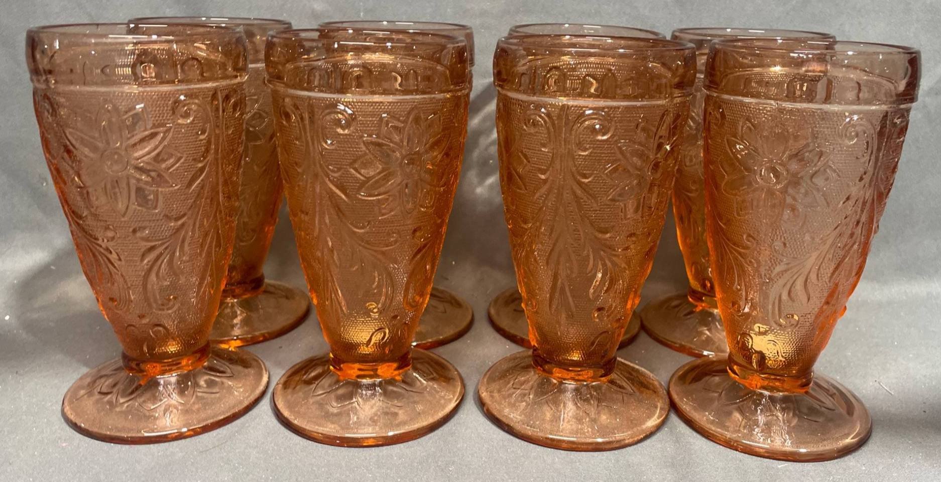6080 12 Tiara Sandwich Pink Depression Glass Cups with Floral and Geometric Pattern 3.5”x2.5”