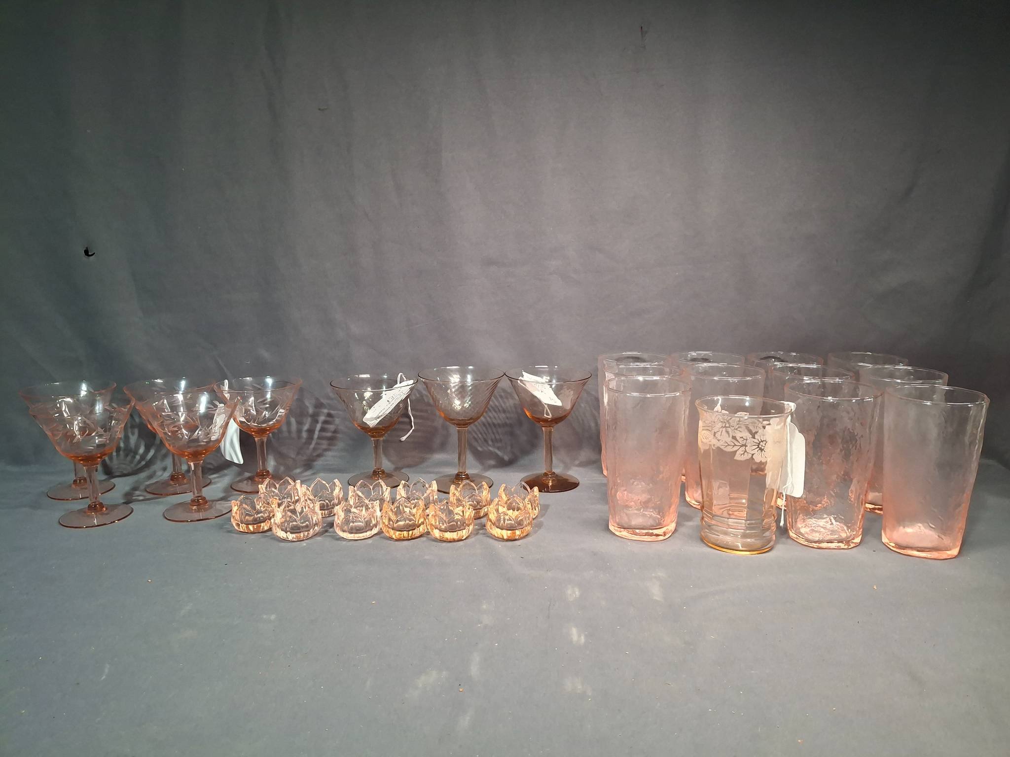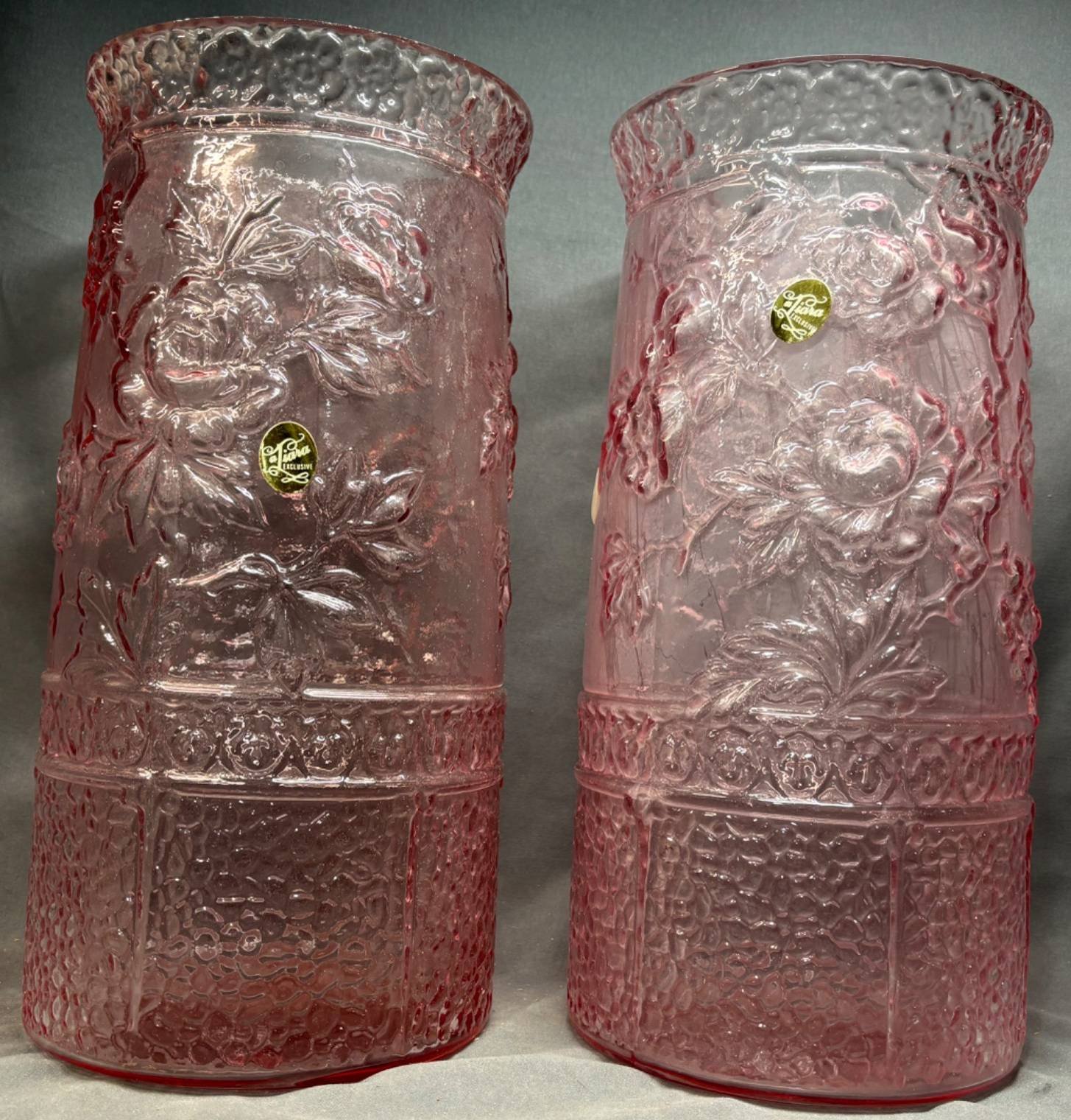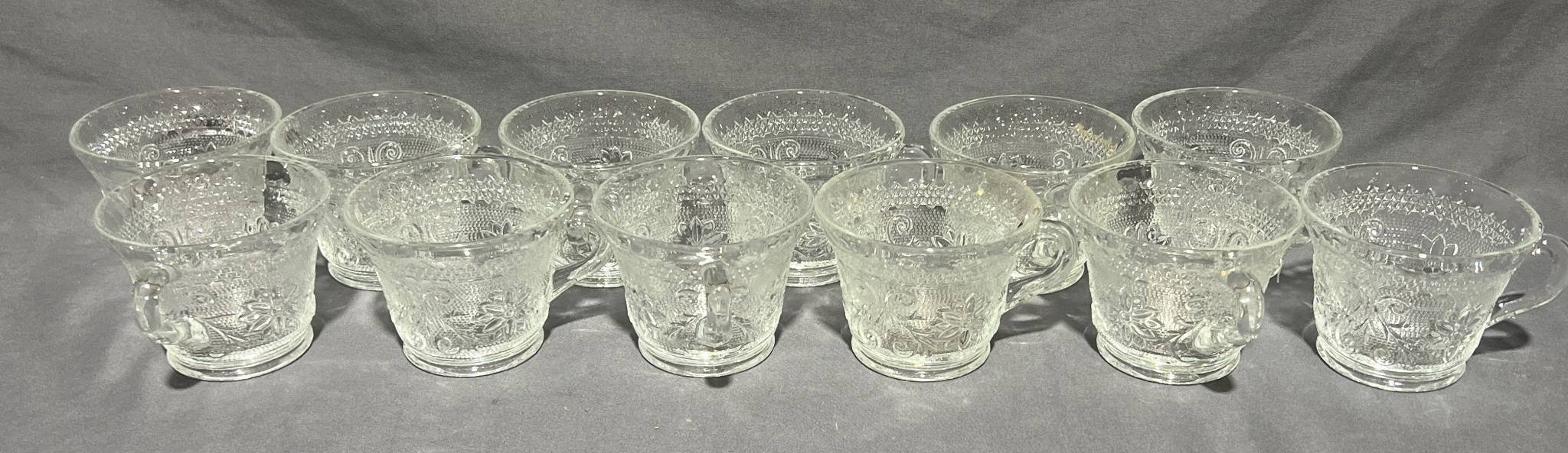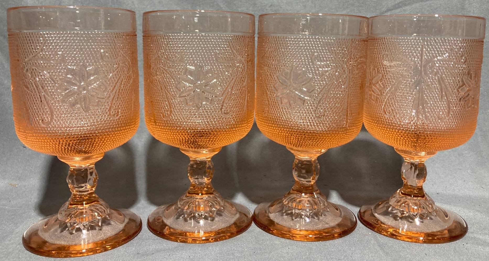 6080 12 Tiara Sandwich Pink Depression Glass Cups with Floral and Geometric Pattern 3.5”x2.5”