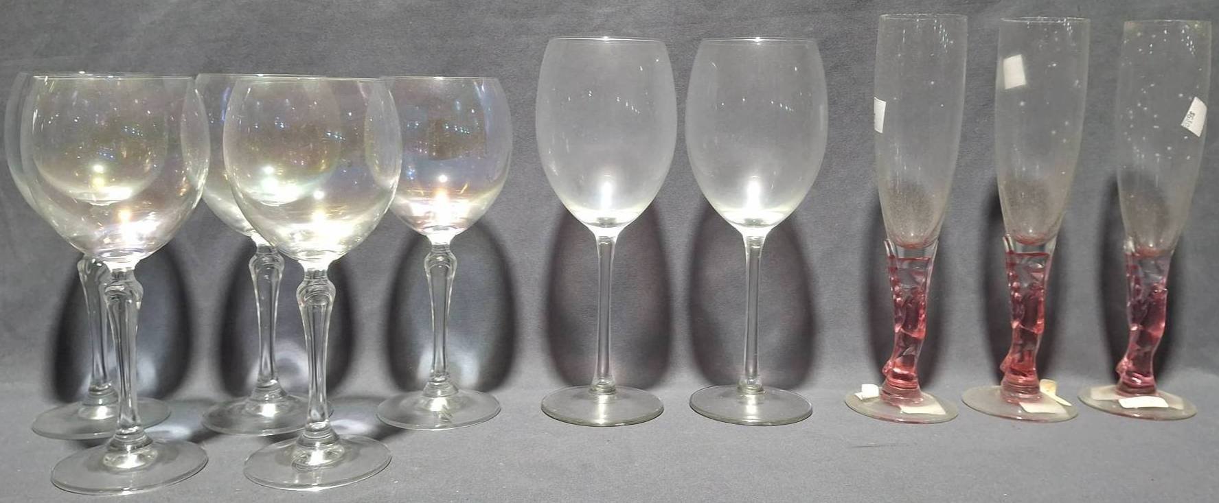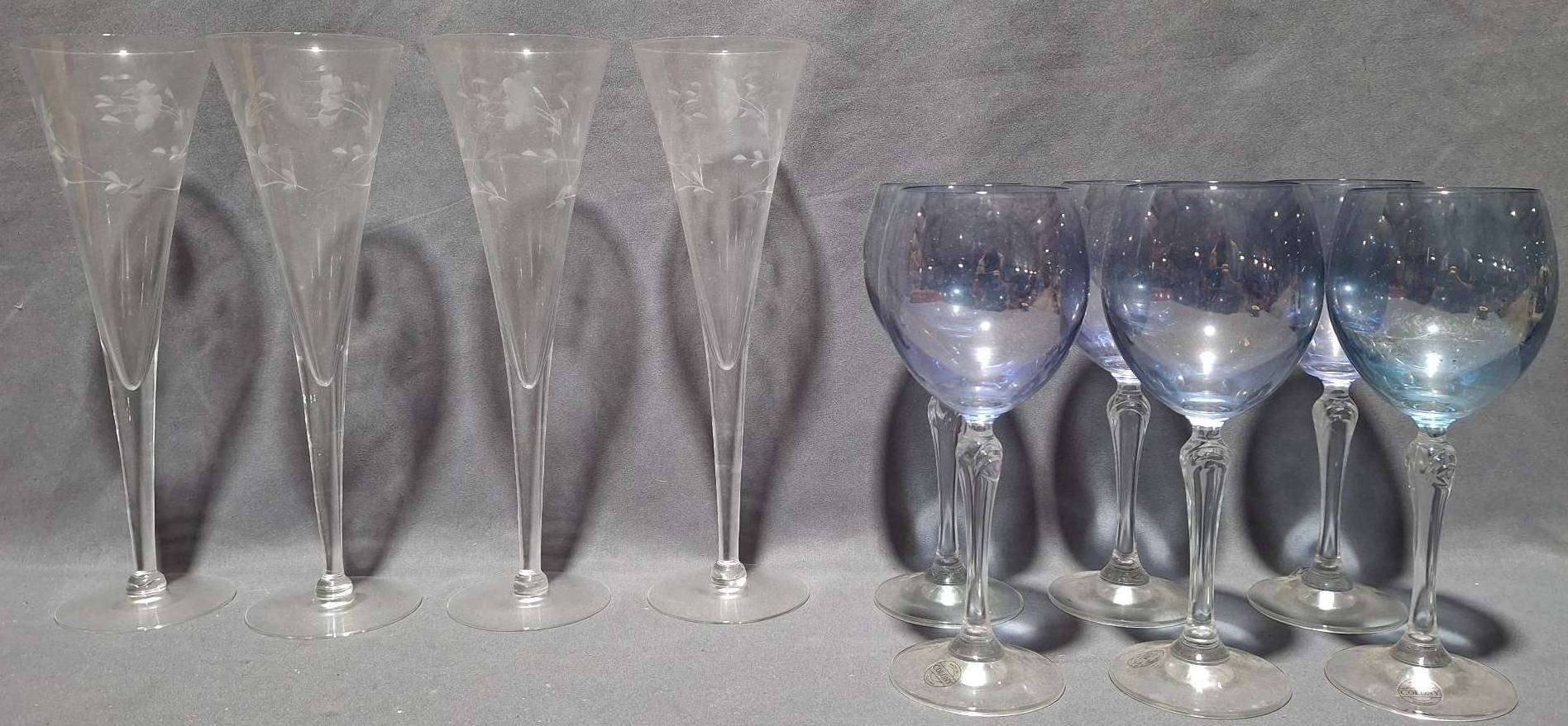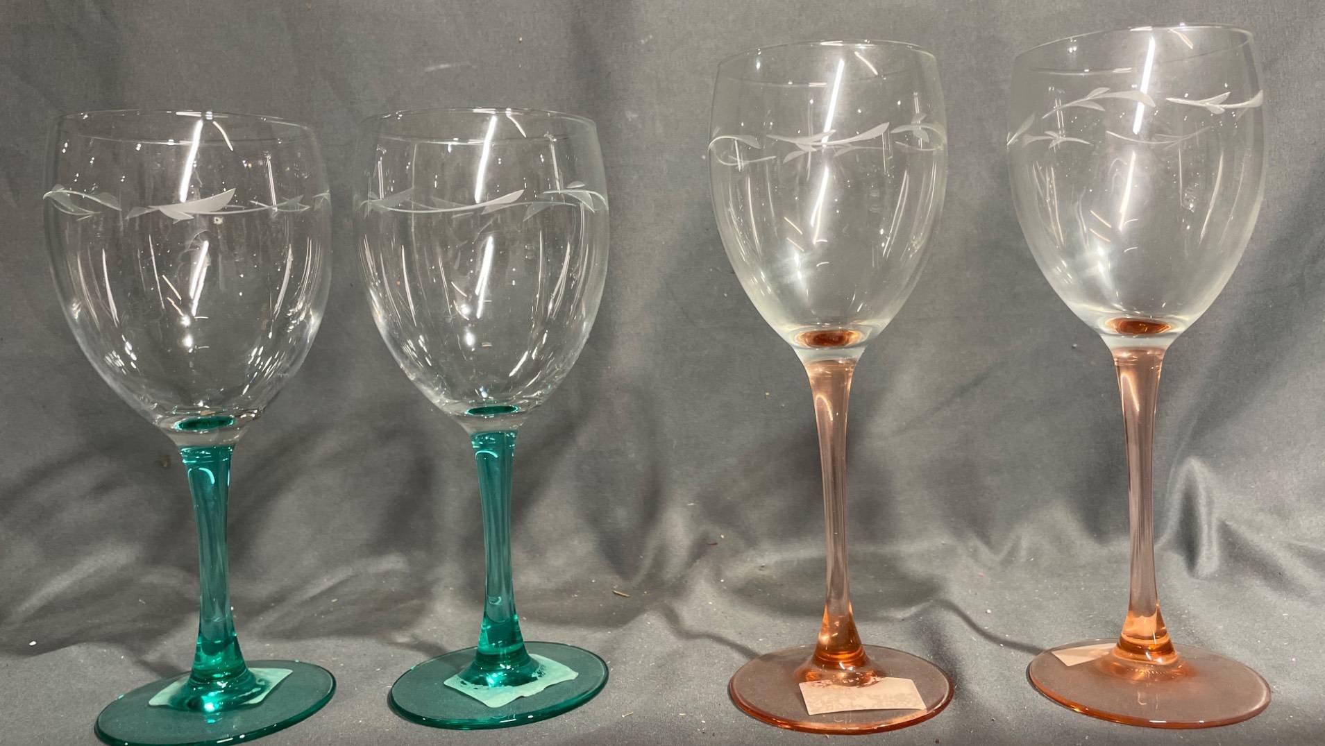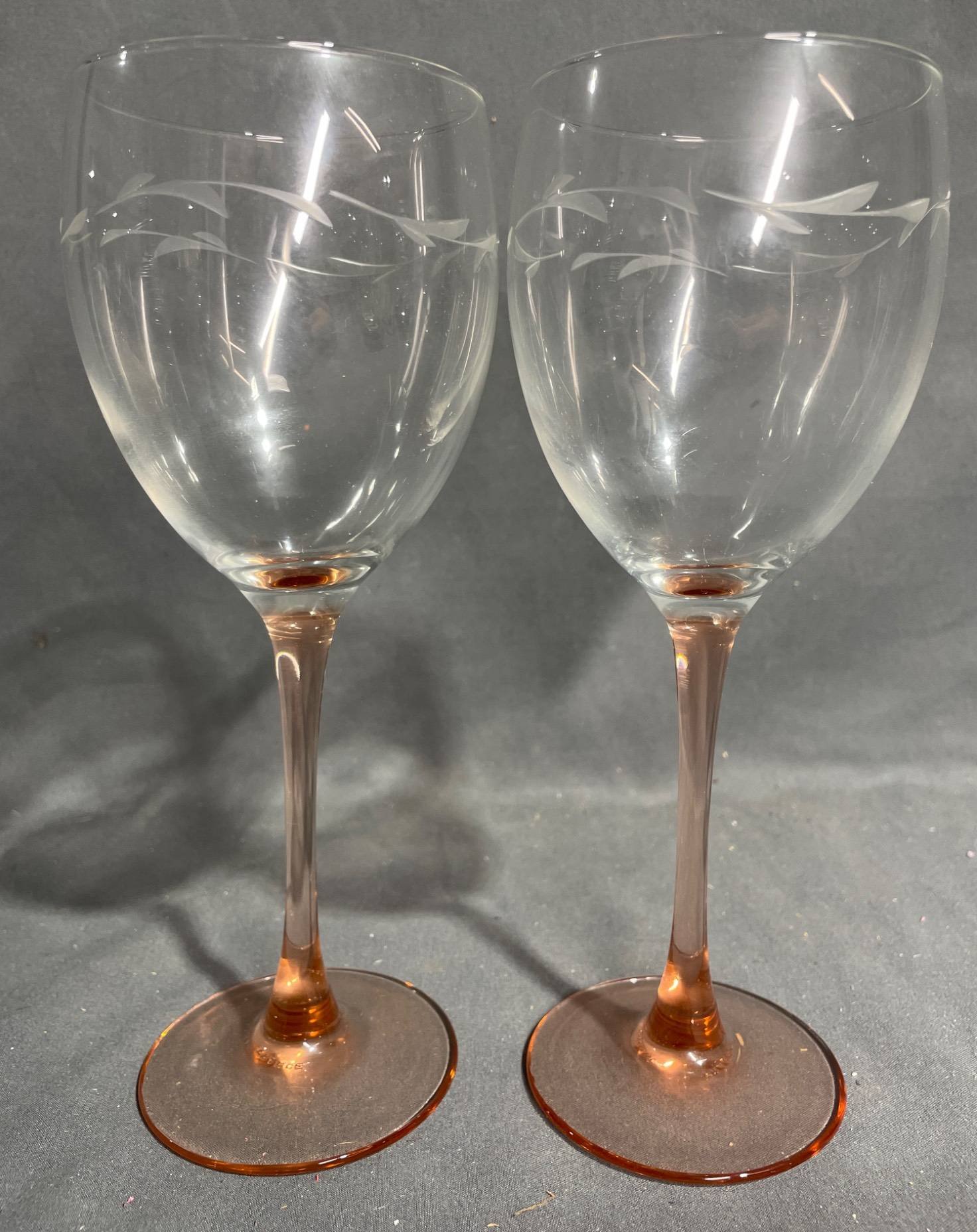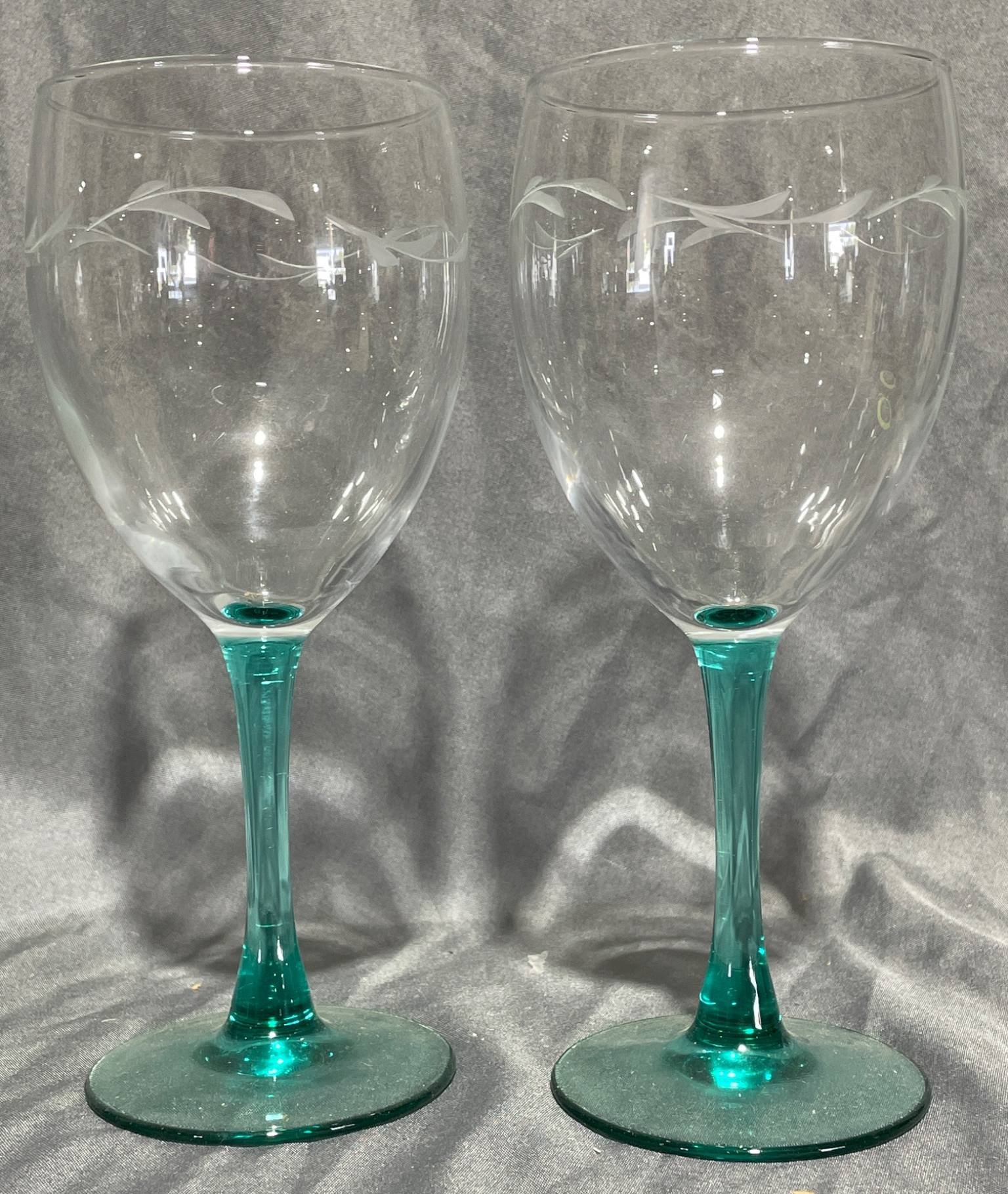 6075 Luminarc Wine Glasses with Etched Design and Colored Stems 8”,7.5”