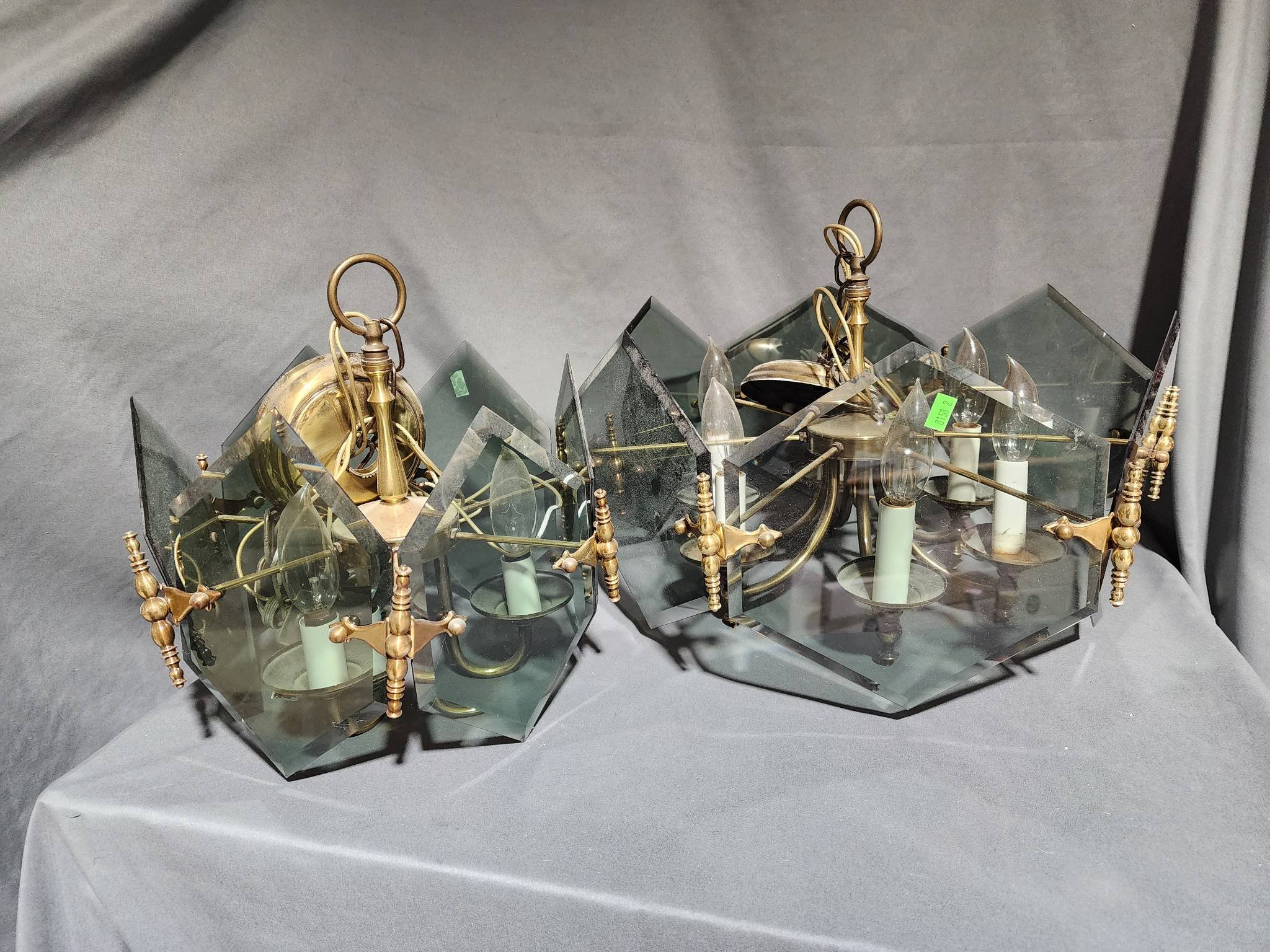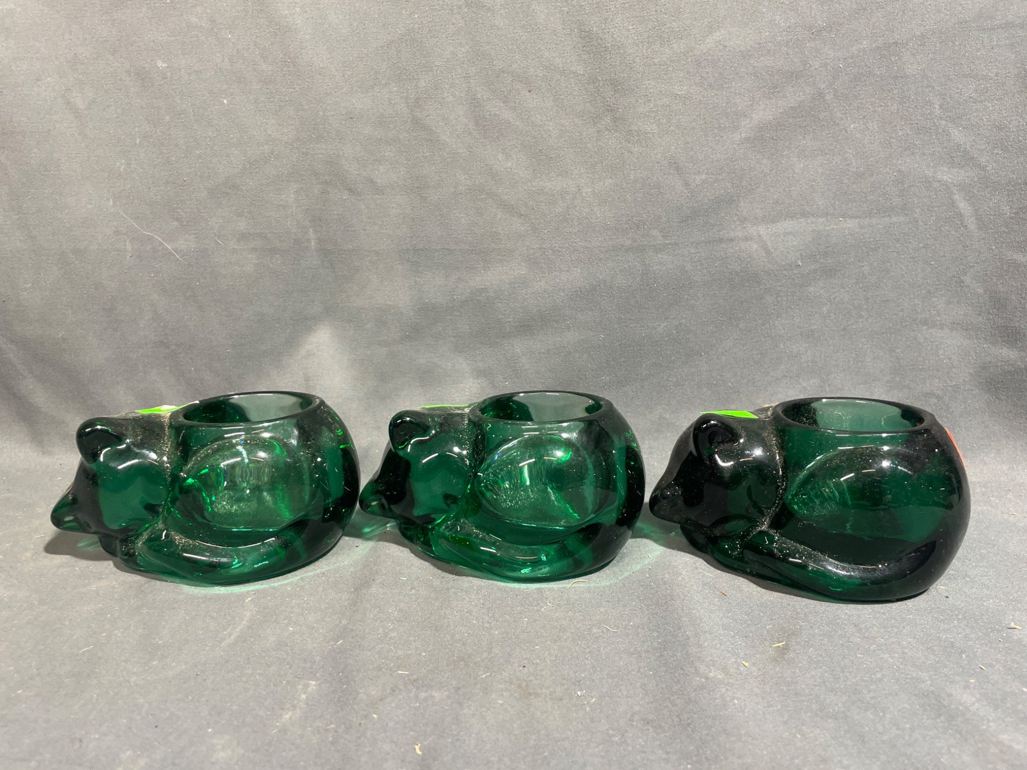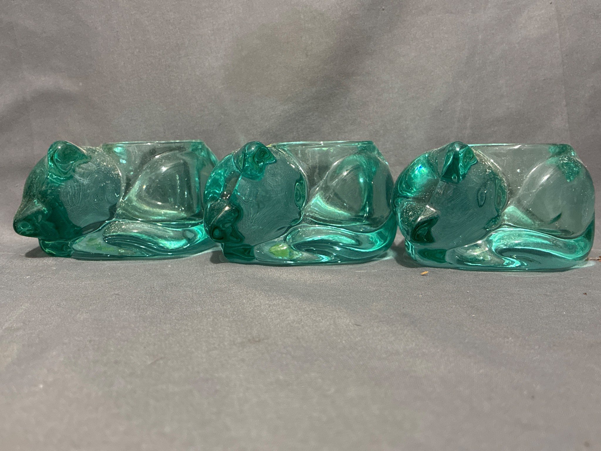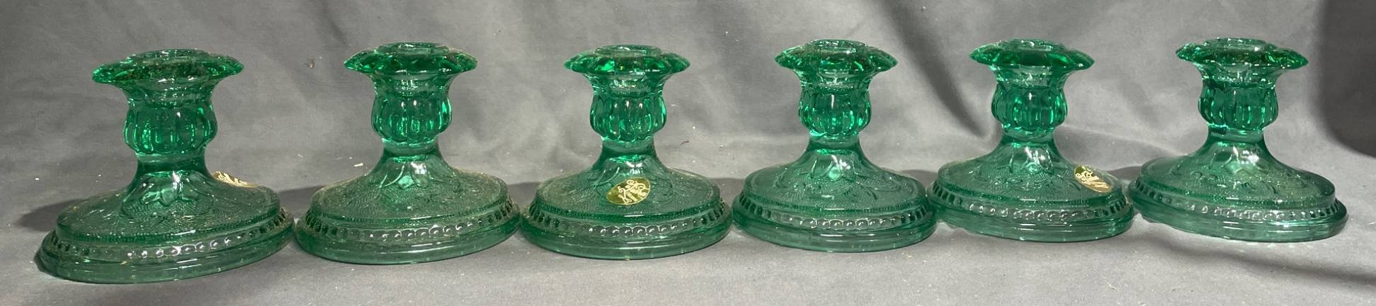 6076 6 Tiara Light Green Sandwich Glass Candle Holders 4.5”x3.5”