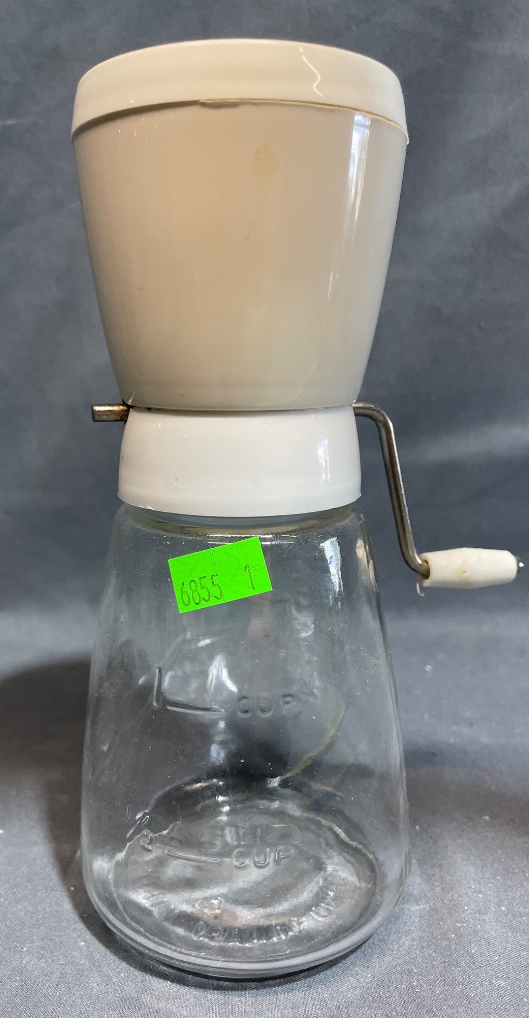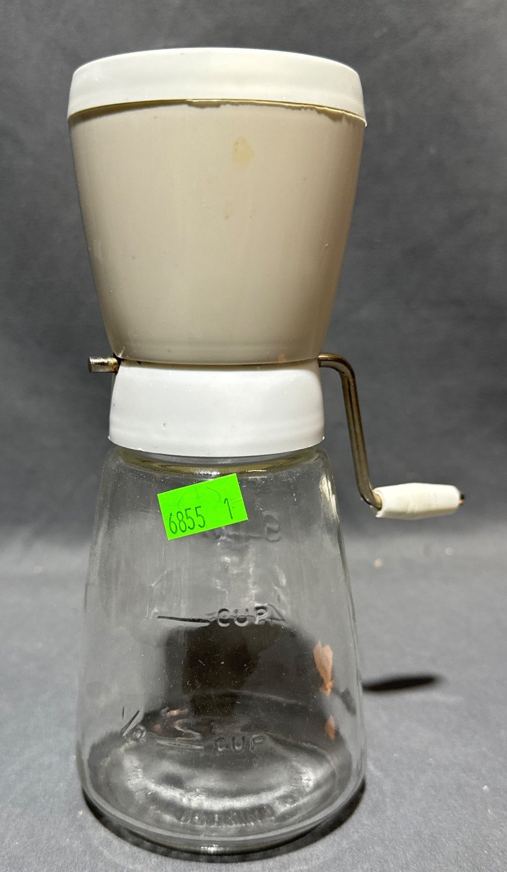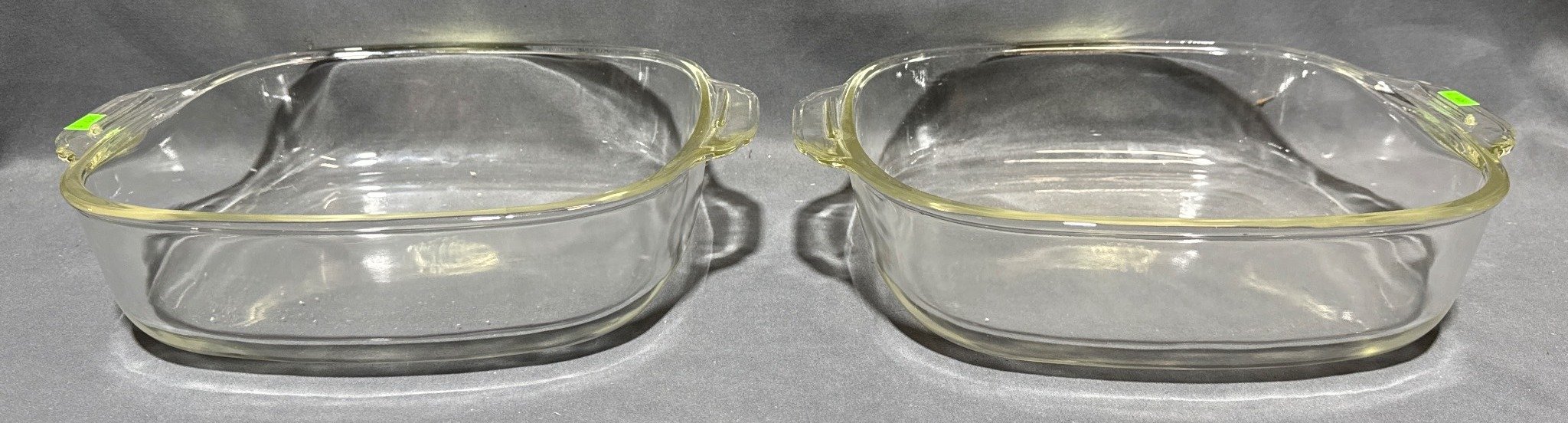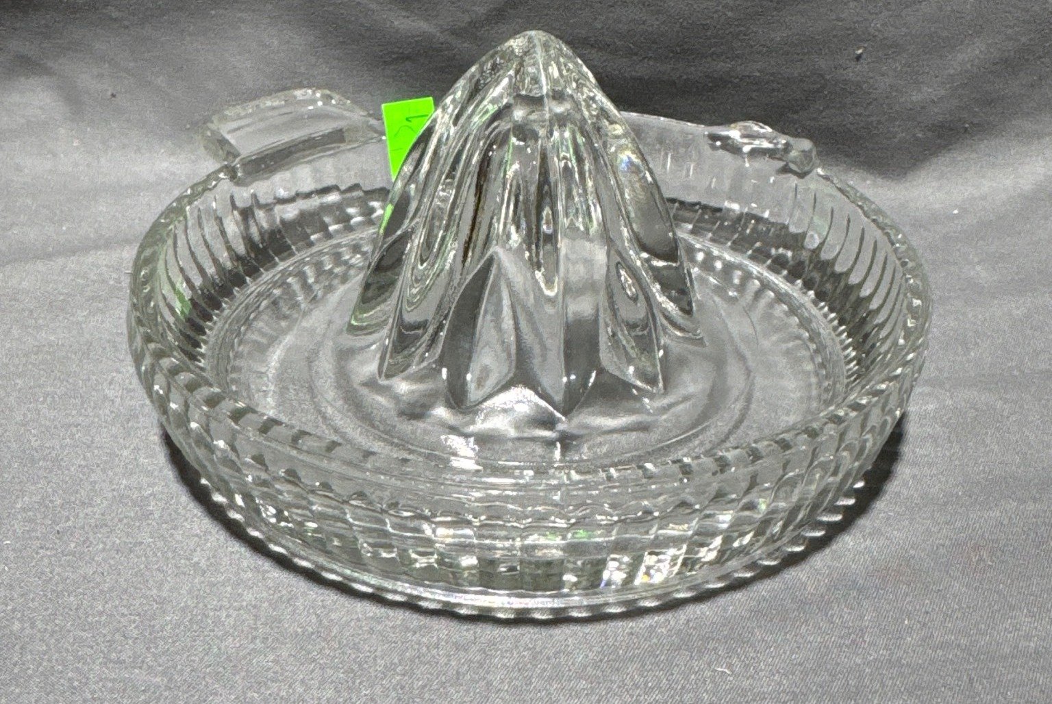 6078 Vintage Fostoria Hungary Clear Glass Pitcher with Green Handle 4”x10”.