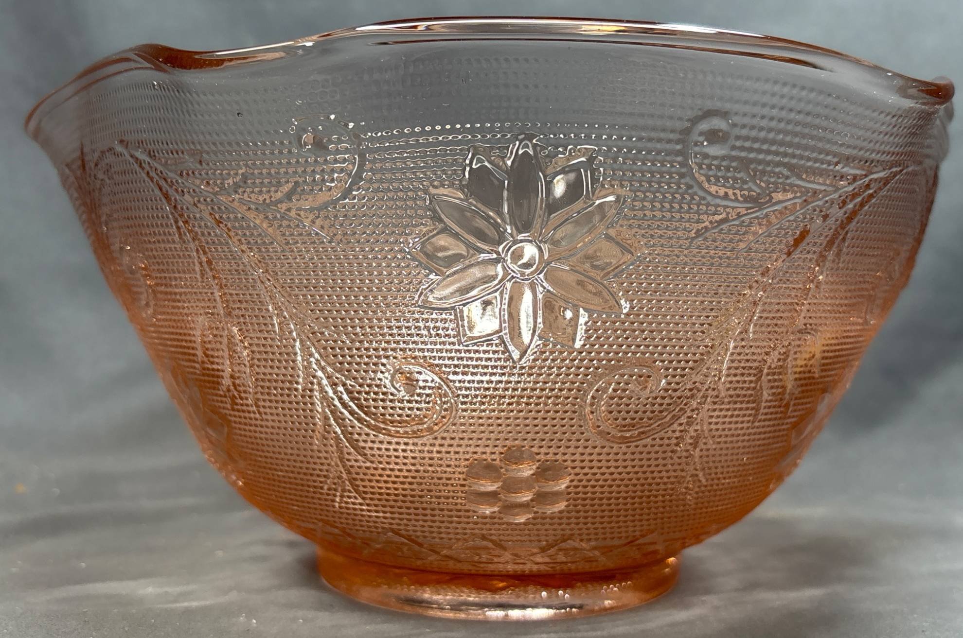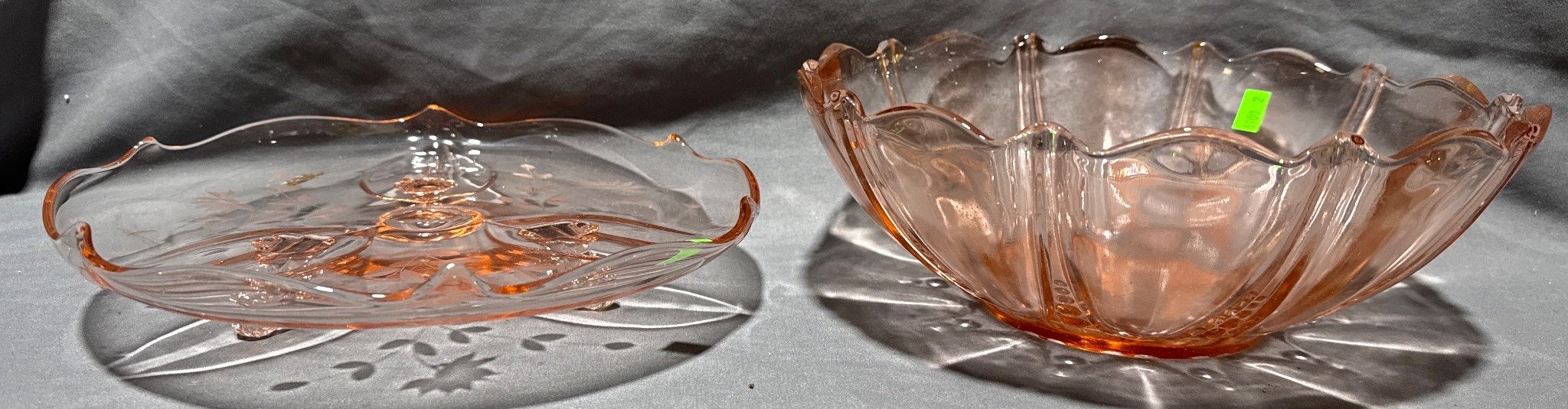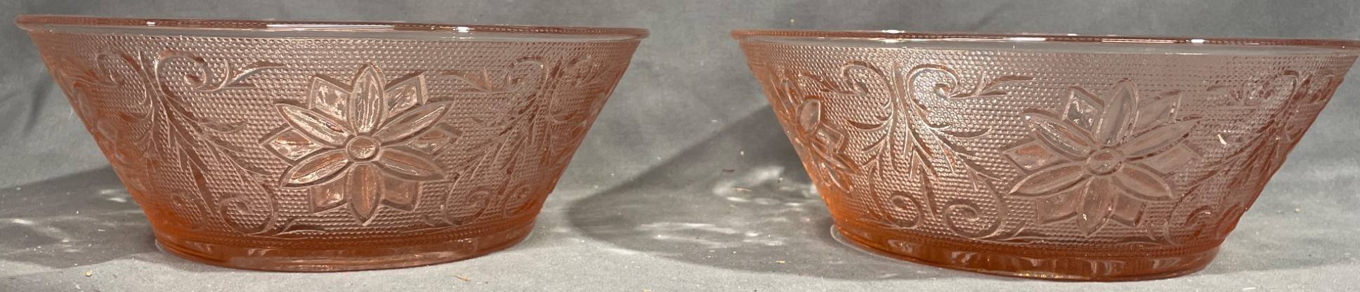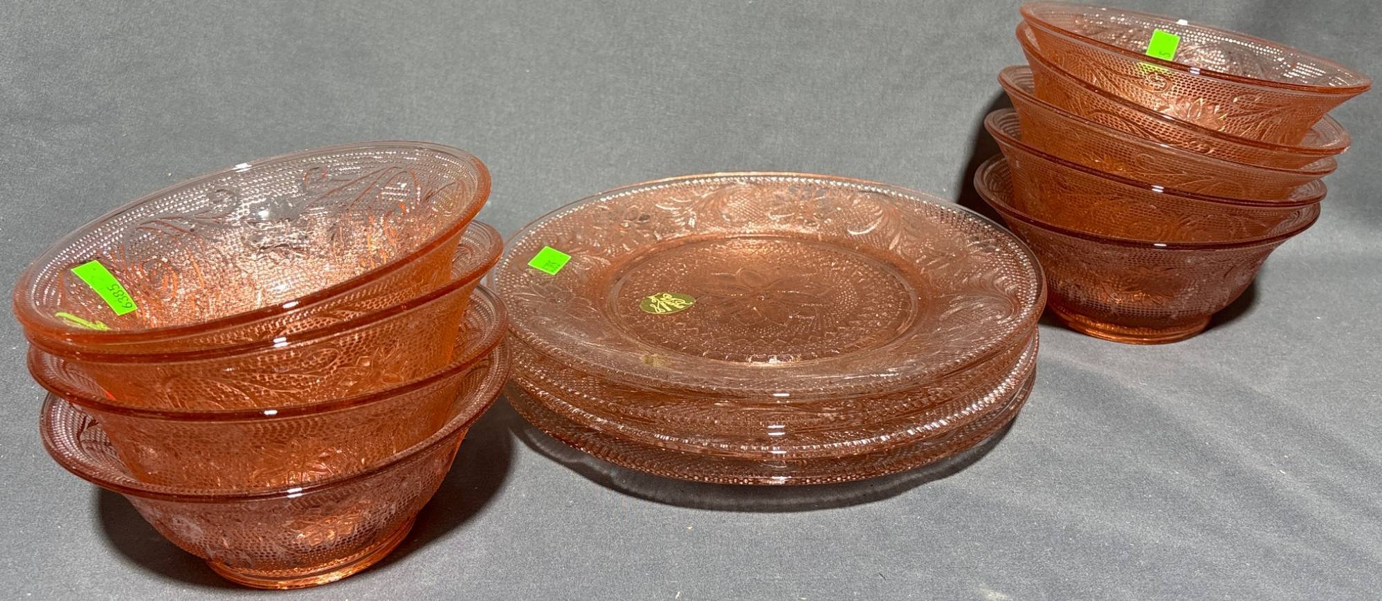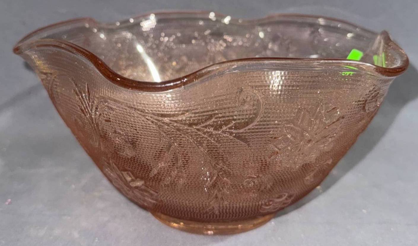 6088 Pink Depression Glass Dishware with Nursery Rhyme Motifs