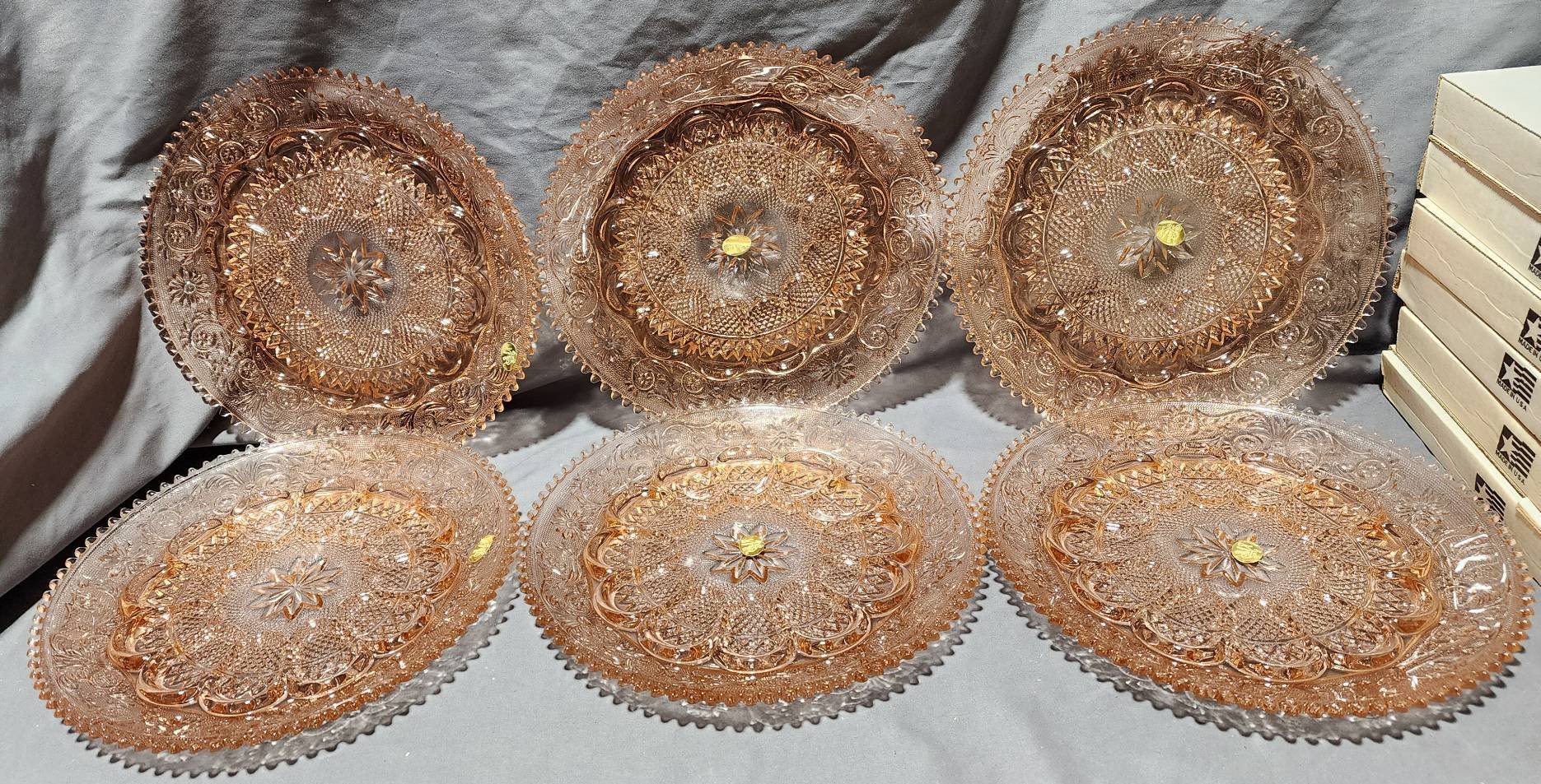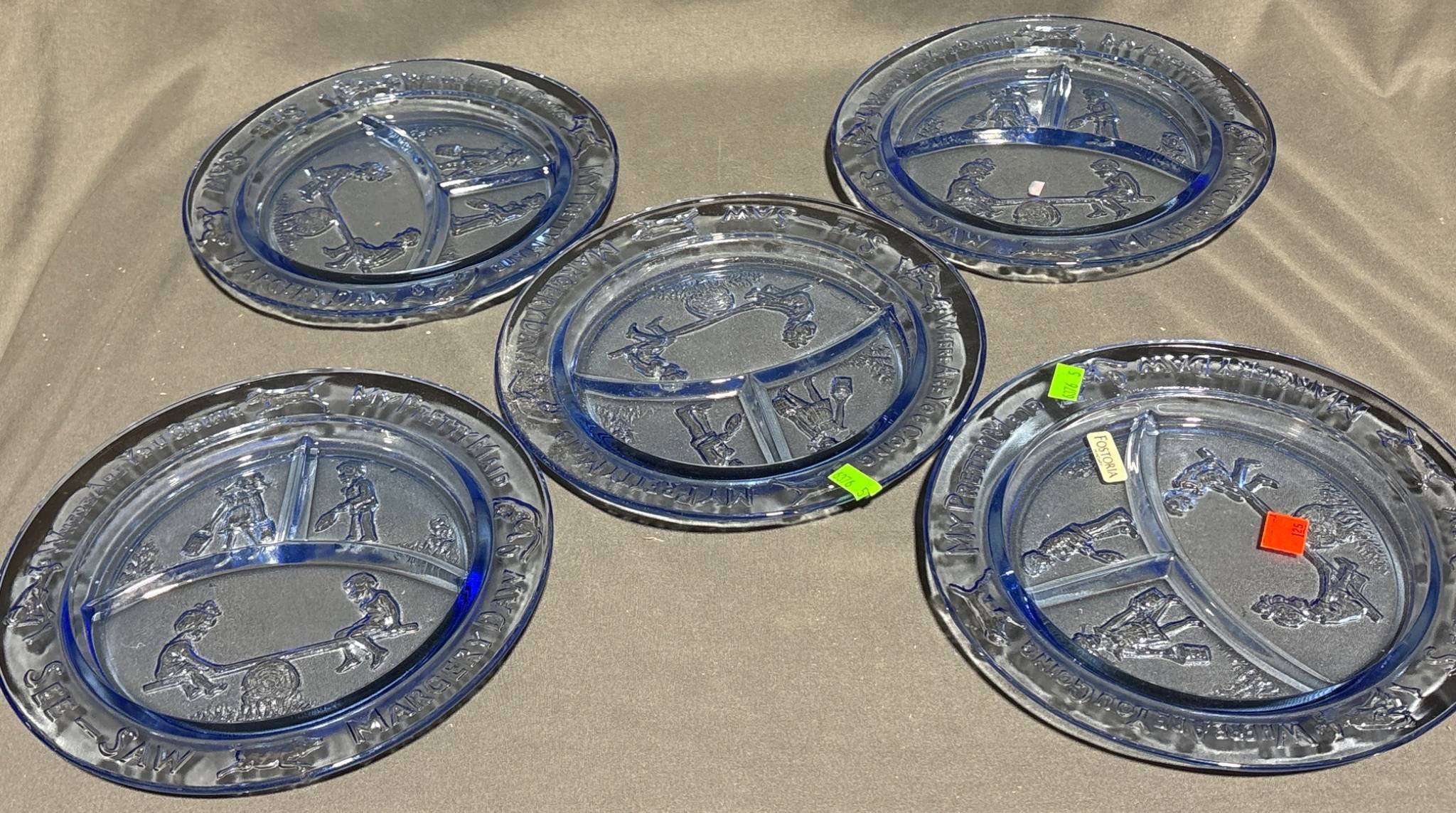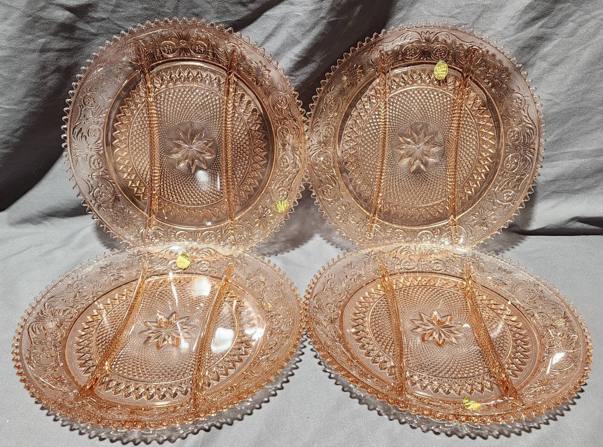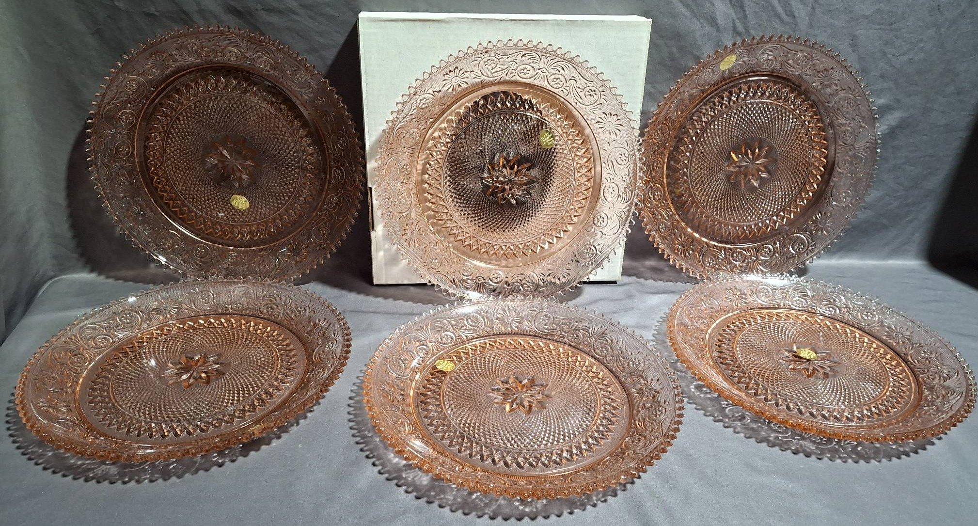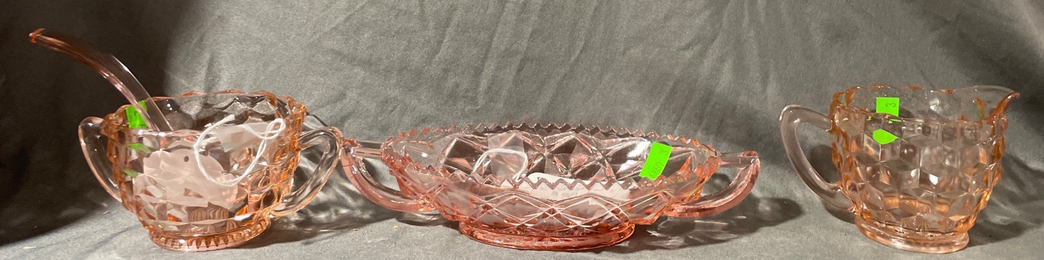 6088 Pink Depression Glass Dishware with Nursery Rhyme Motifs