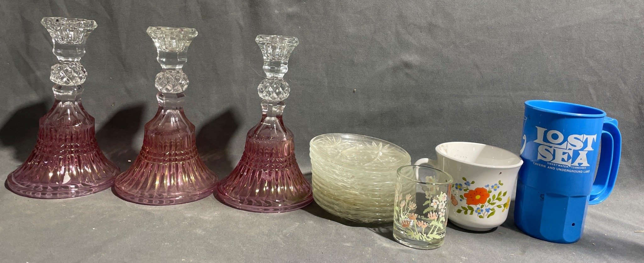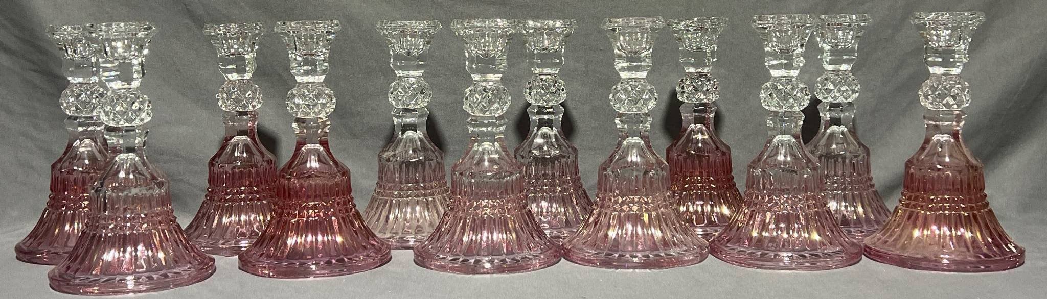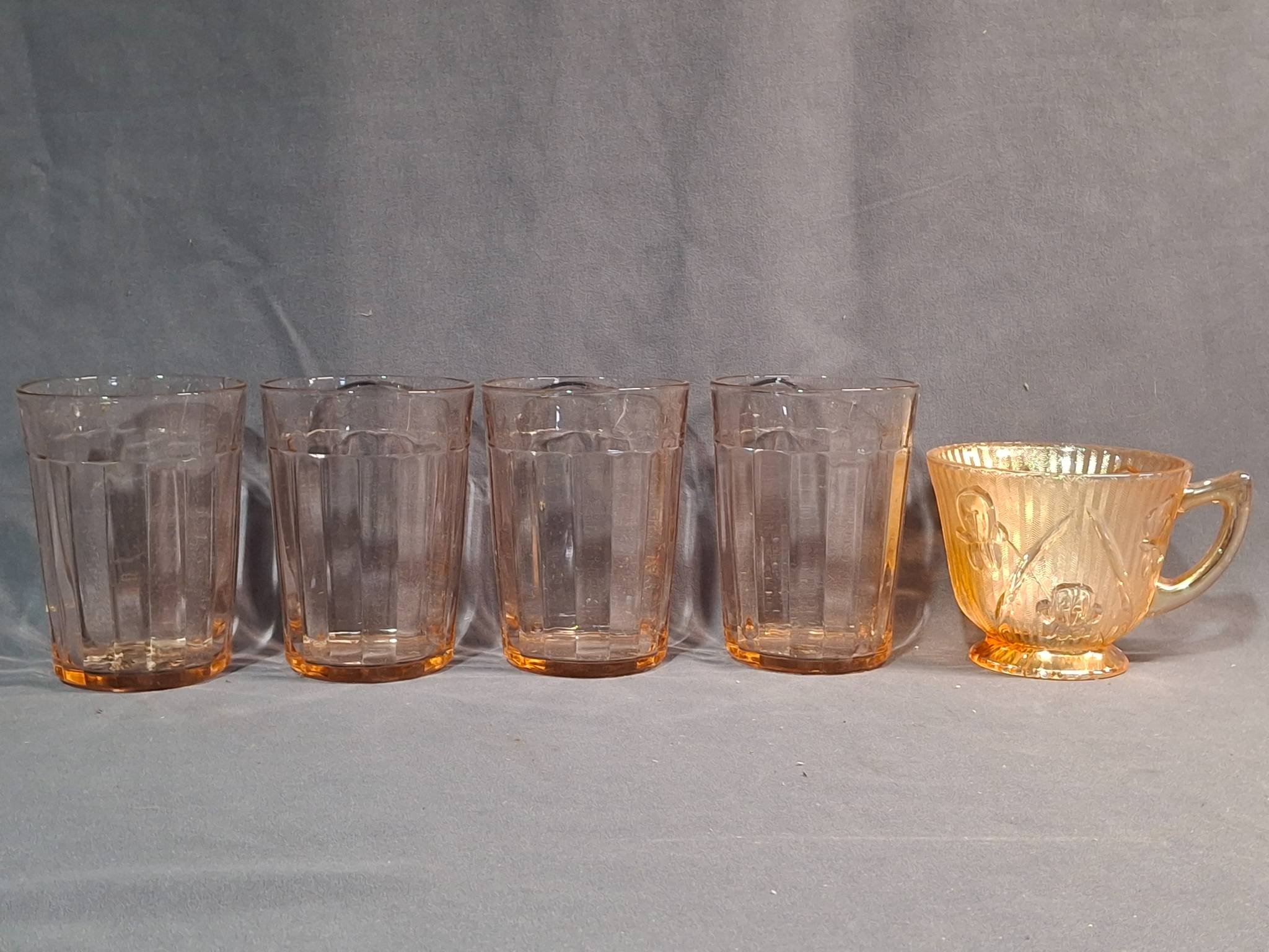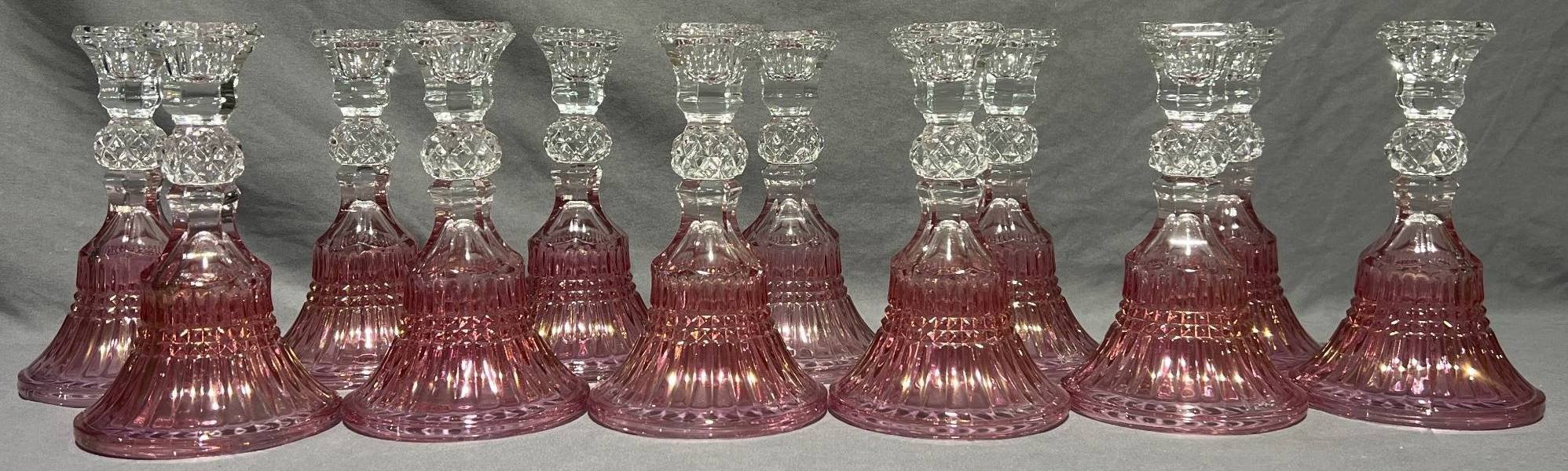6088 Pink Depression Glass Dishware with Nursery Rhyme Motifs