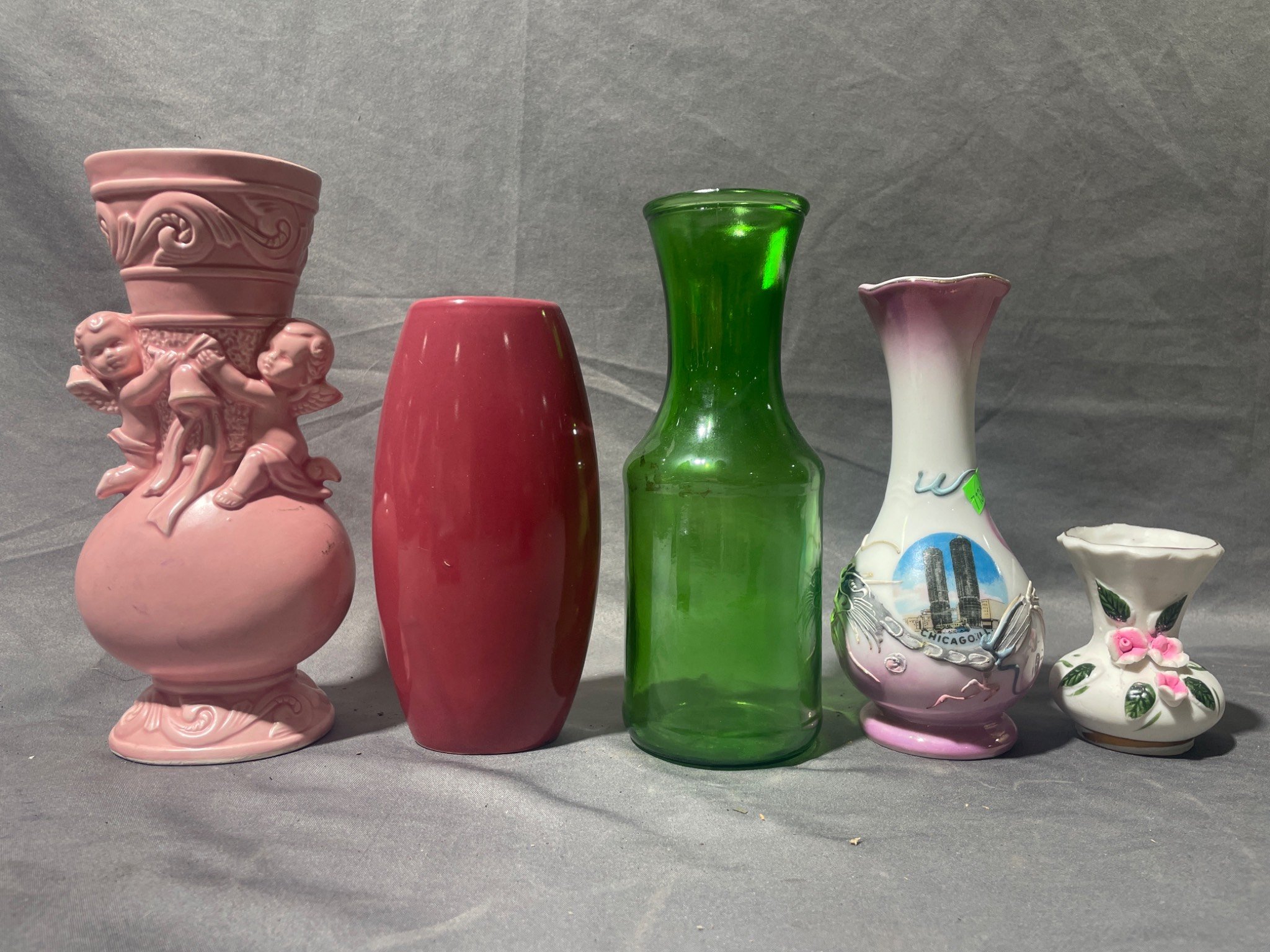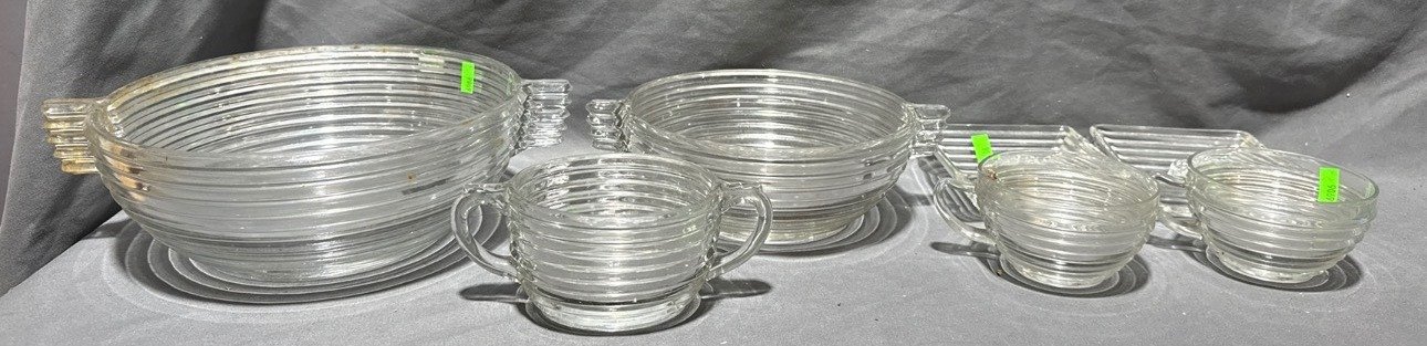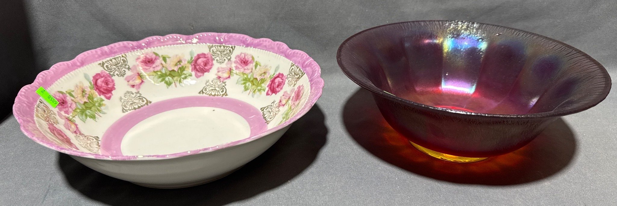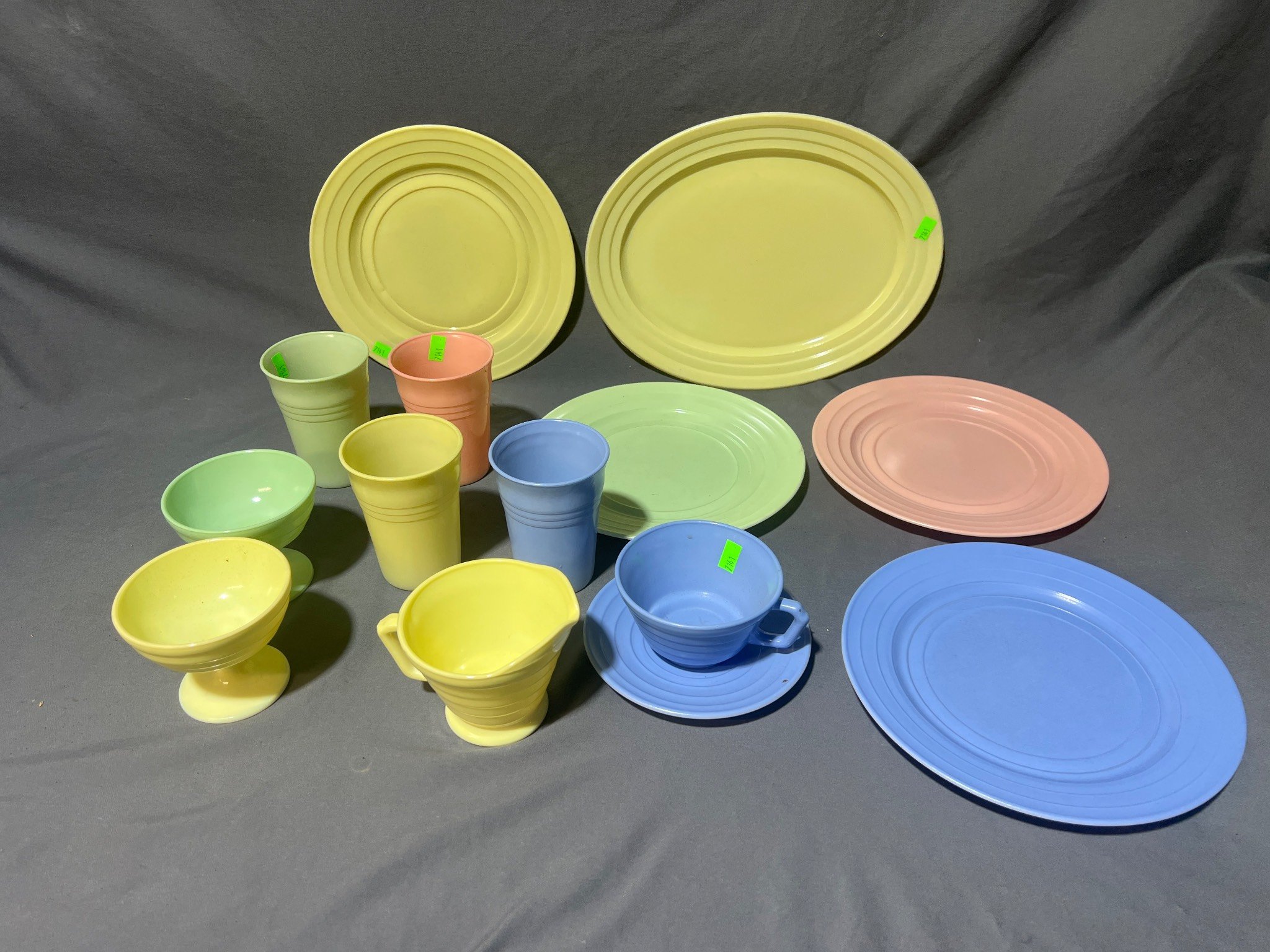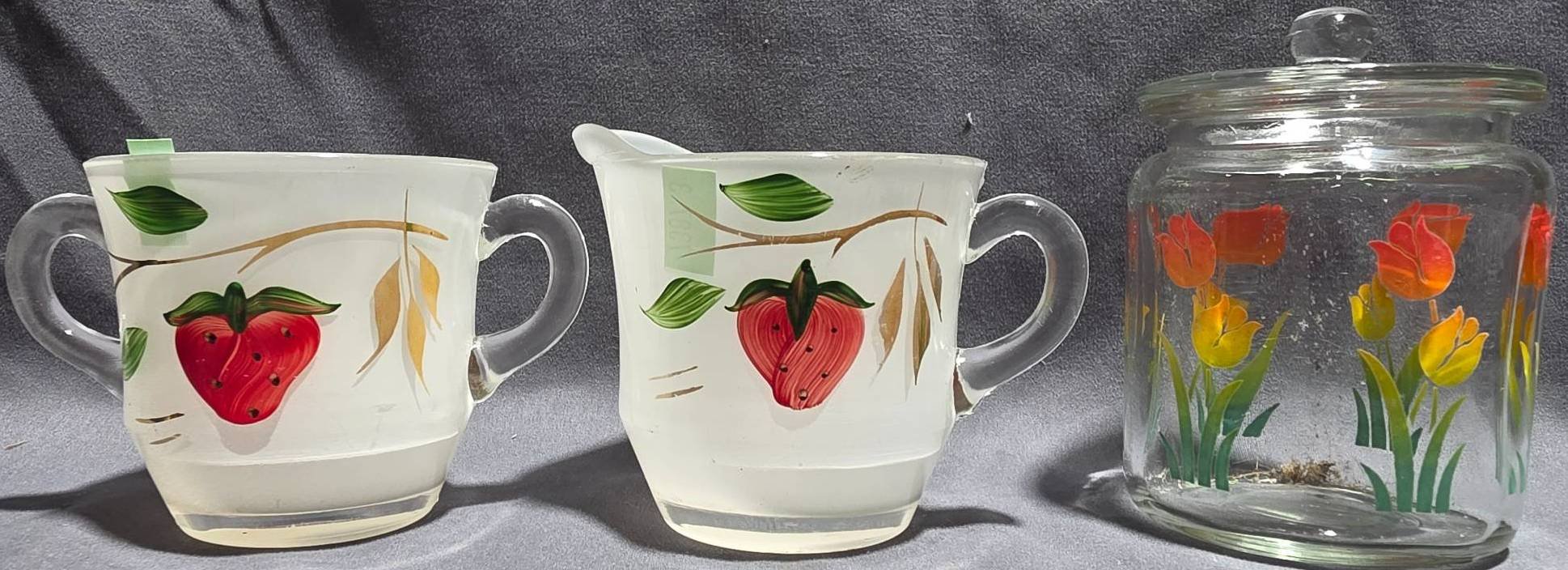 6088 Pink Depression Glass Dishware with Nursery Rhyme Motifs