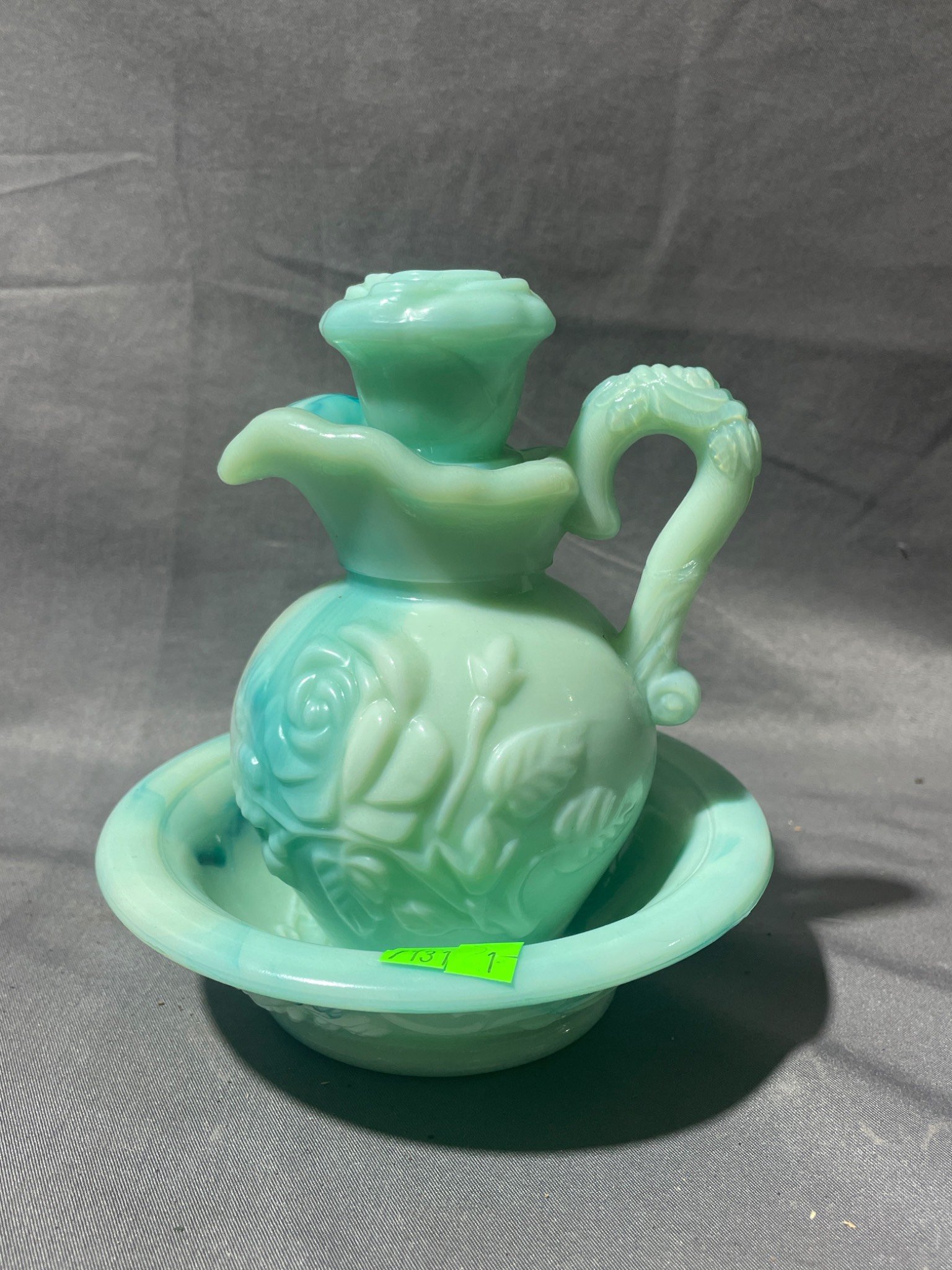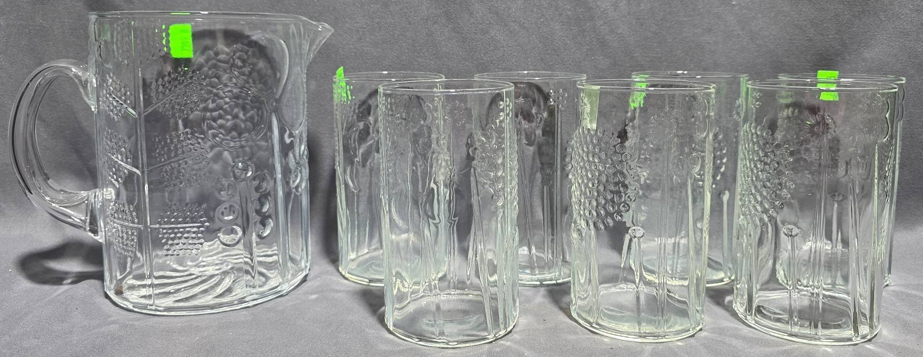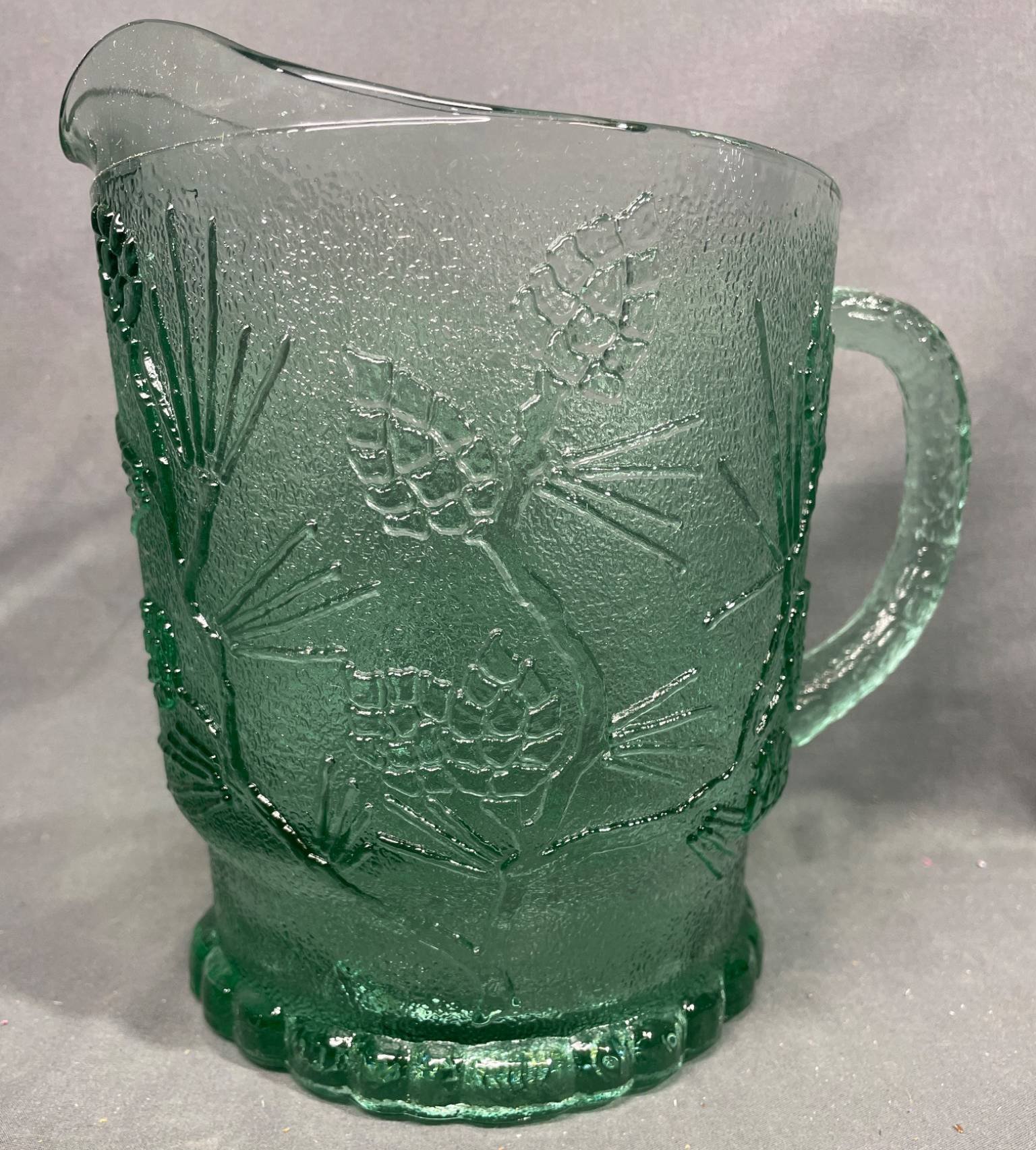 6089 Tiara Ponderosa Pine Green Glass Pitcher 6”x8”