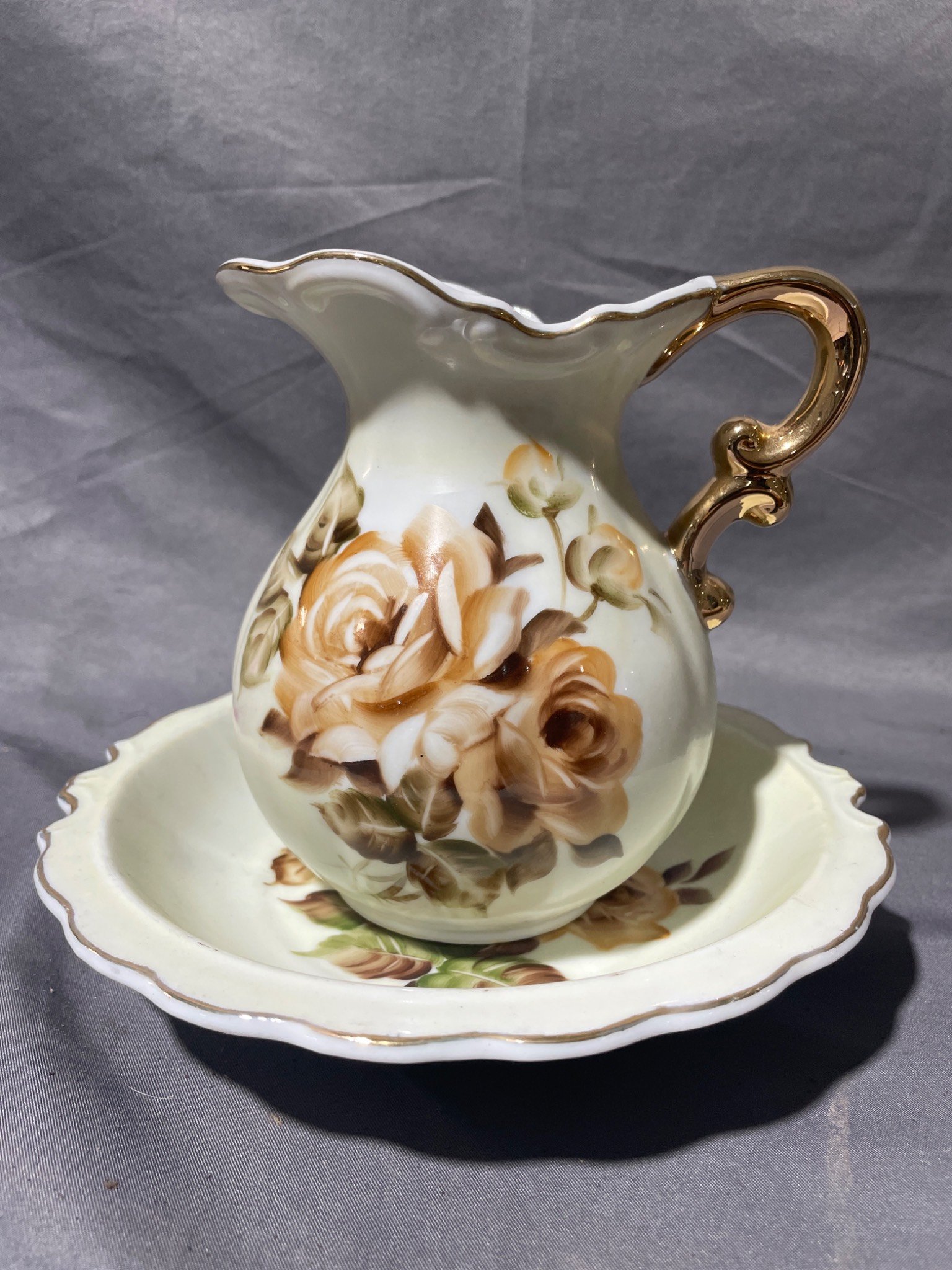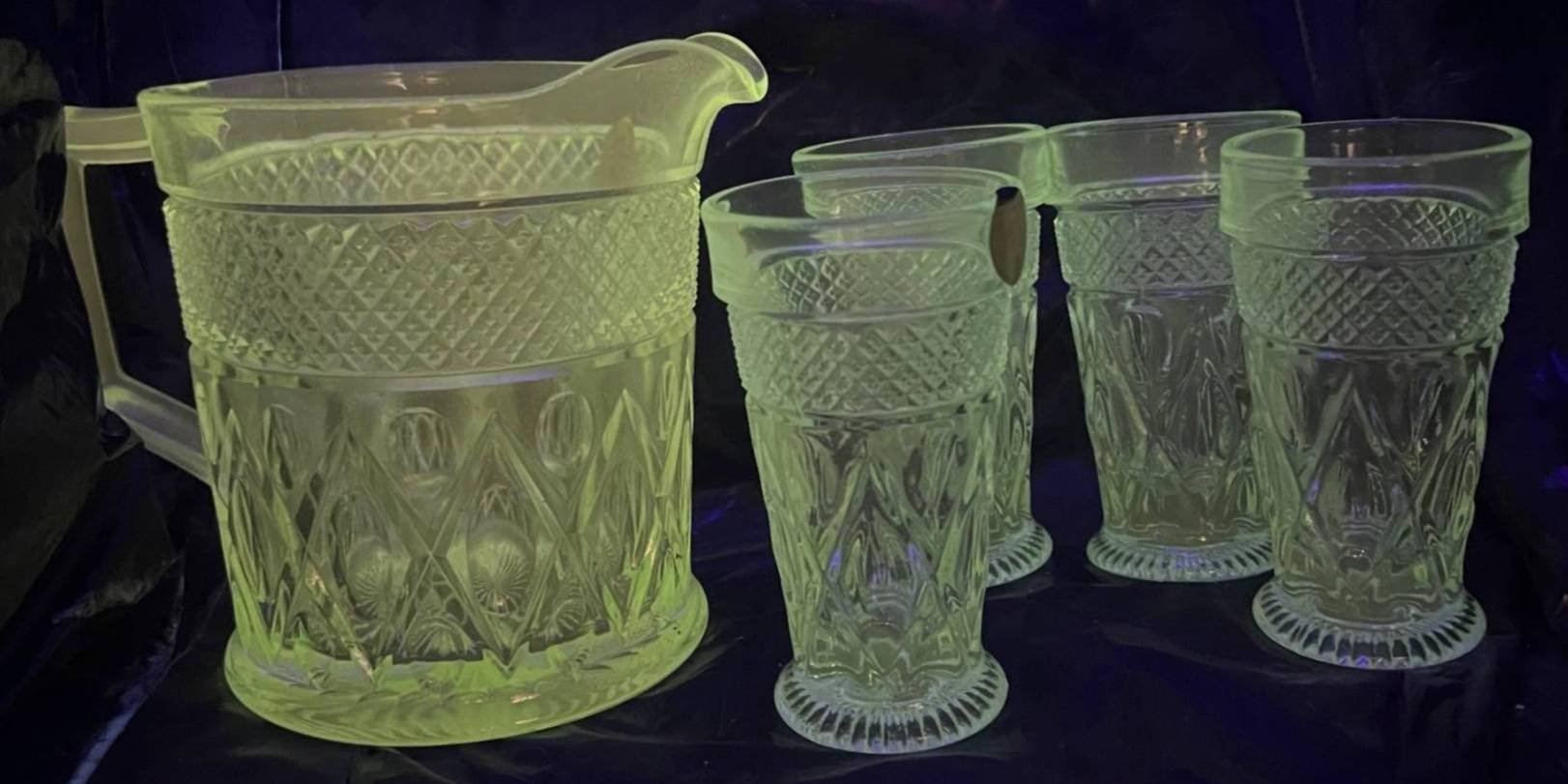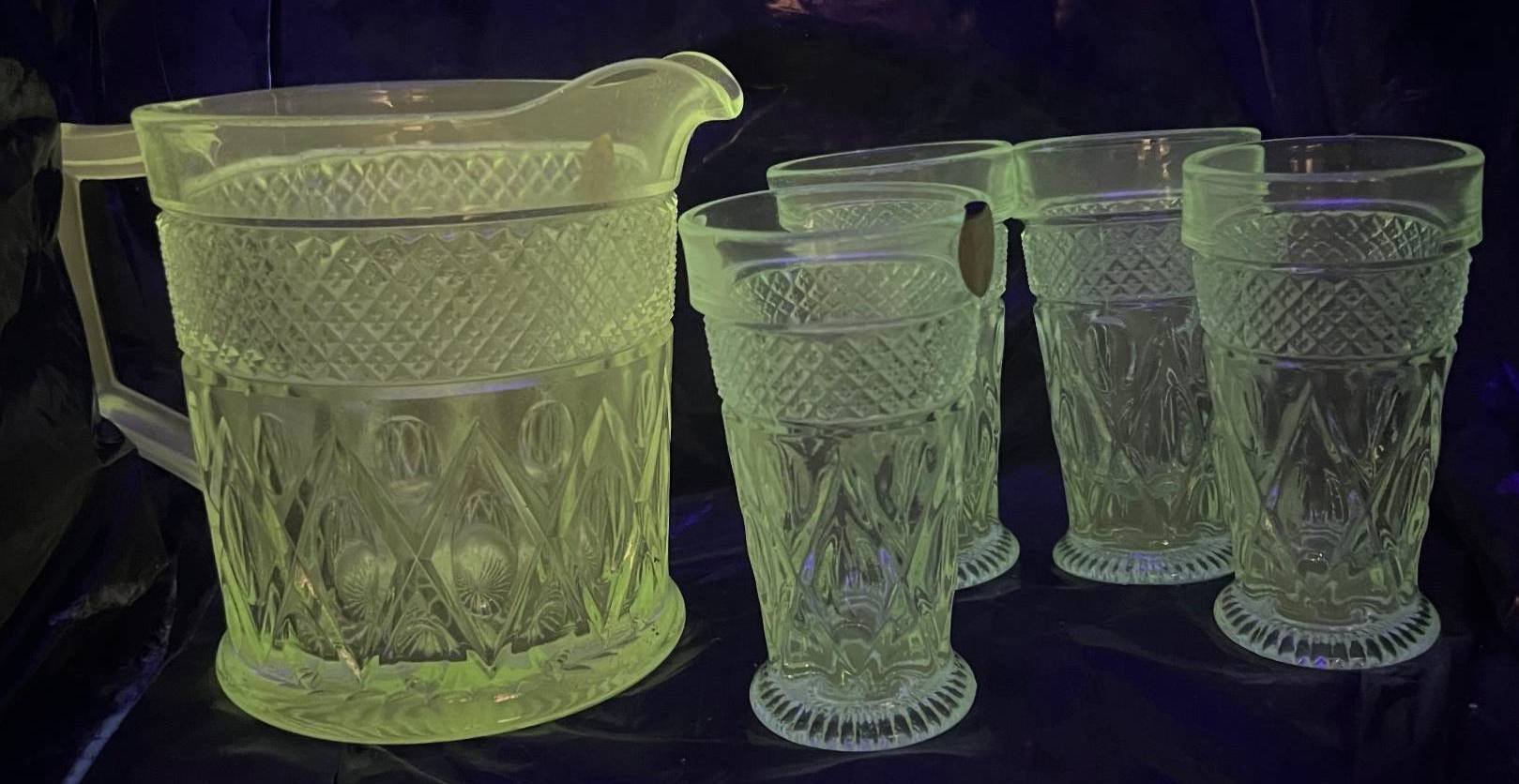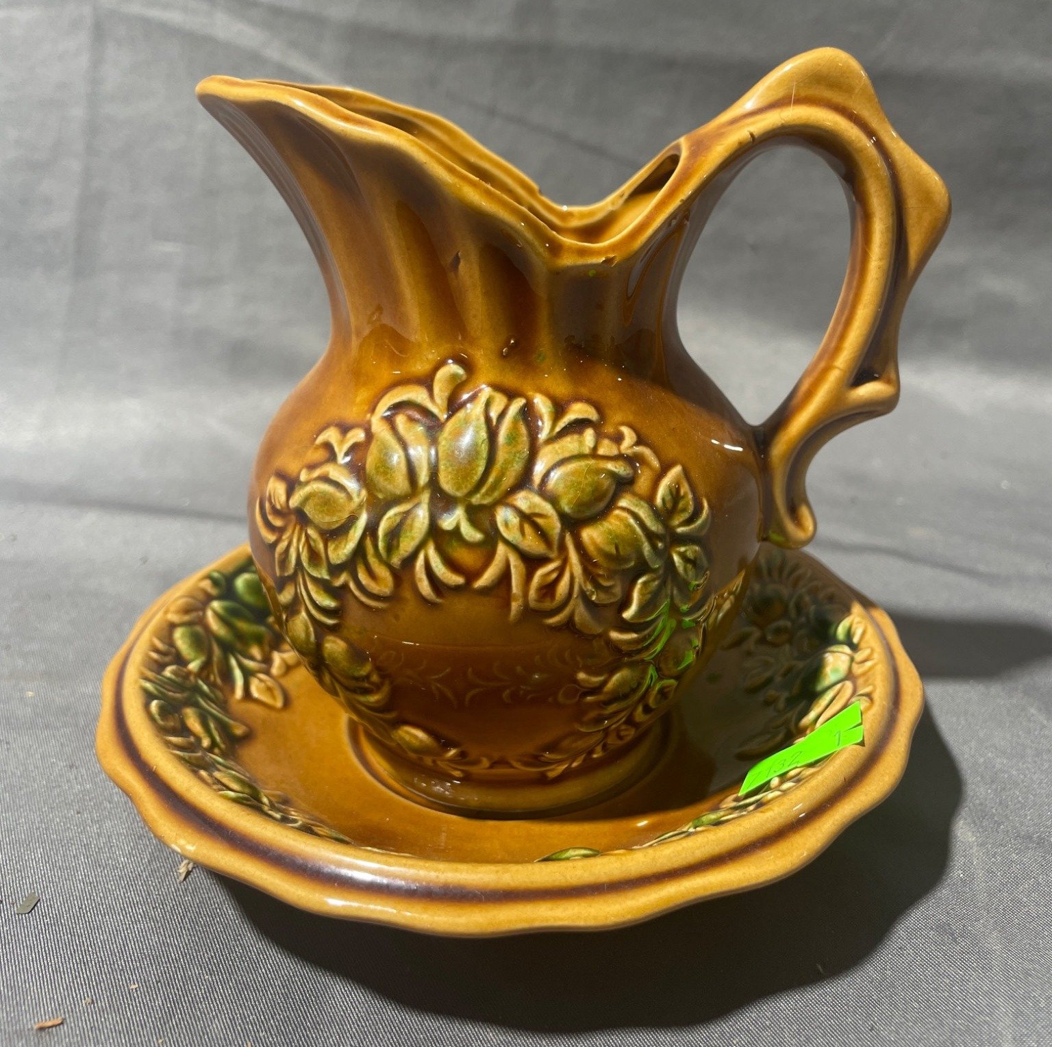 6089 Tiara Ponderosa Pine Green Glass Pitcher 6”x8”