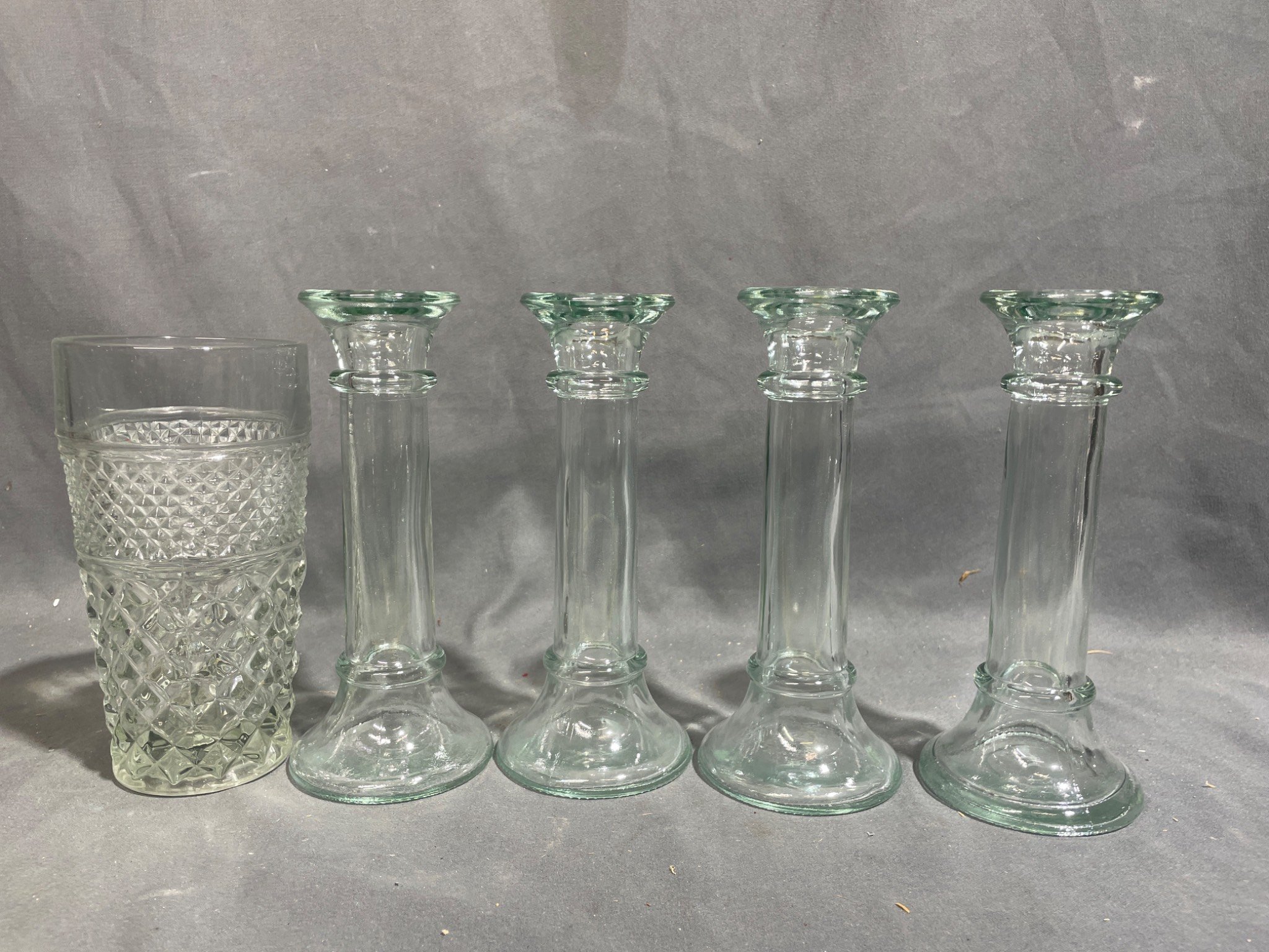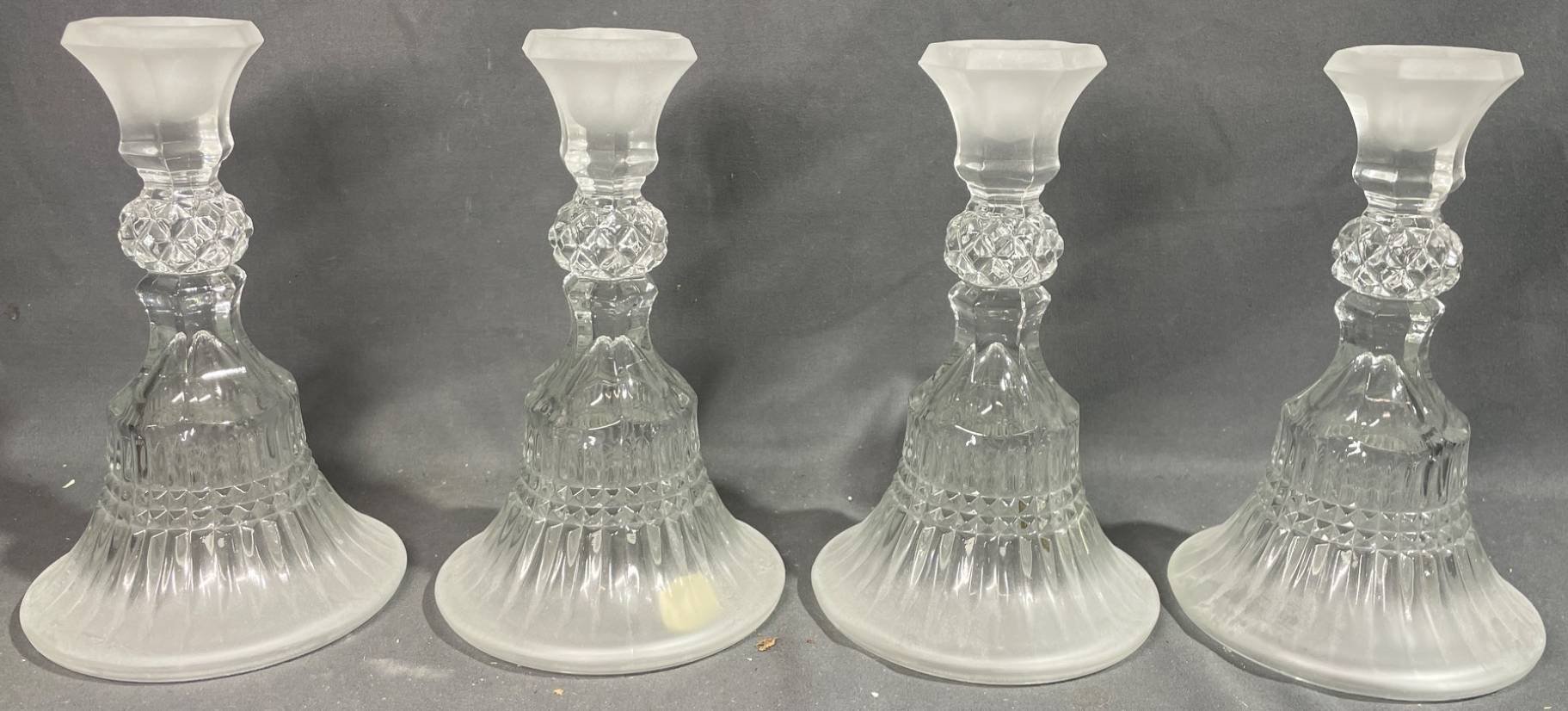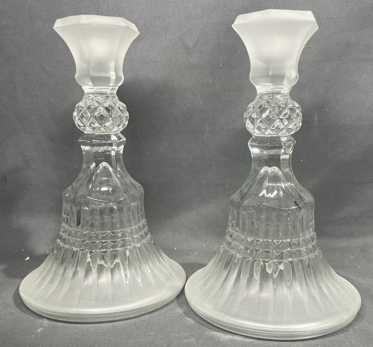 6090 Tiara Clear Frosted Glass Candle Holders 4.5”x7”