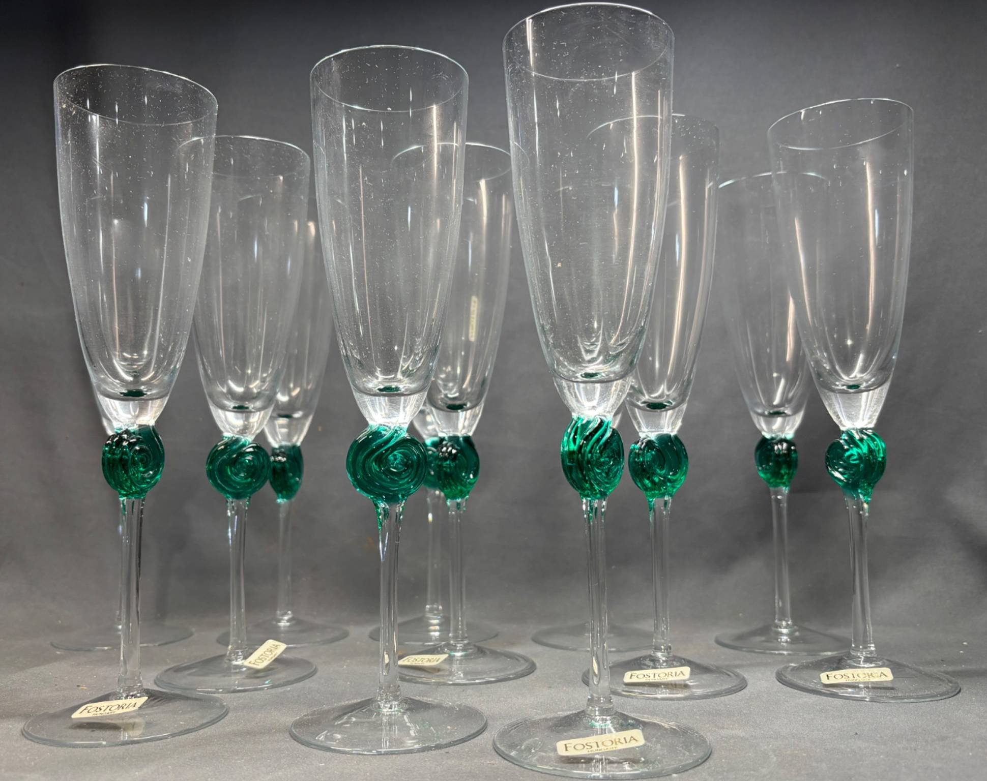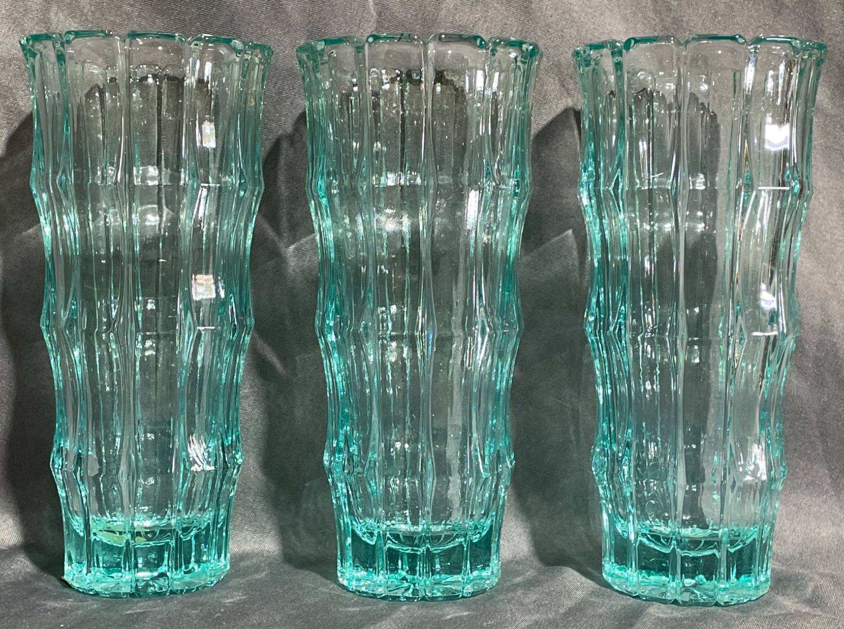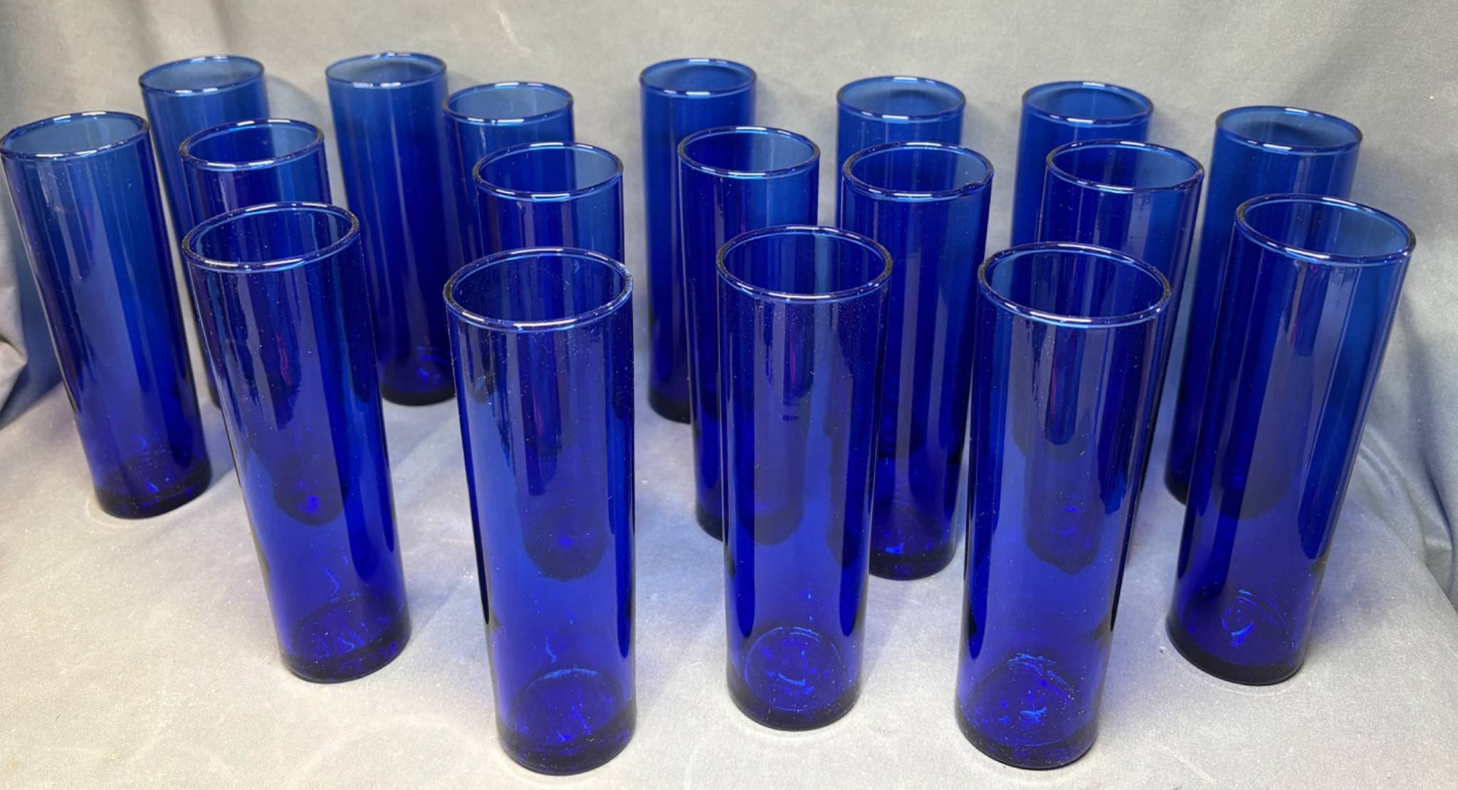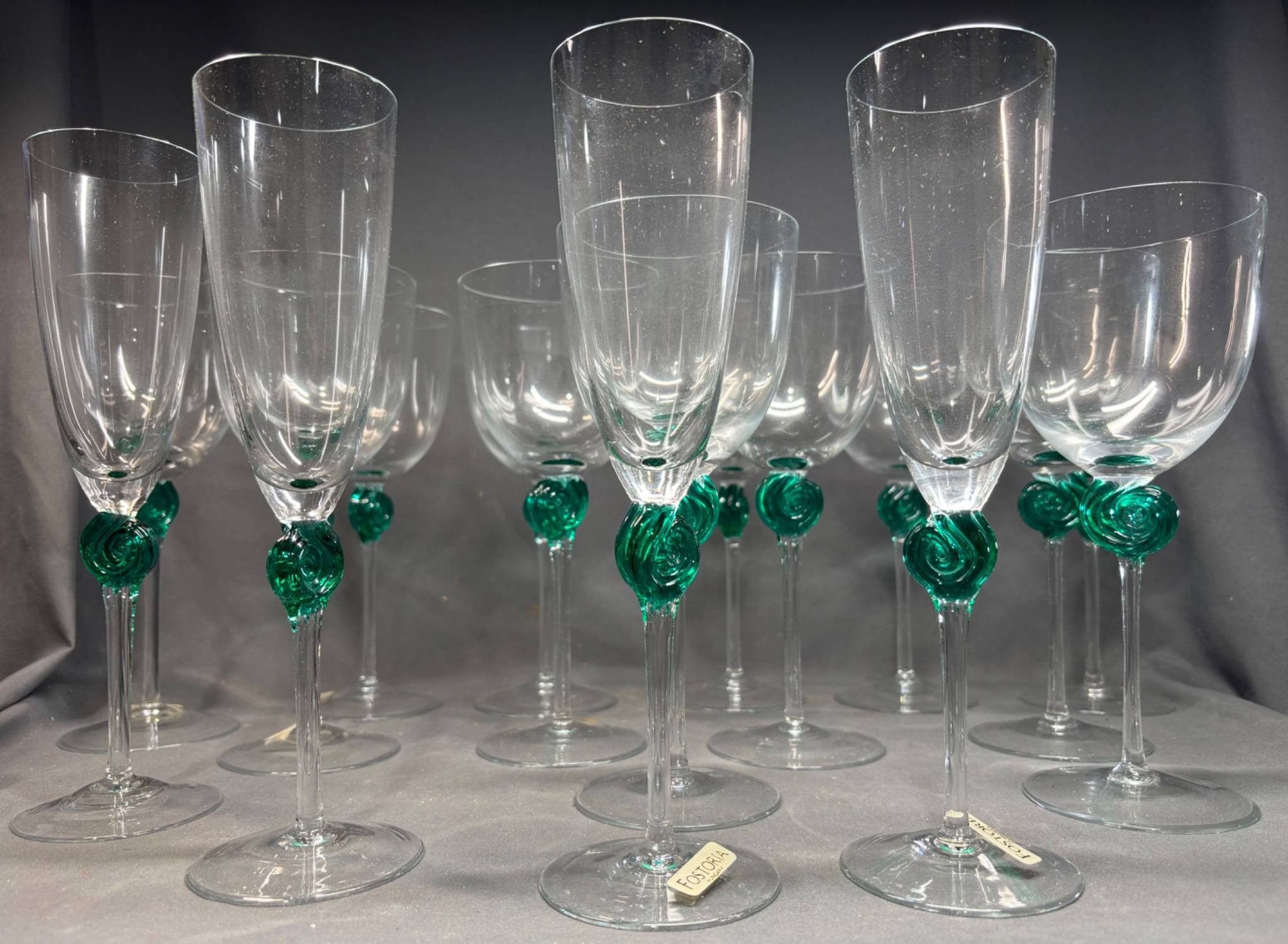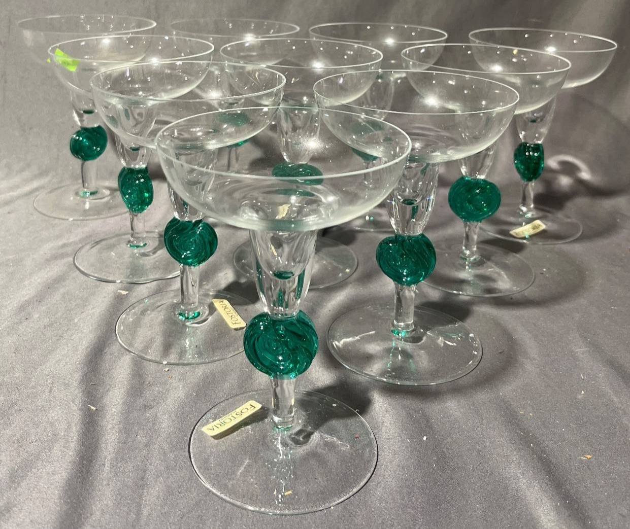 6065 12 Blue Stemmed Glasses with Green Bases by Colony, Made in Slovakia 2.5”x8”