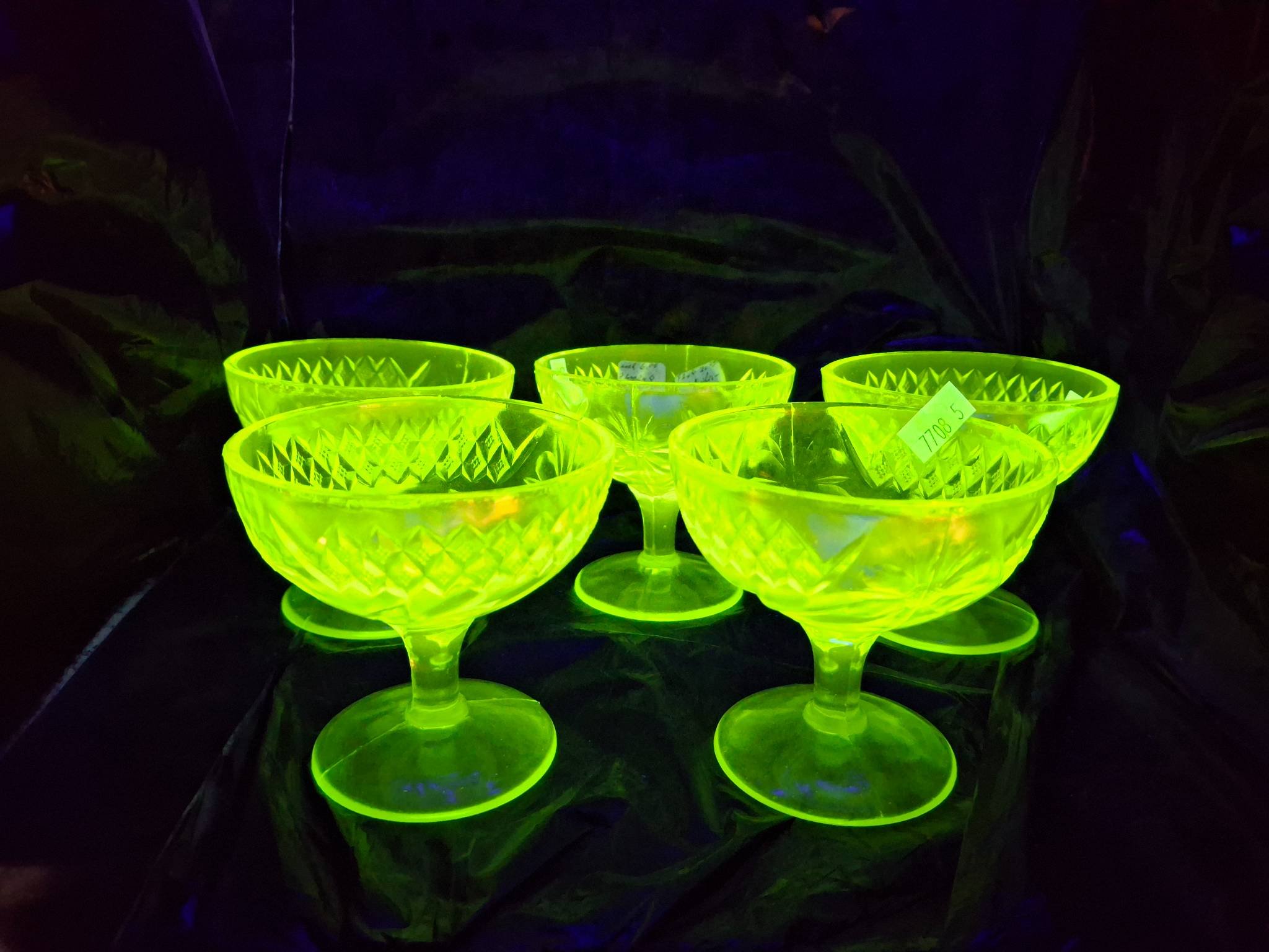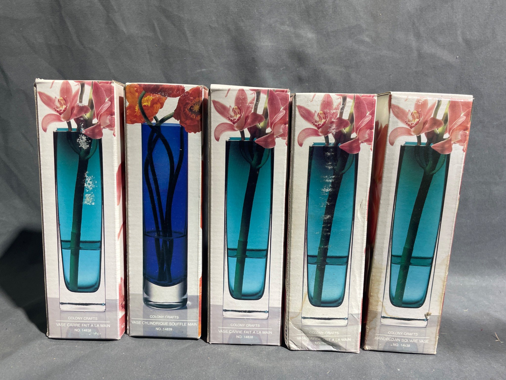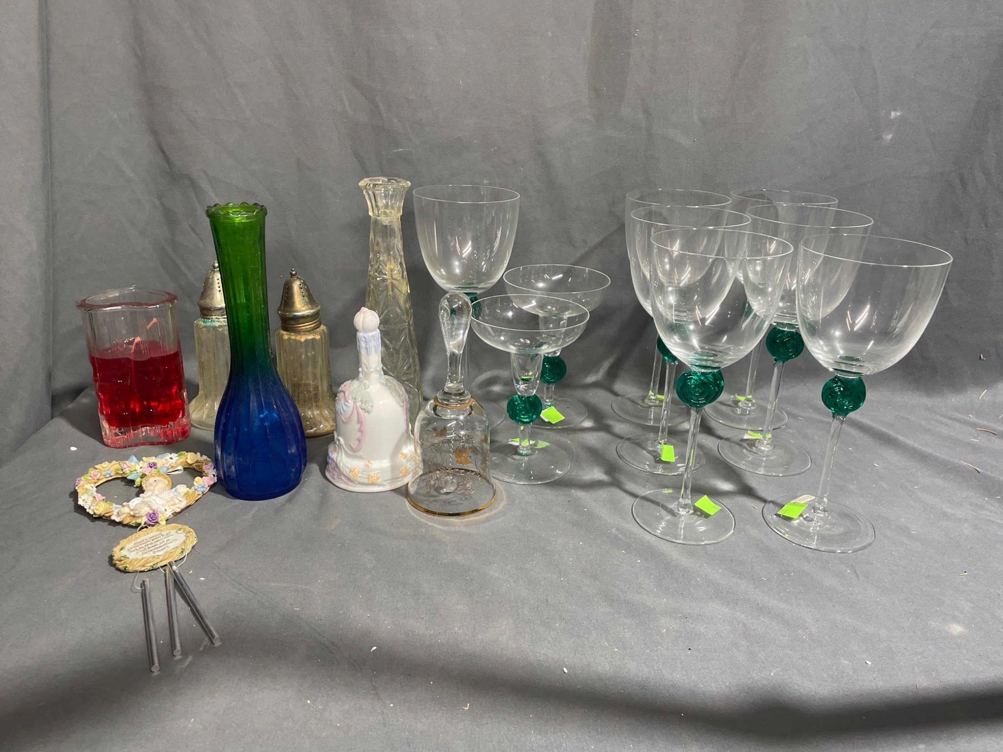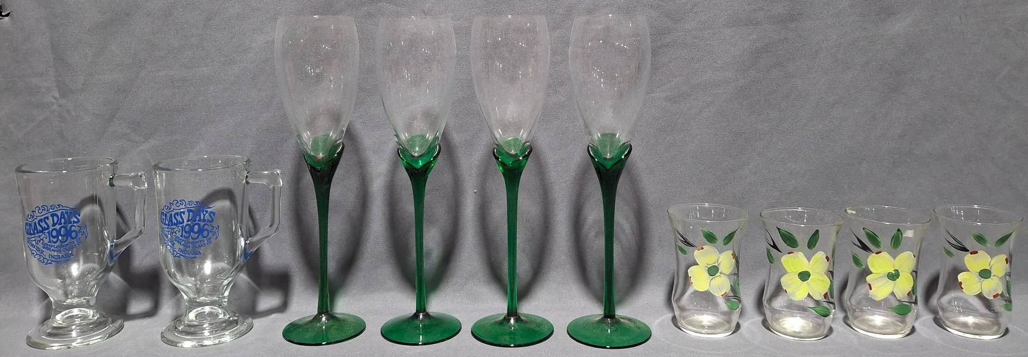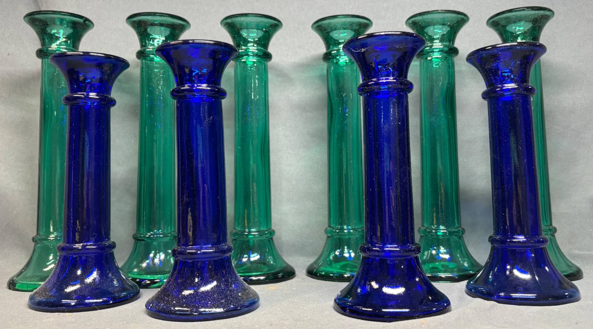6065 12 Blue Stemmed Glasses with Green Bases by Colony, Made in Slovakia 2.5”x8”