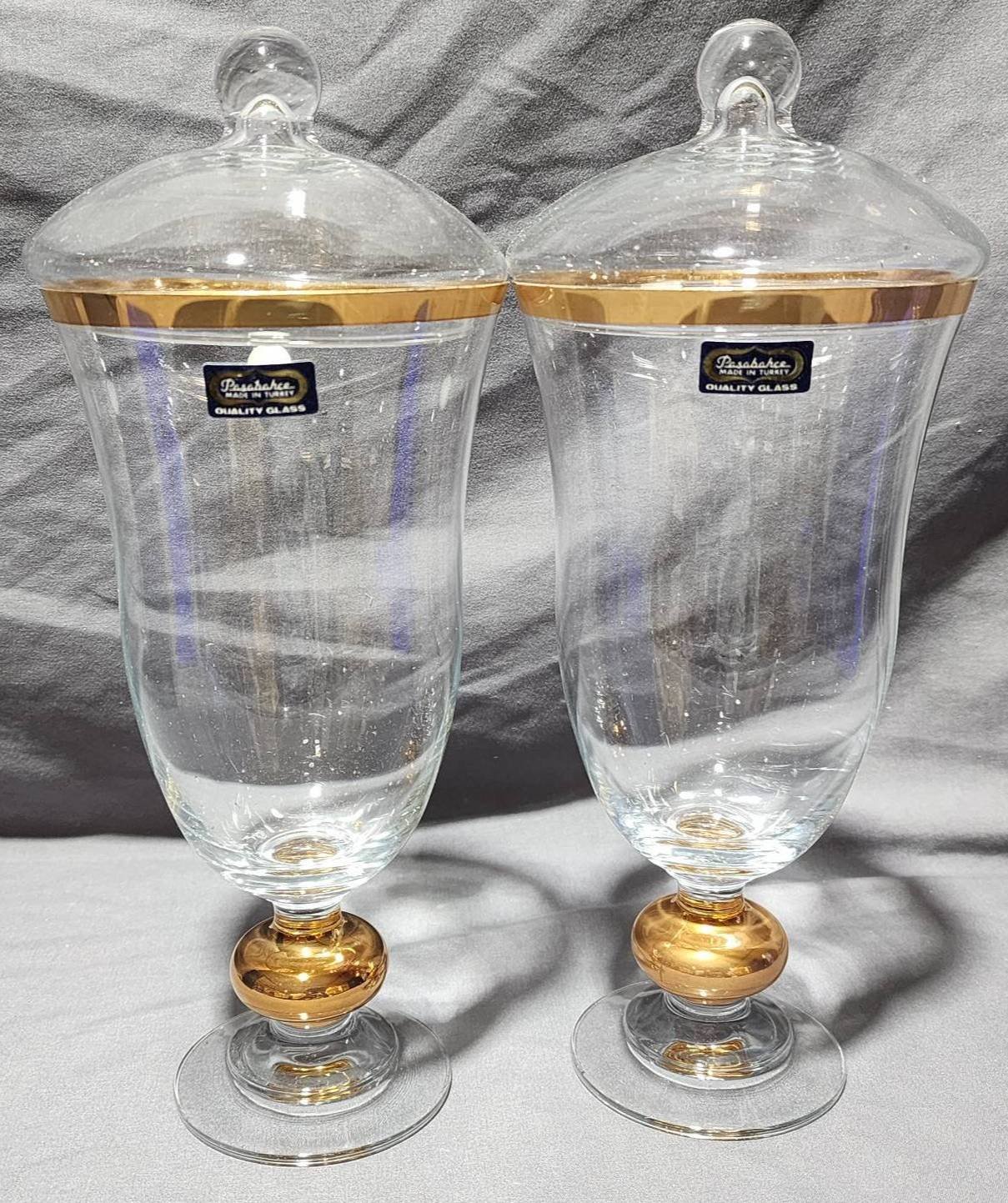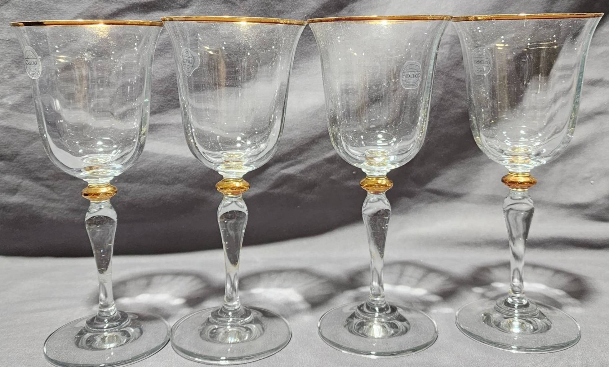 6092 8 Tiara Exclusive Crystal Glass Goblets with Gold Rim 3.5”x6.5”