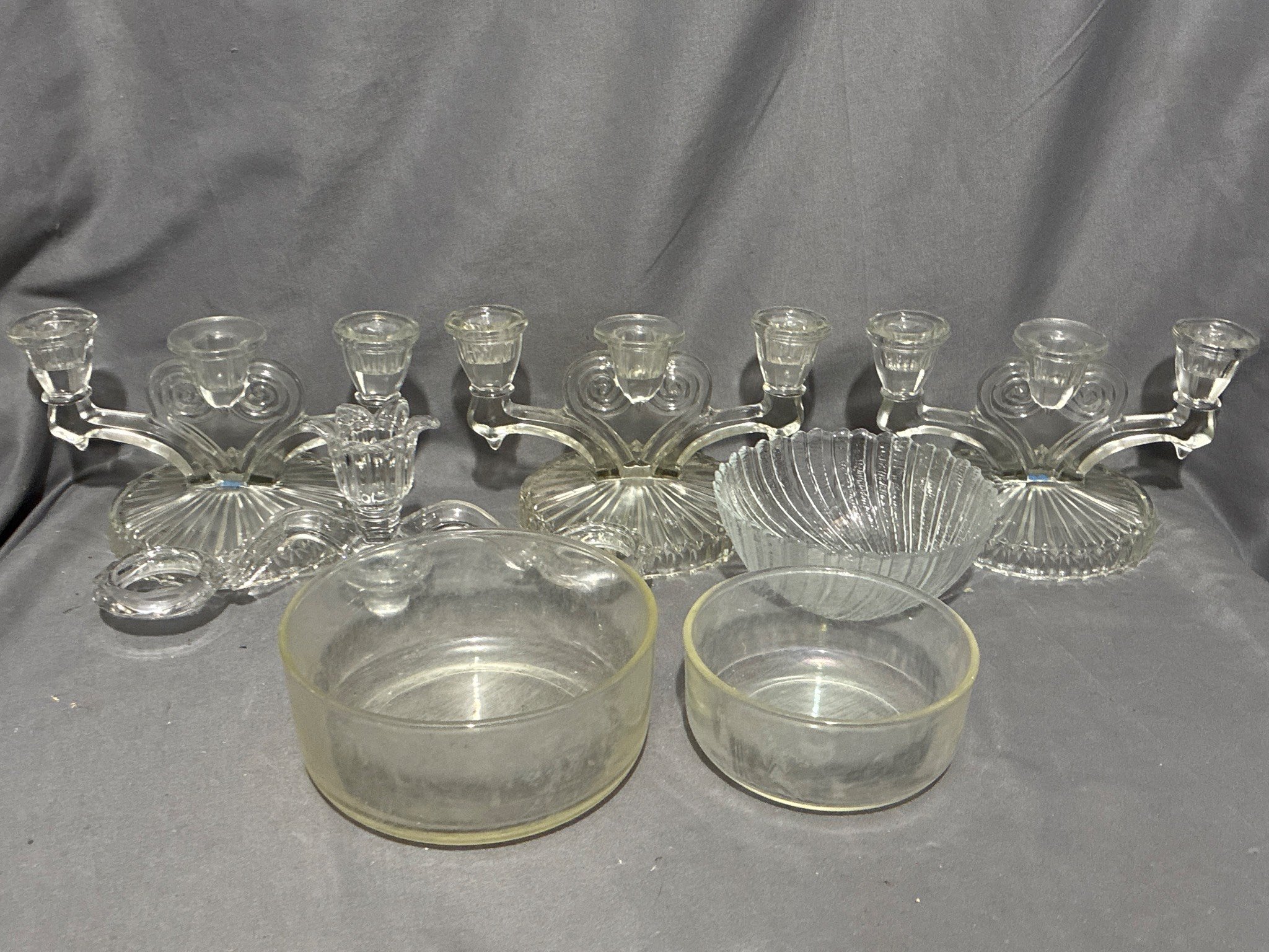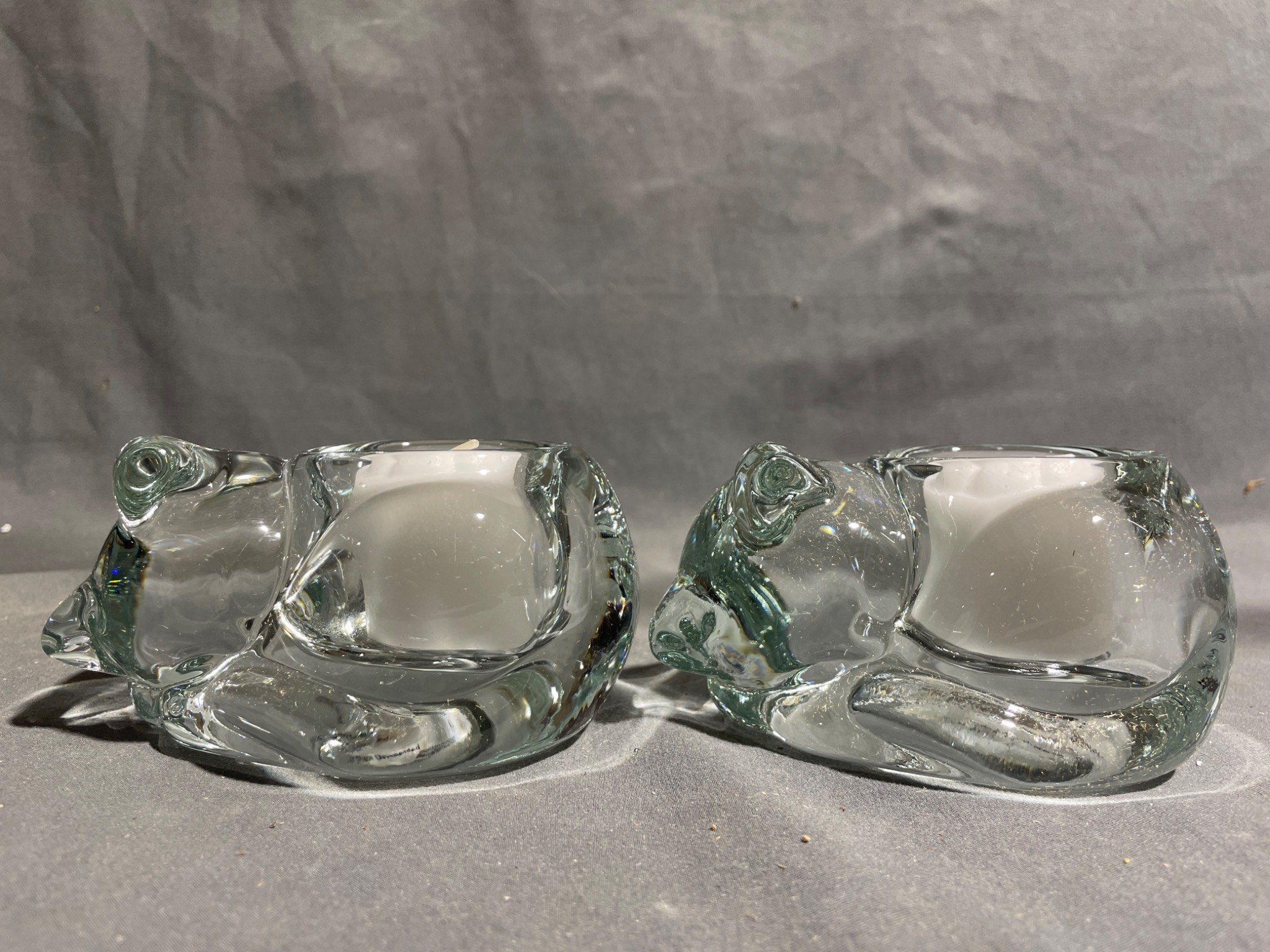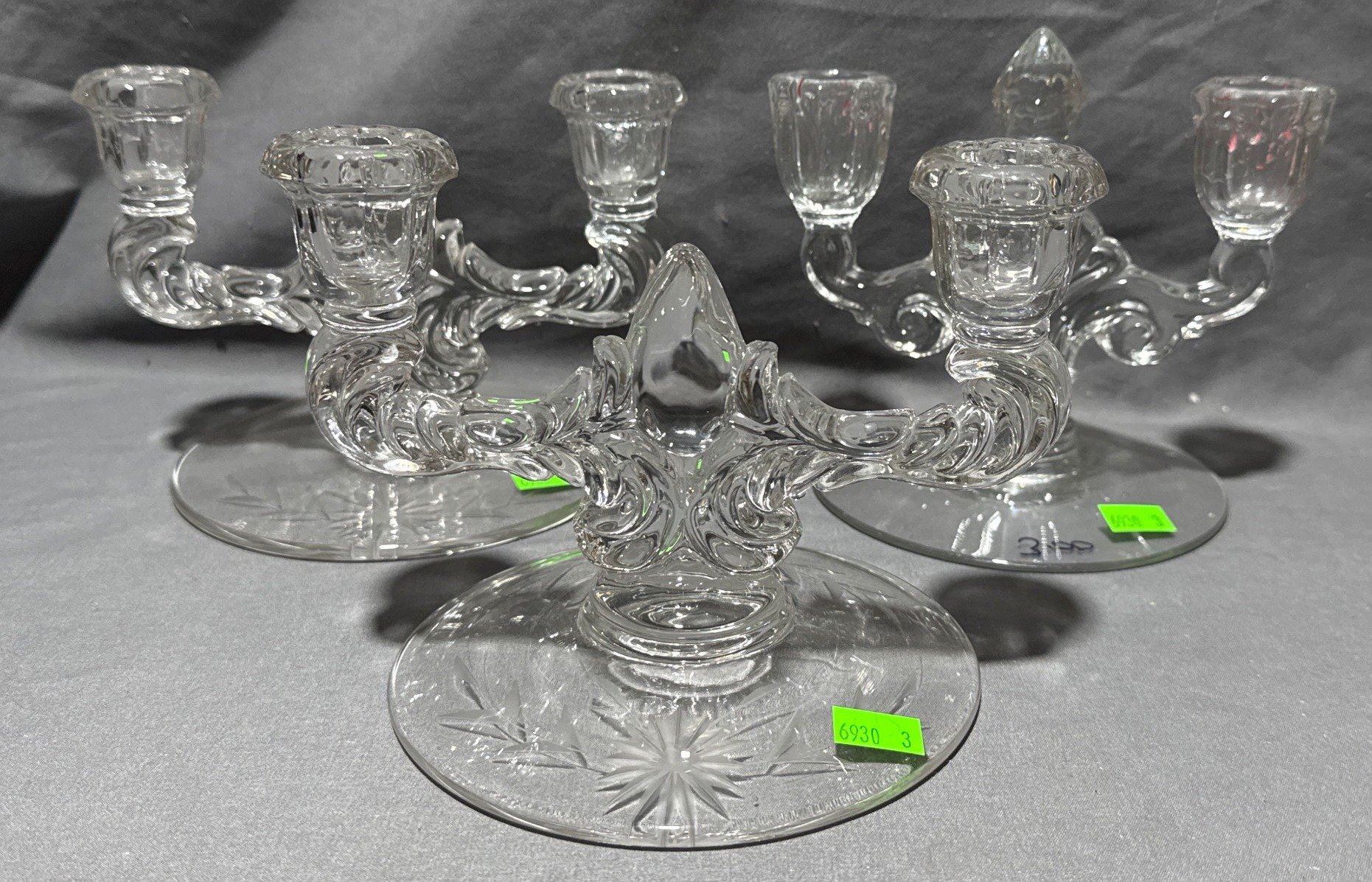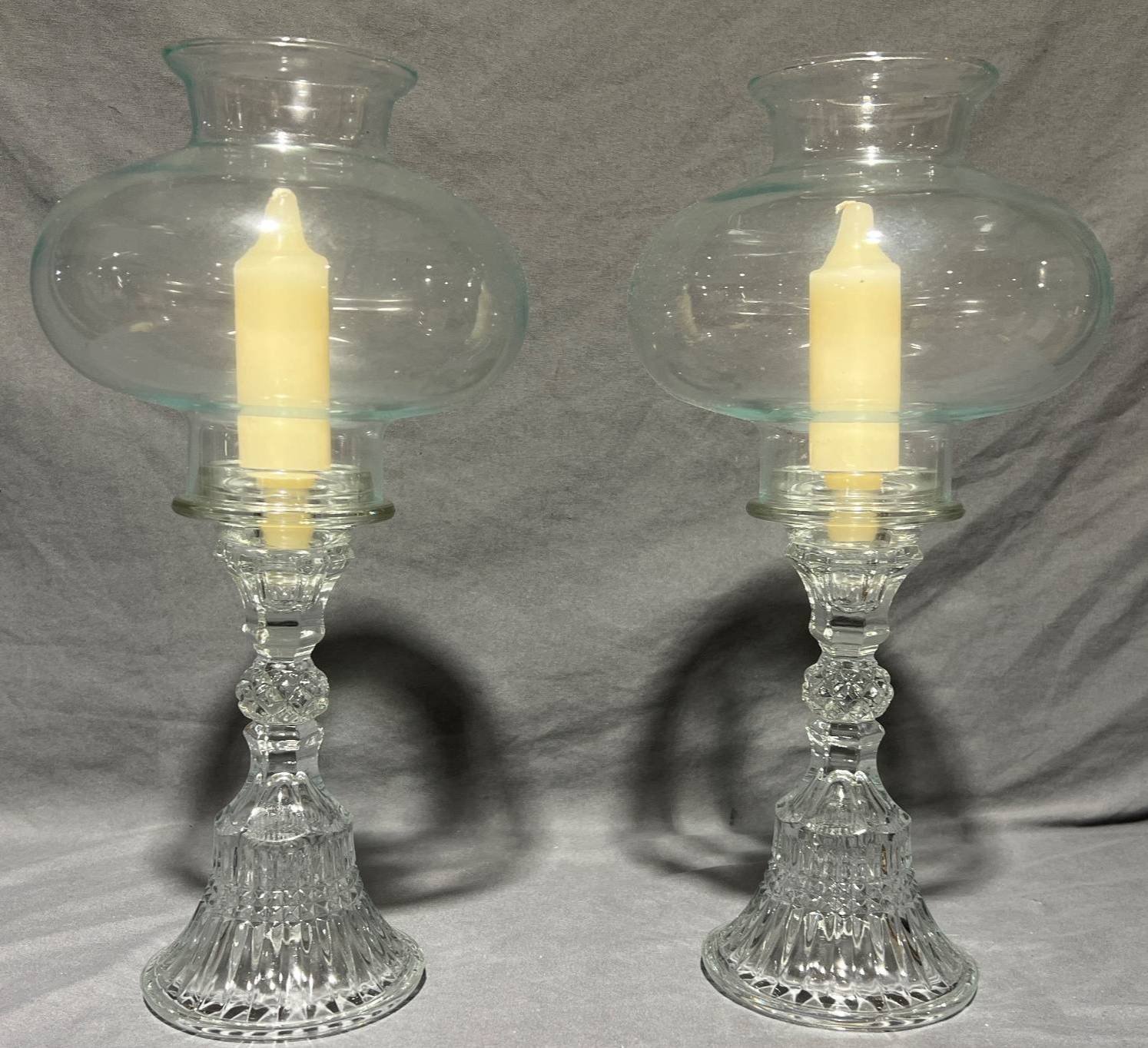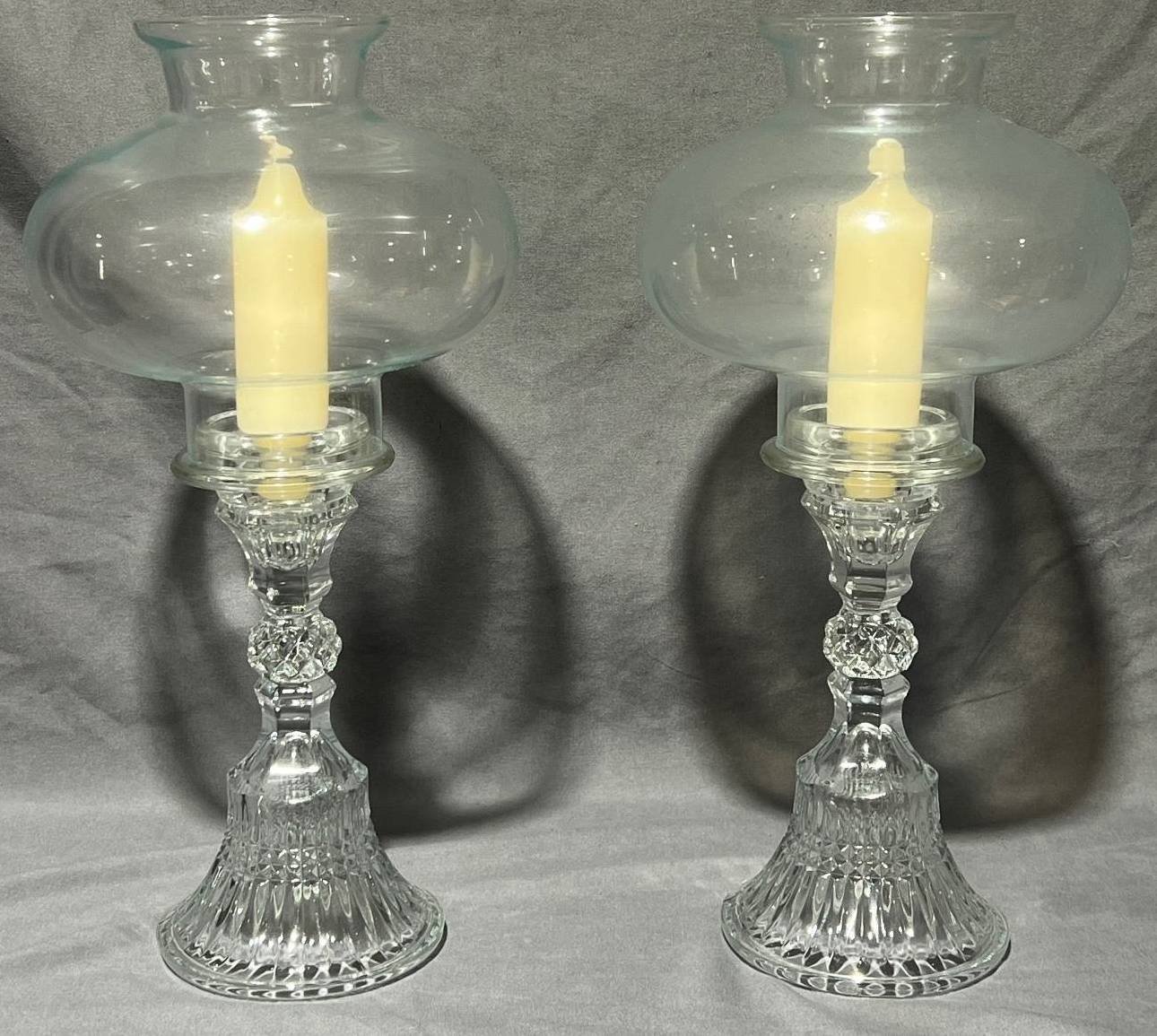 6091 Tiara Clear Frosted Glass Candle Holders 4.5”x7”
