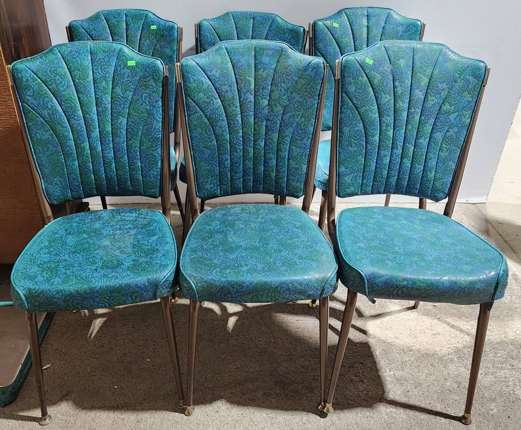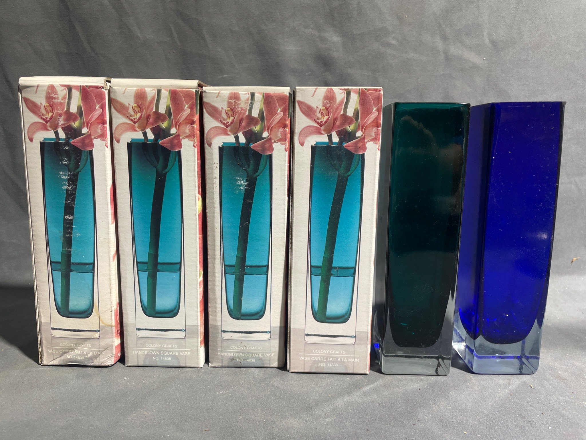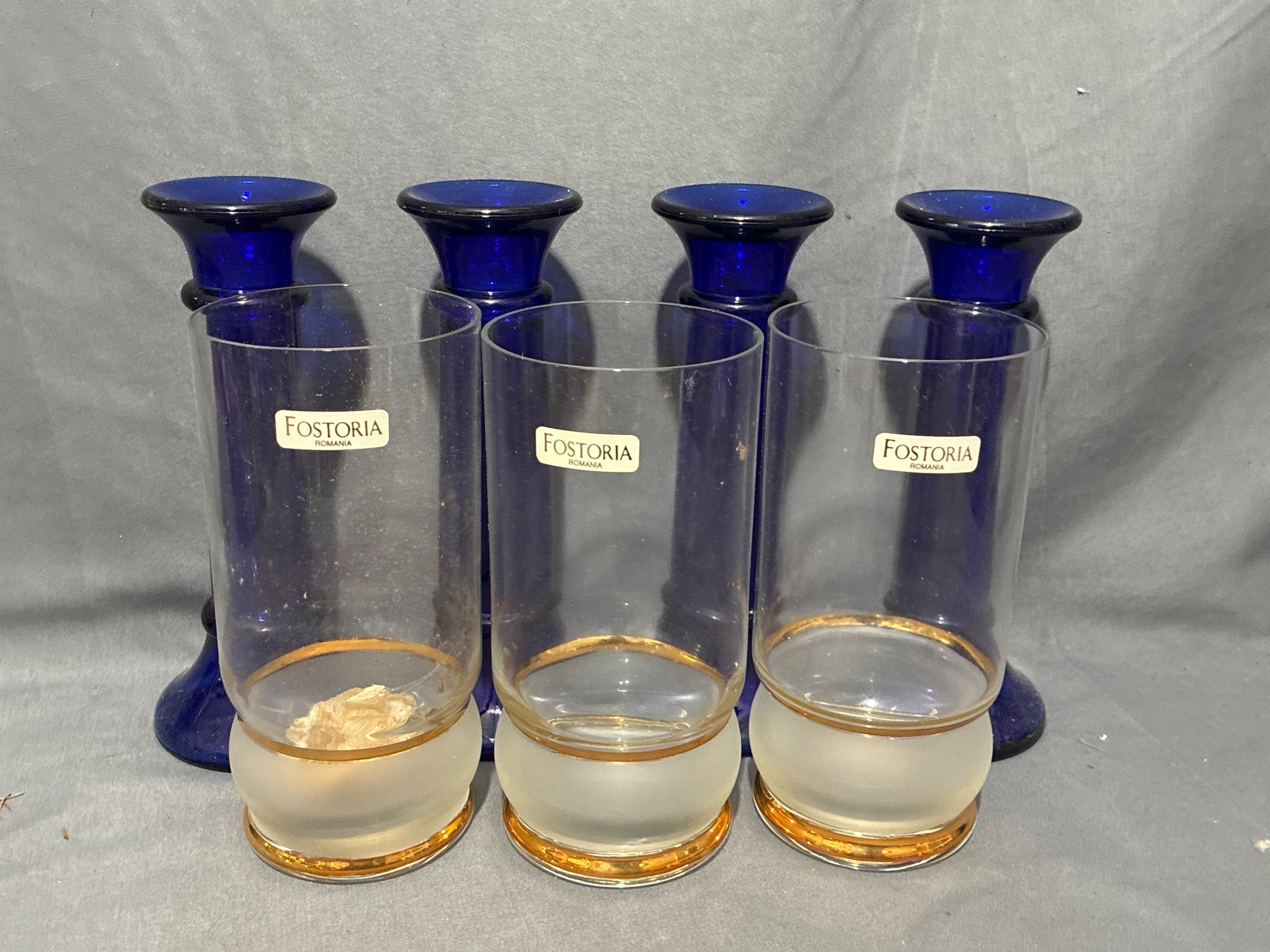 6063 8 Blue Stemmed Glasses with Green Bases by Colony, Made in Slovakia 3”x8”