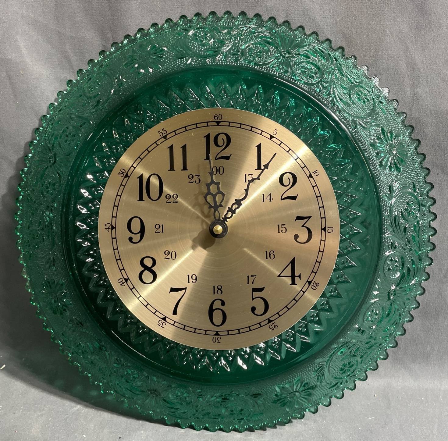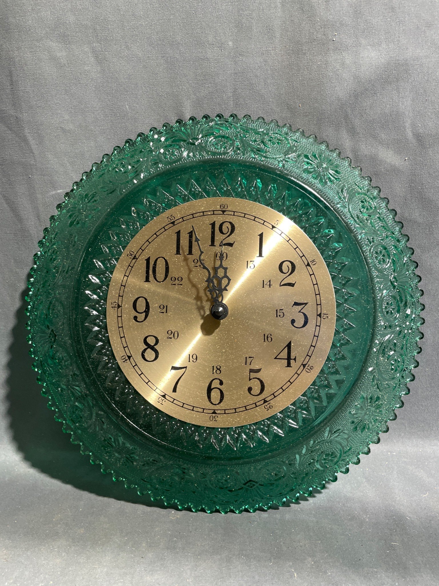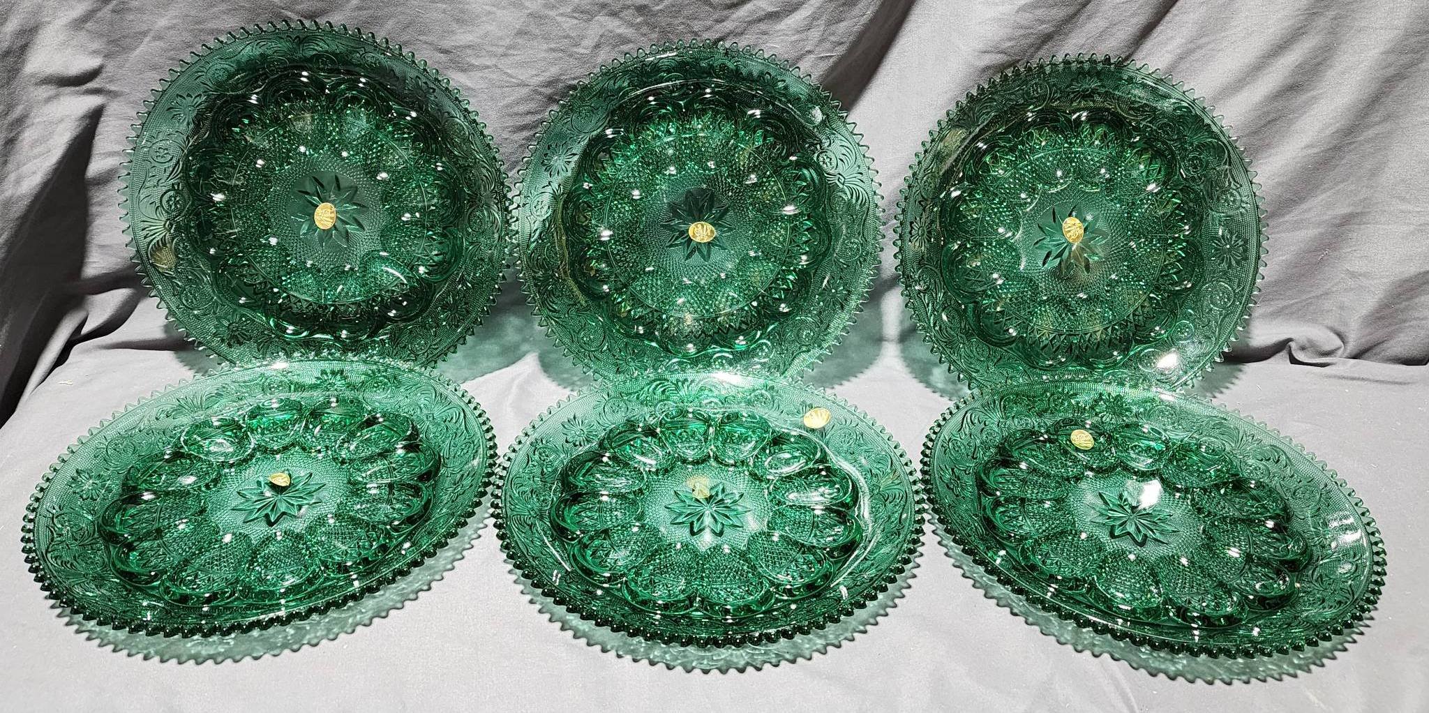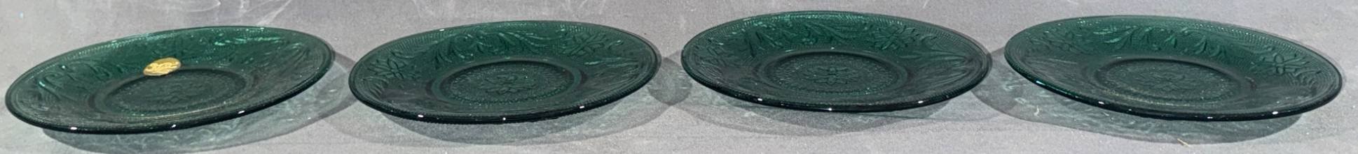 6086 12 Tiara Spruce Green Pressed Glass Teal Cups with Floral and Scrollwork Pattern, 4”x3”