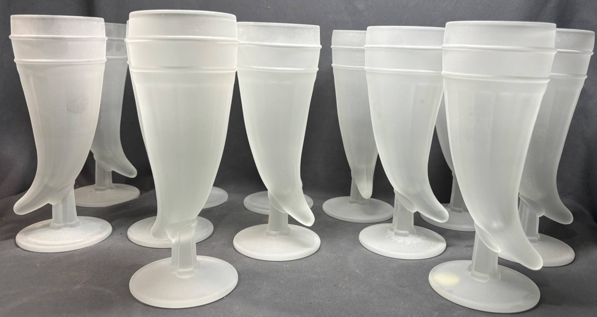 6077 8 Tiara Hunter Horn Glass Beer Mugs 3.5”x5.5”