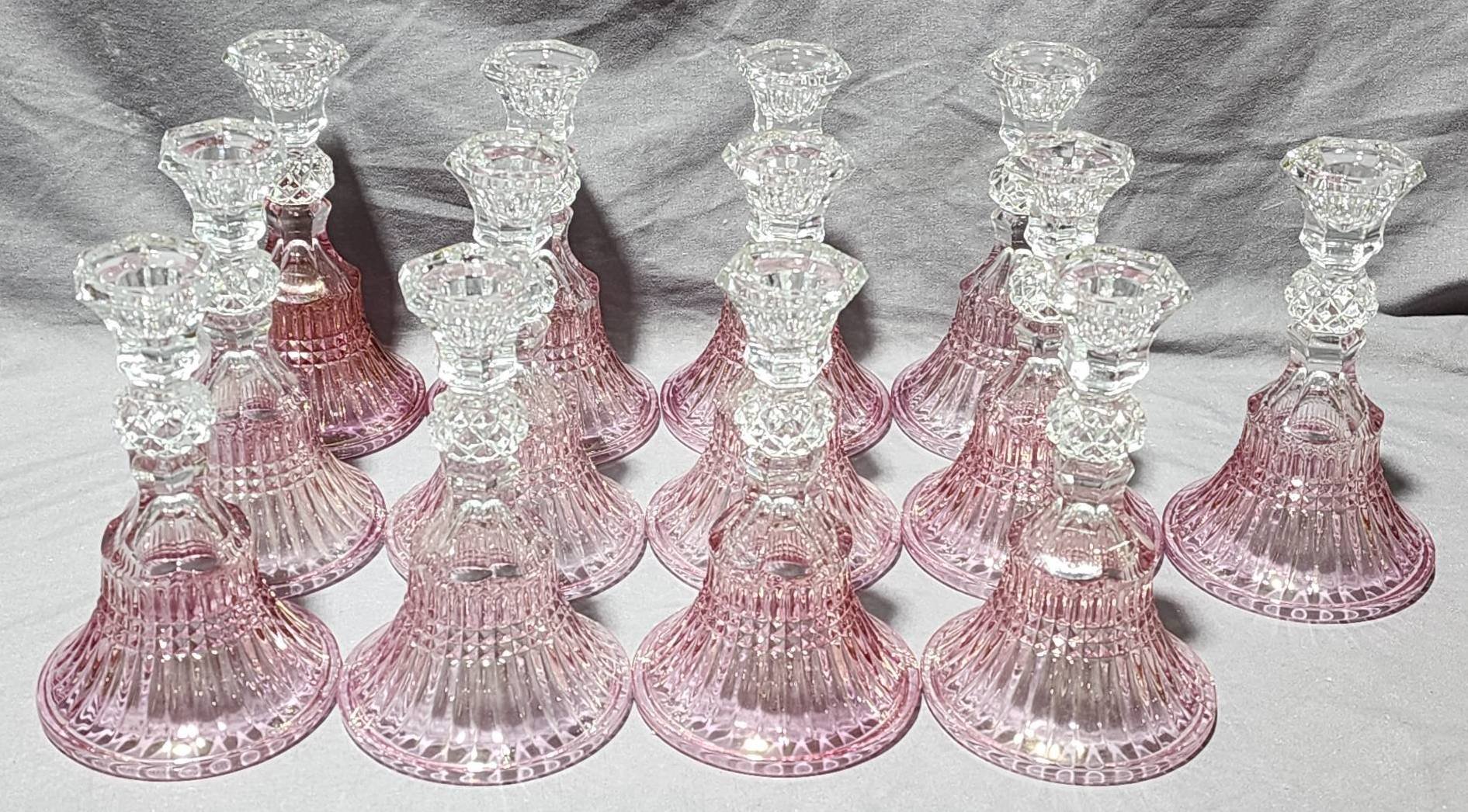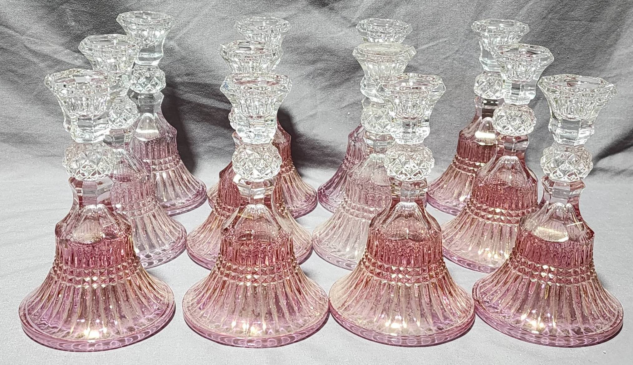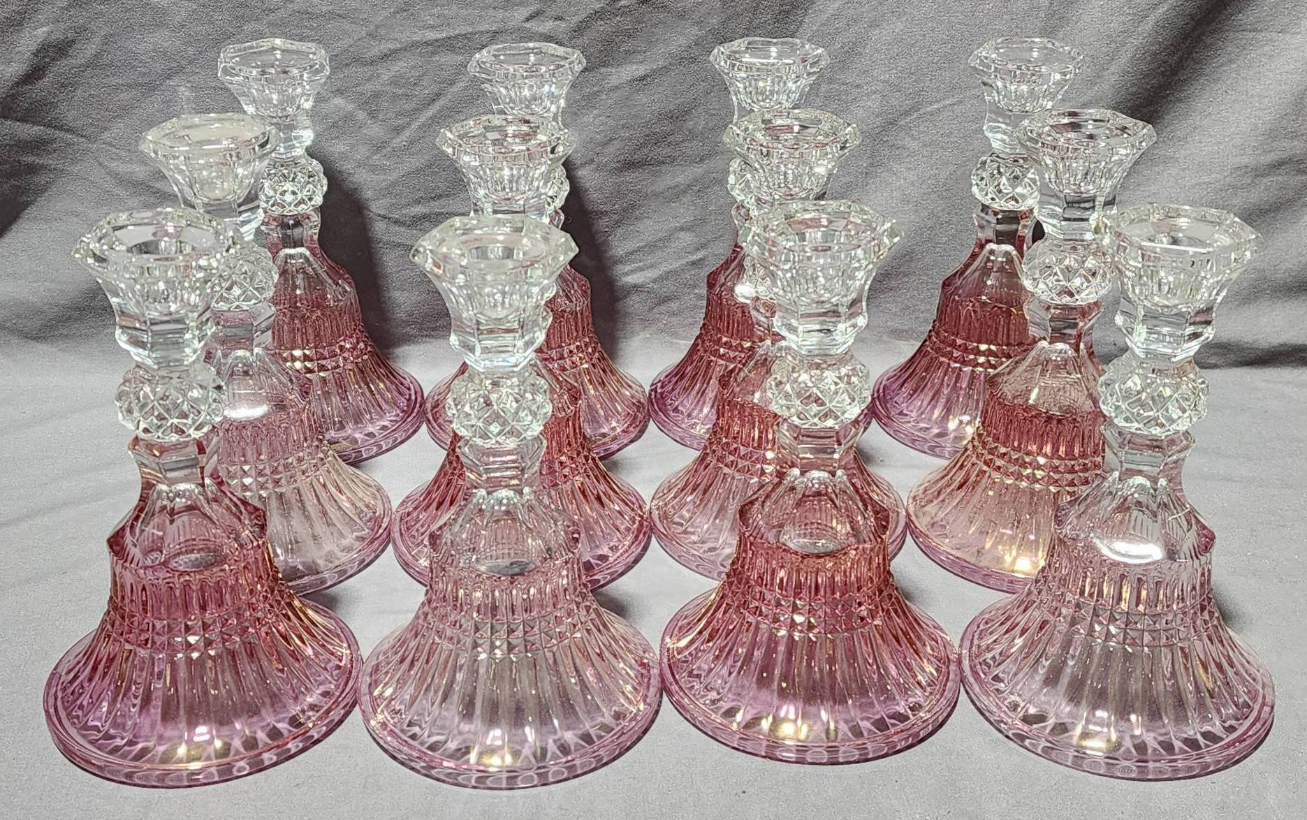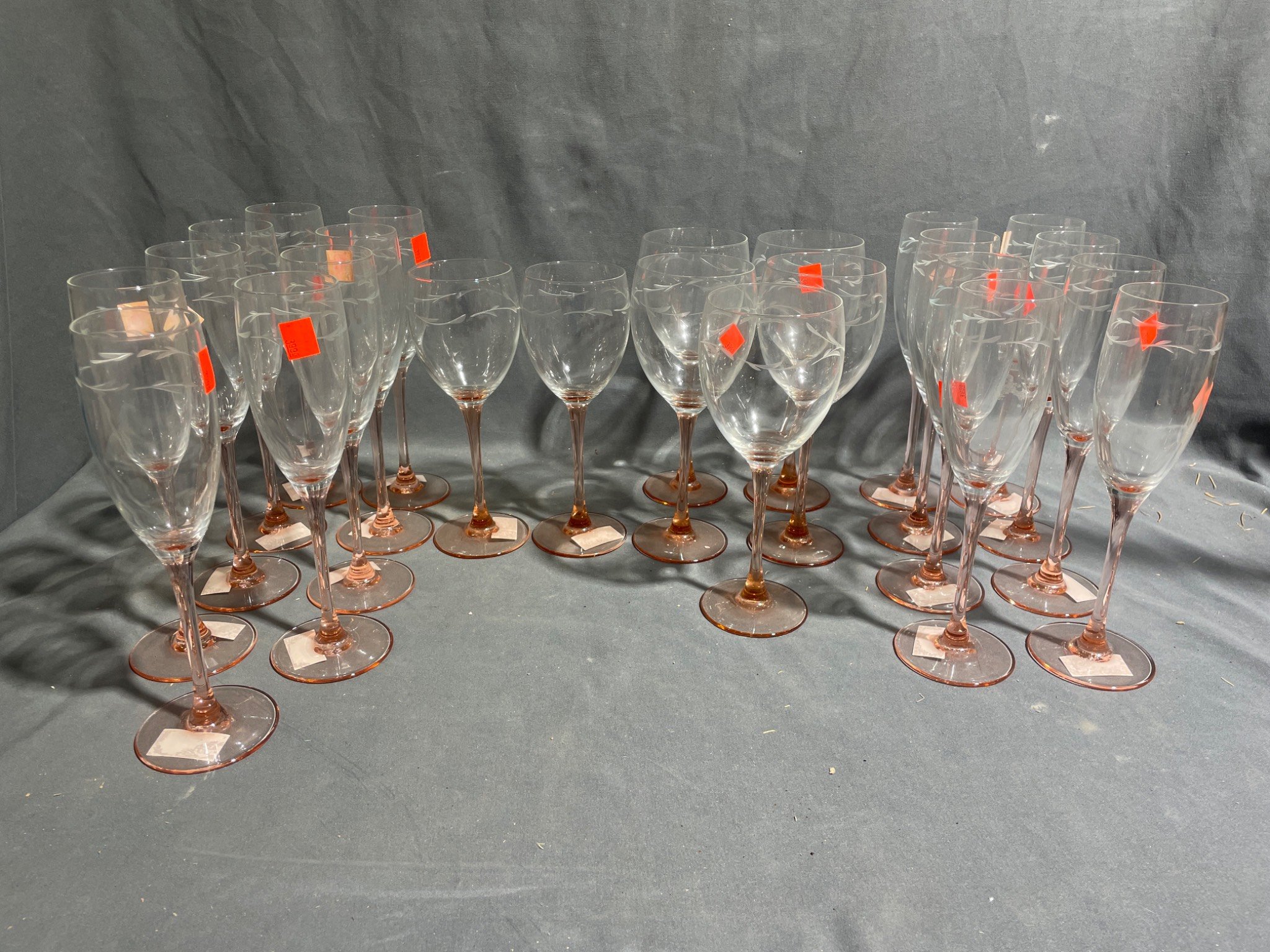 6066 12 Luminarc Cristal D’Arques Champagne Flutes with Etched Glass Pink Rose Stem 2”x9”