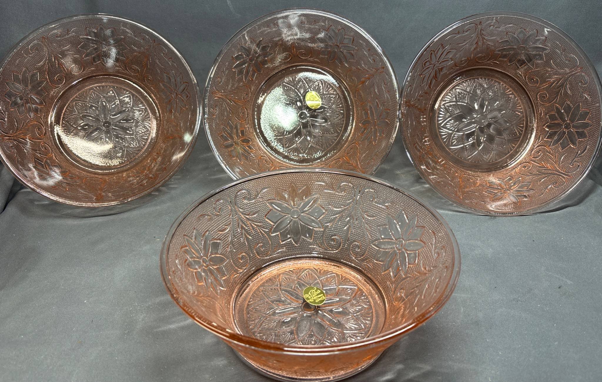 6070 Tiara Exclusive Glass Bowls With Embossed Floral Patterns 8”x4.5”