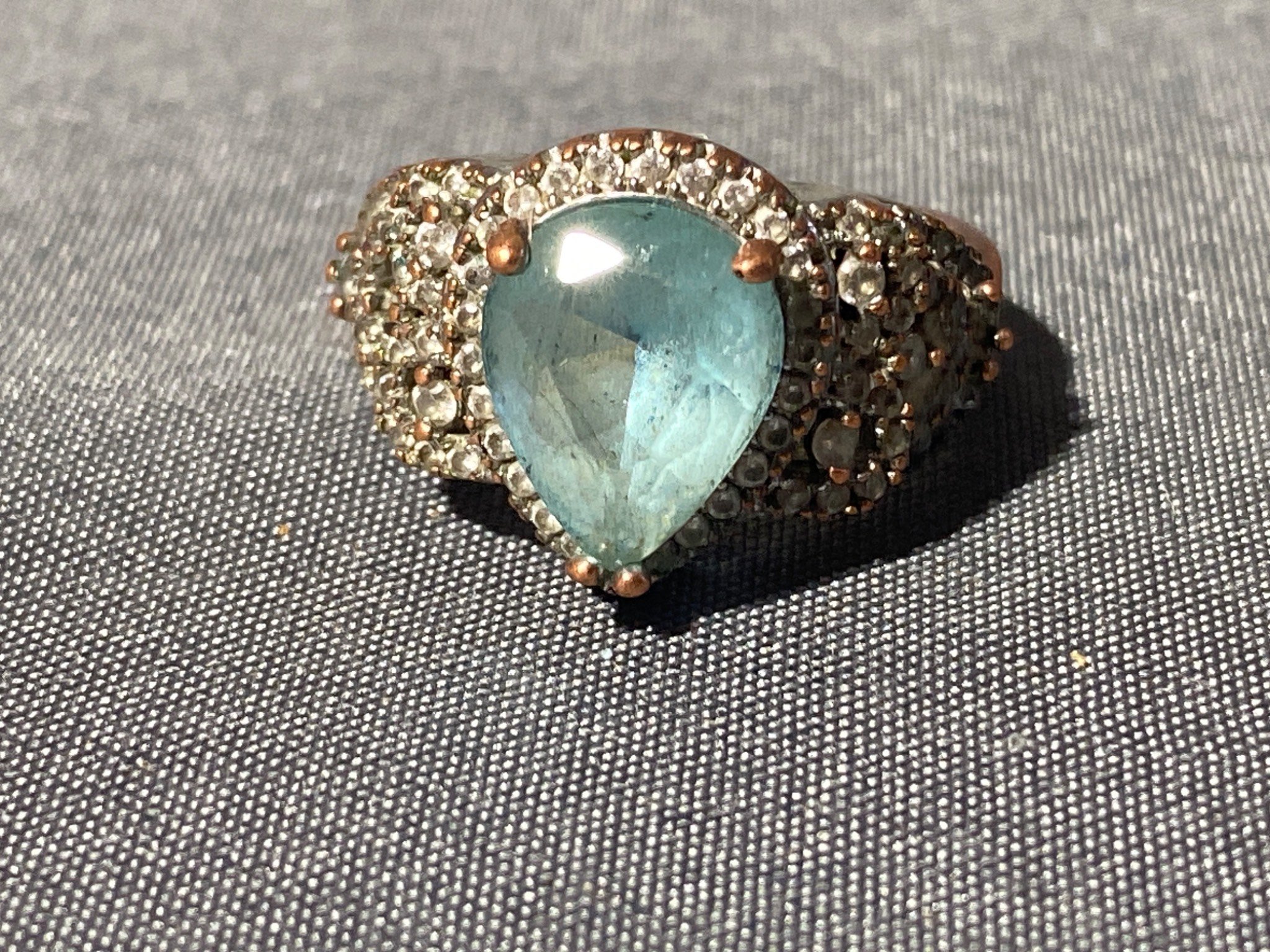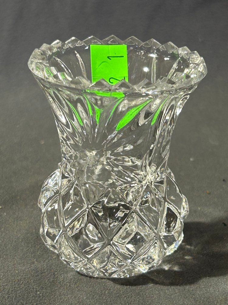 6060 Tiara Glass Marquis Aquamarine Art Deco Vase 6”x7”x7”