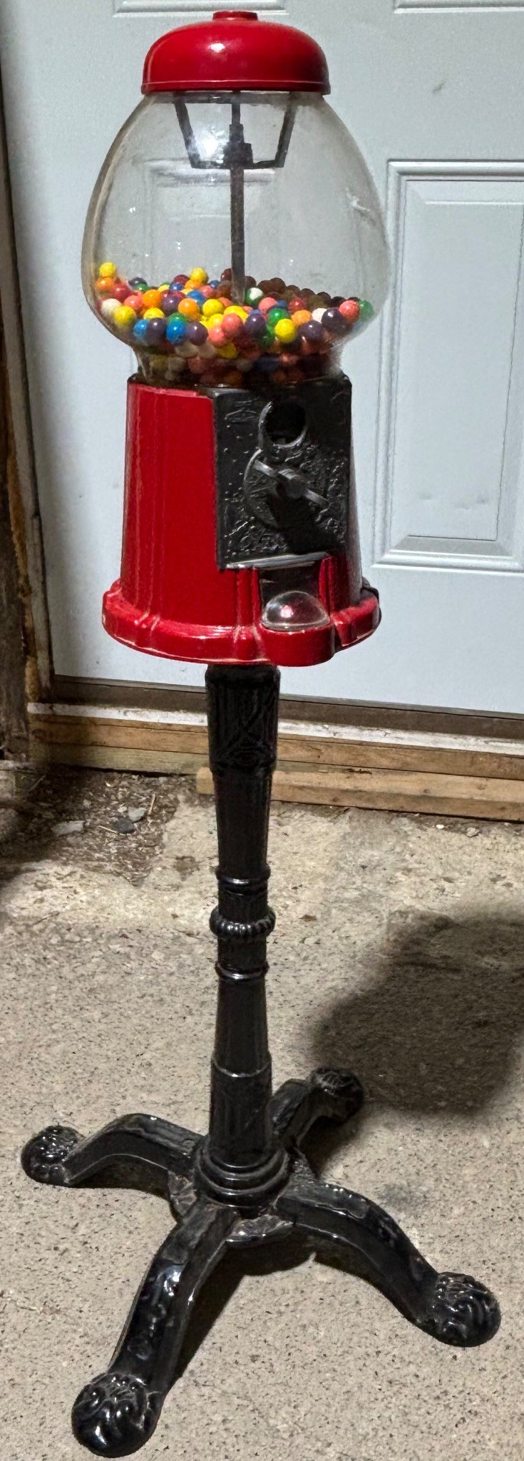 6035 2 – L.E. Smith Pressed Glass Fairy Lamps with Ruby Domed Shades 8” Tall