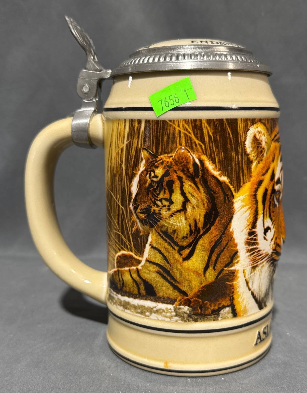 6081 4 Clear Glass Beer Mugs with Hunting Dog and Wildlife Scene Design 3”x5.5”