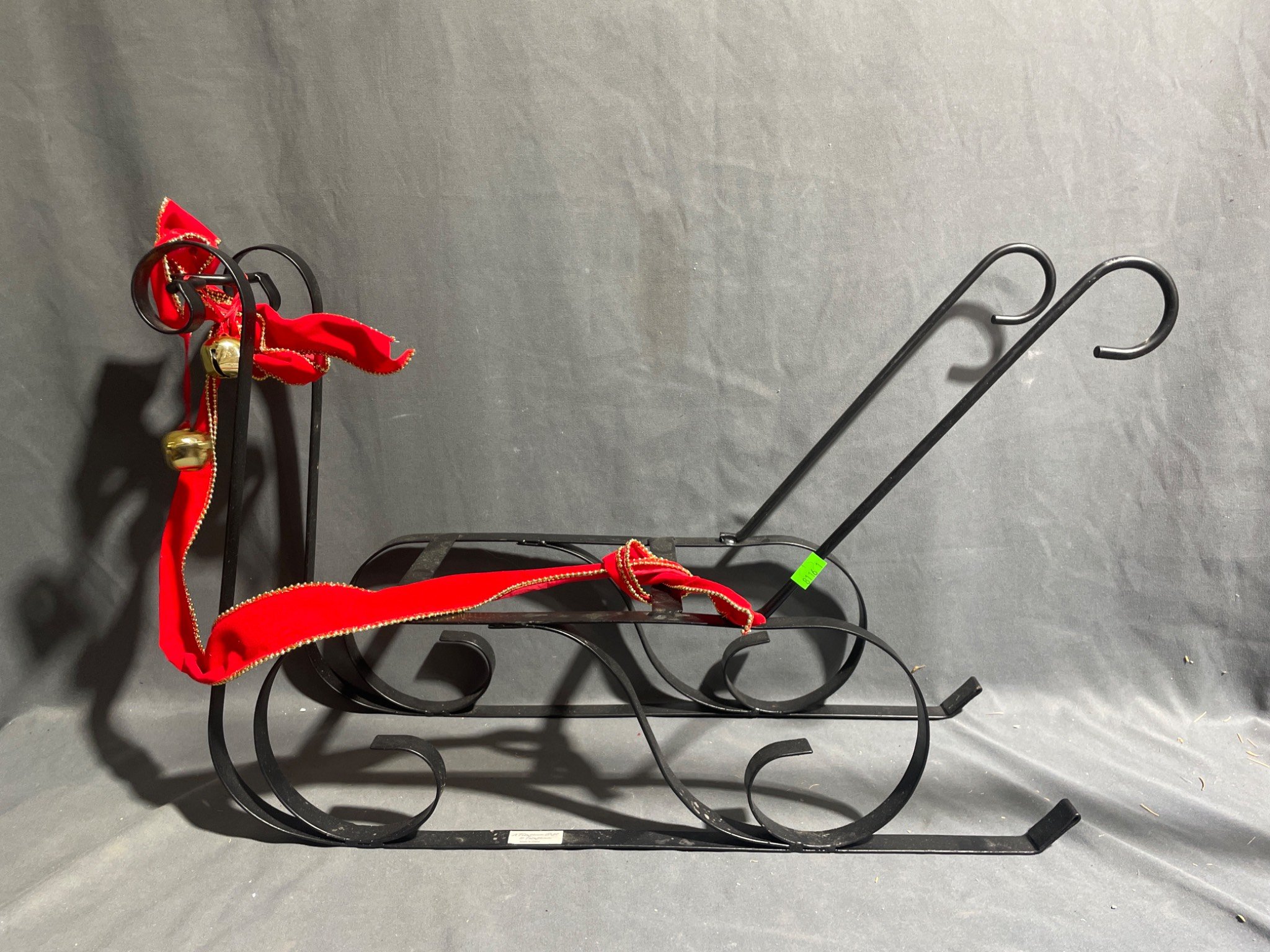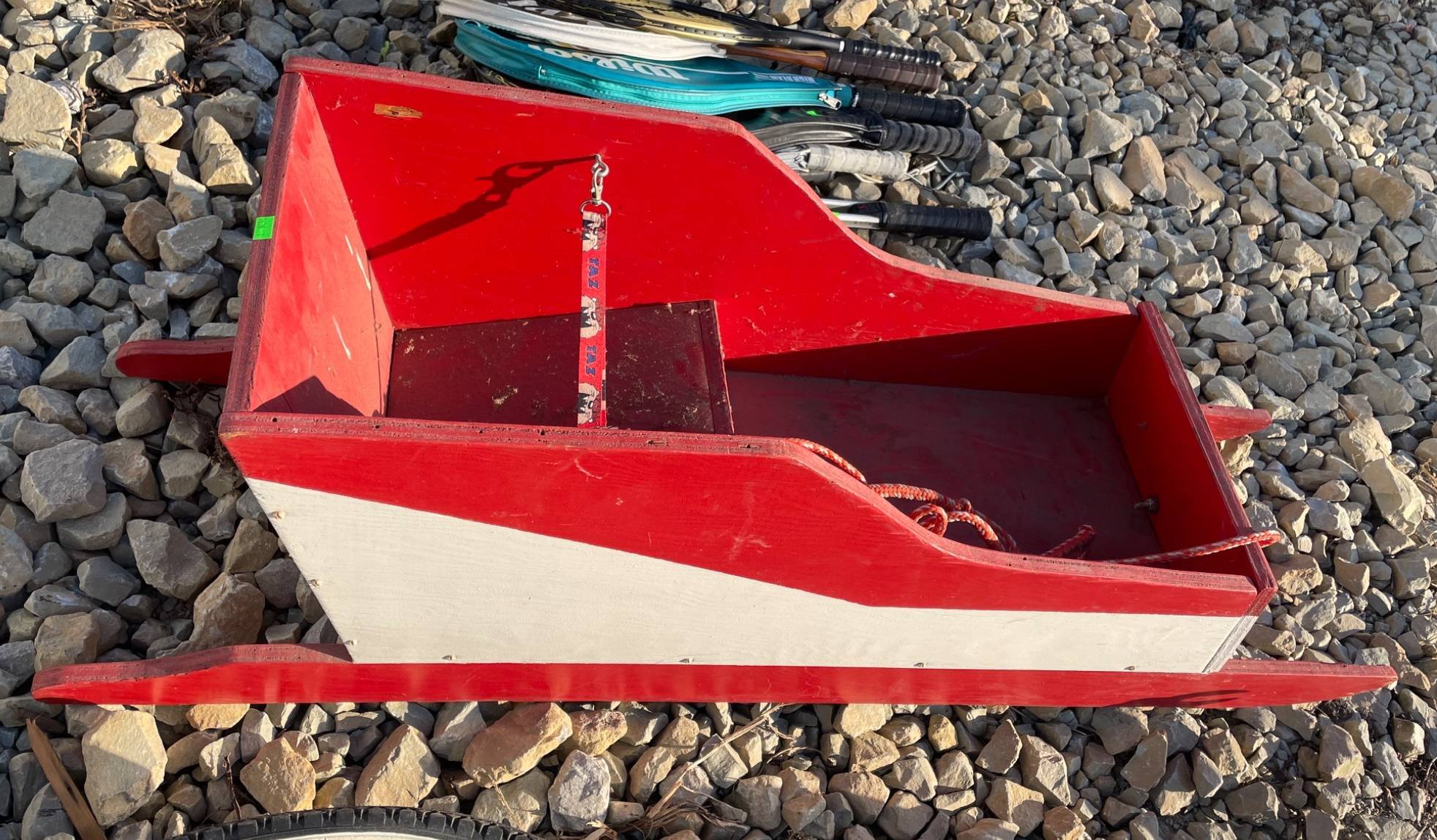 9636 Red Hand-Painted Sled with Rope Pull 13.5”x45”x15”