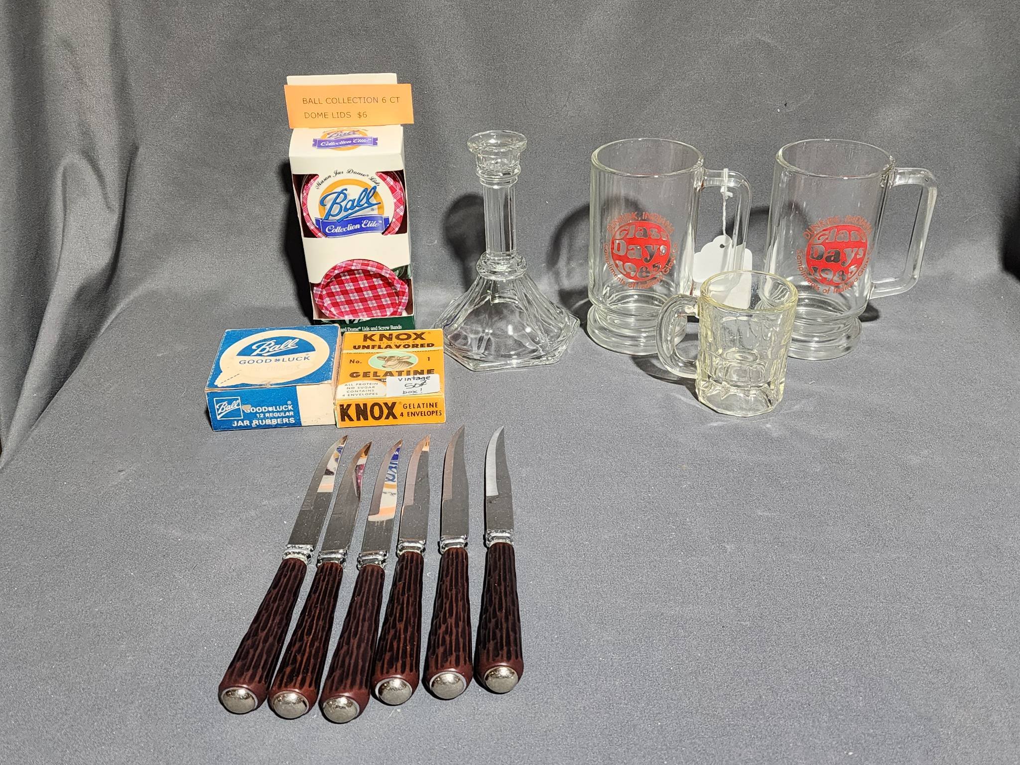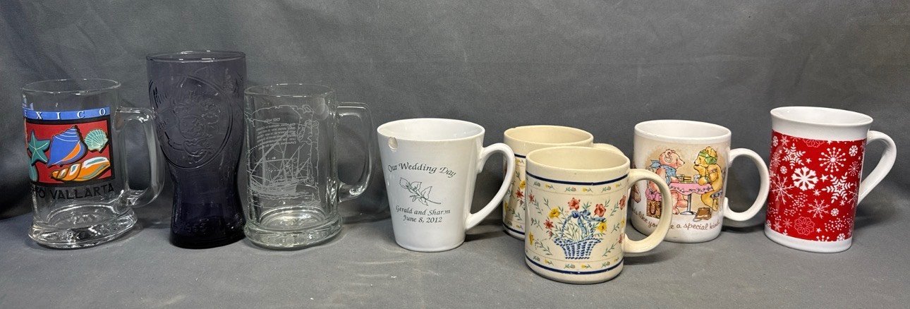 6087 8 Tiara Hunter Horn Glass Beer Mugs 3.5”x5.5”