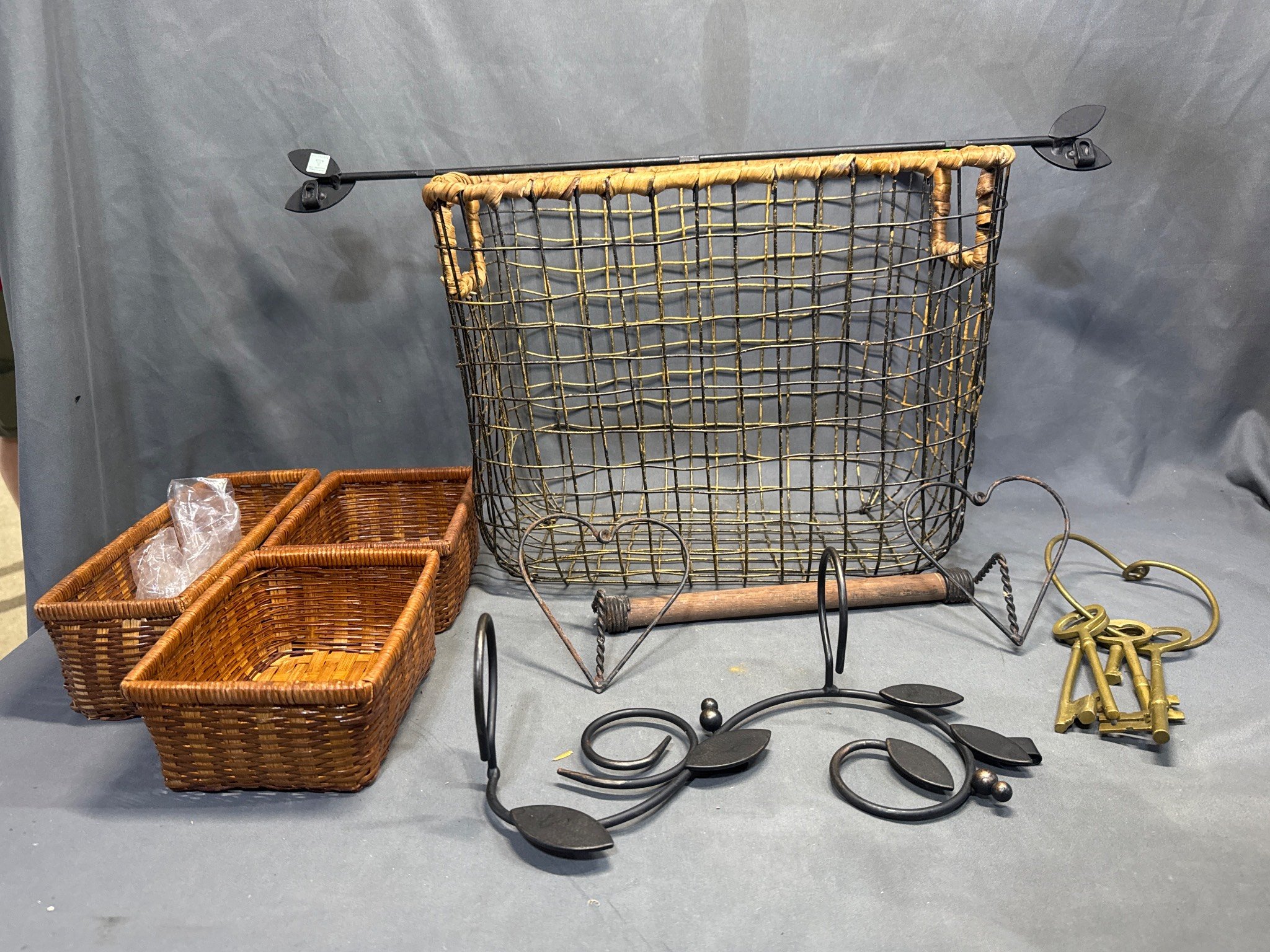 9610 Basket, Metal Heart-Shaped Basket, and Metal Tree Stand 8”-15”