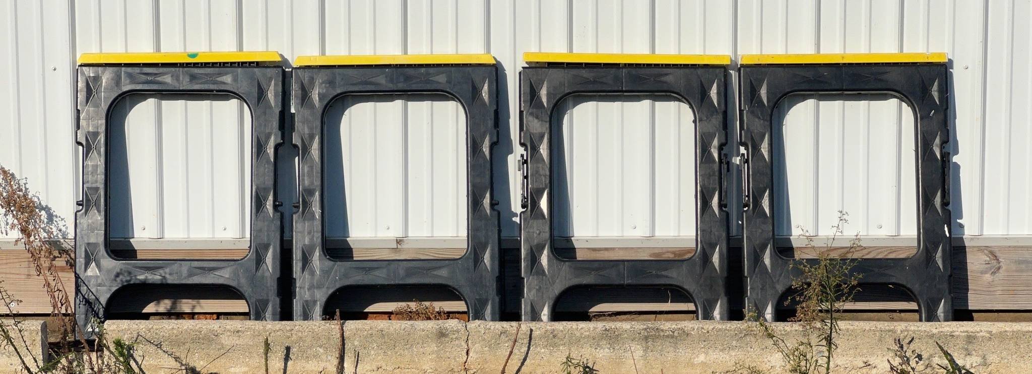 9516 4 Black Plastic Folding Sawhorses with Yellow Tops, 30” x 13”