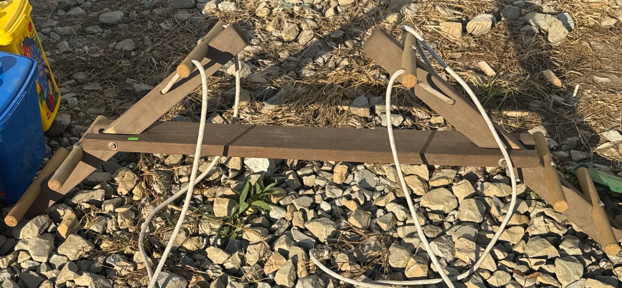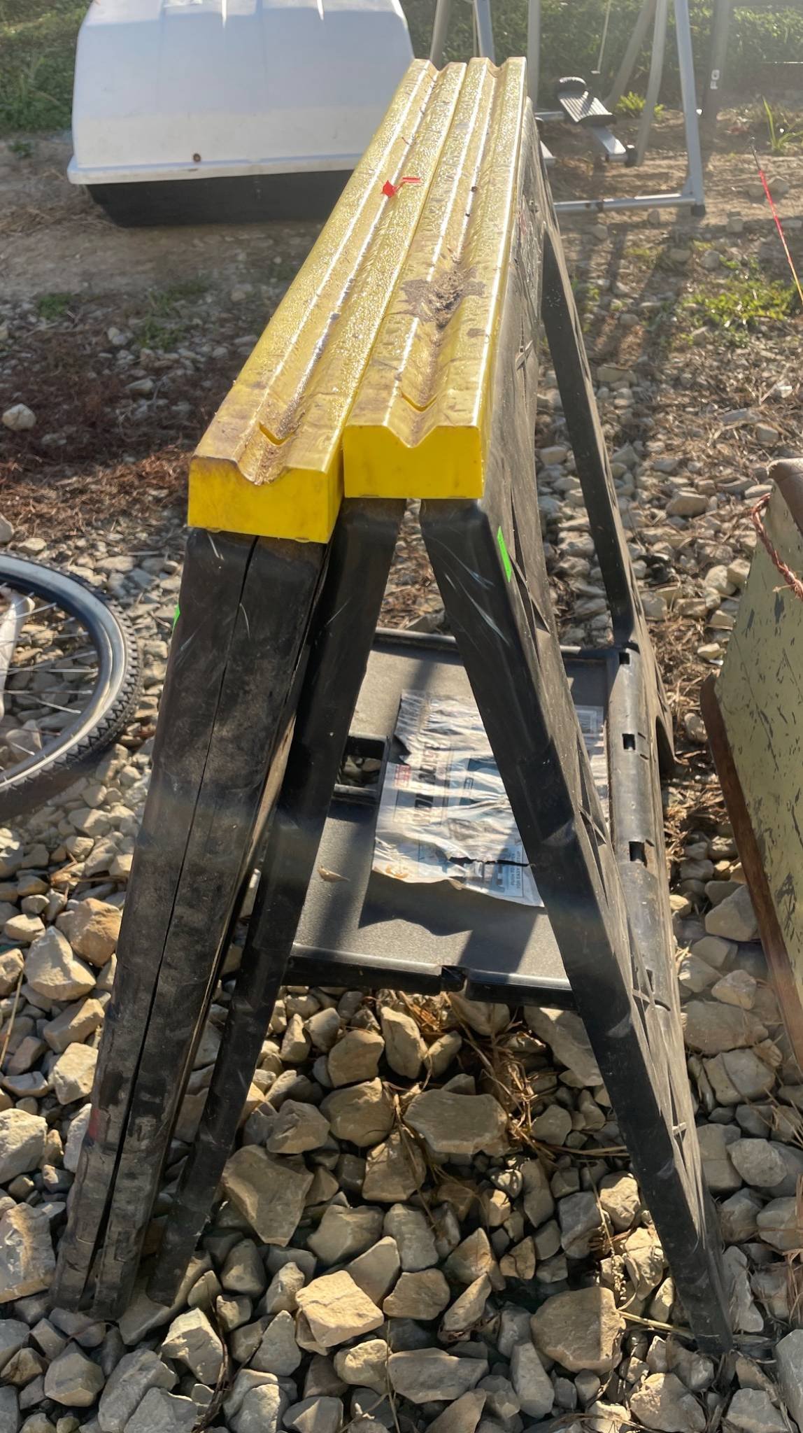9634 2 Yellow and Black Plastic Folding Sawhorses 29”x17”x30”