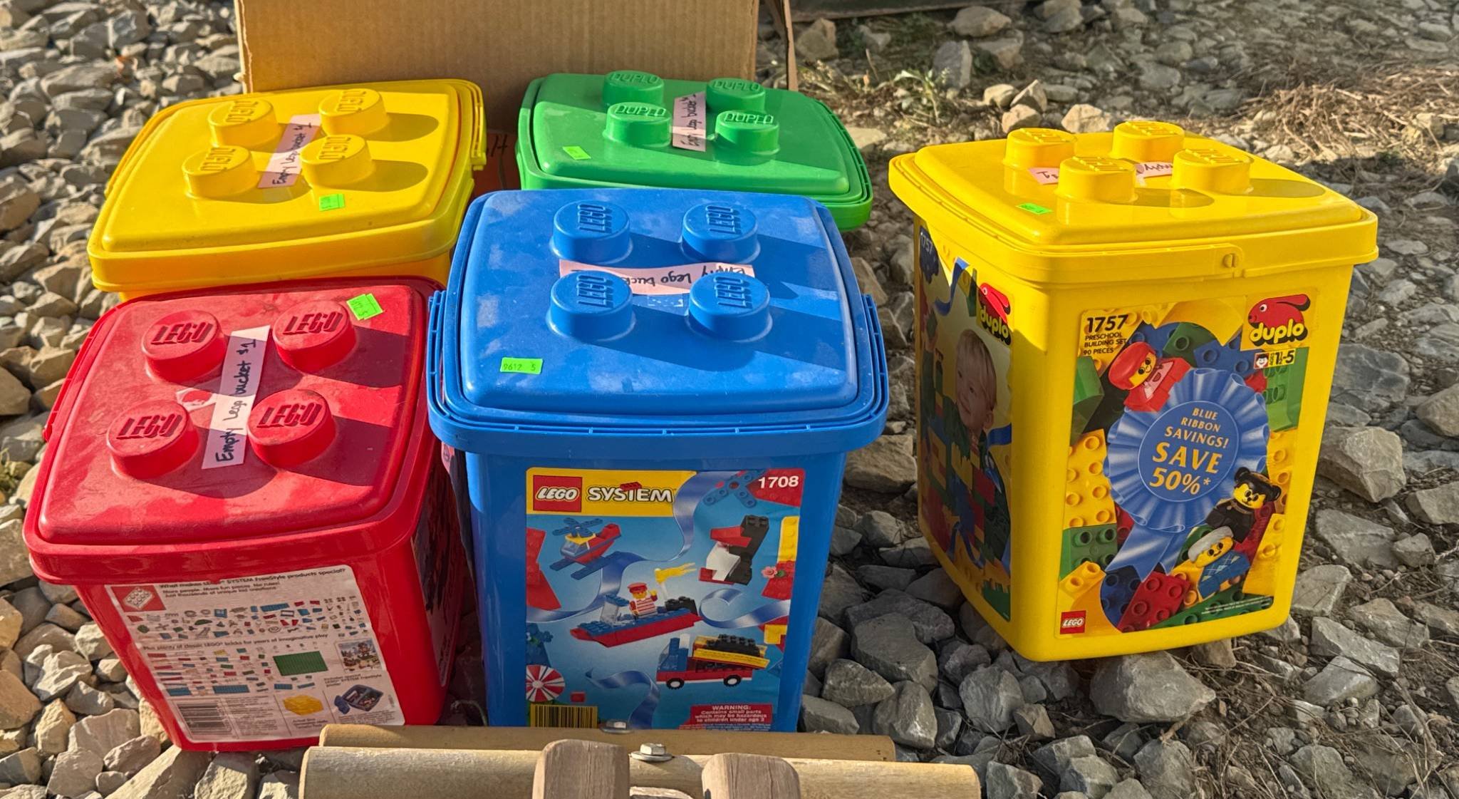 9612 5 Empty Lego, Duplo Storage Boxes in Assorted Colors