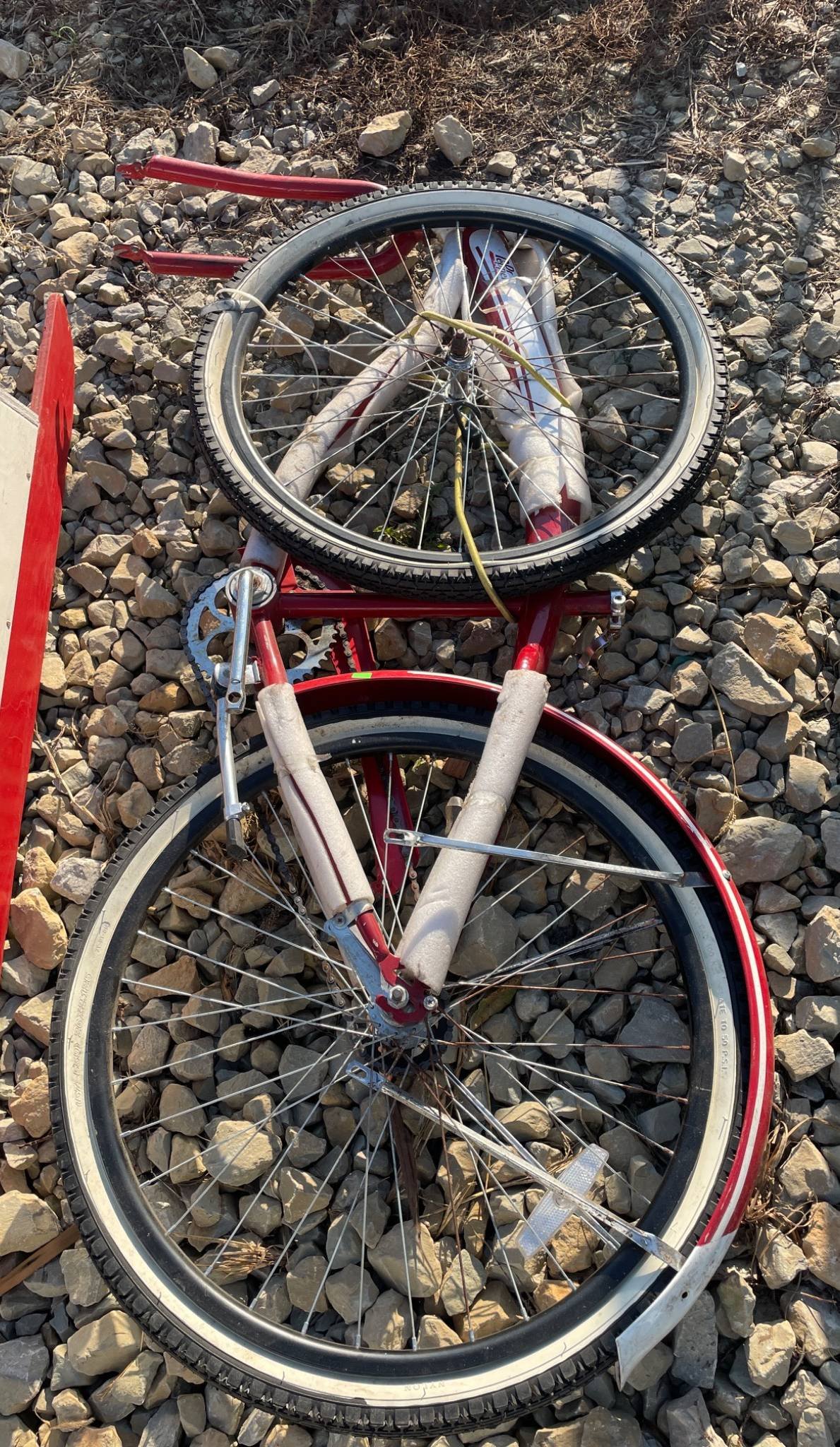 9635 Dr Pepper Red Bicycle Frame with Leperra Saddle and Wheels 25”