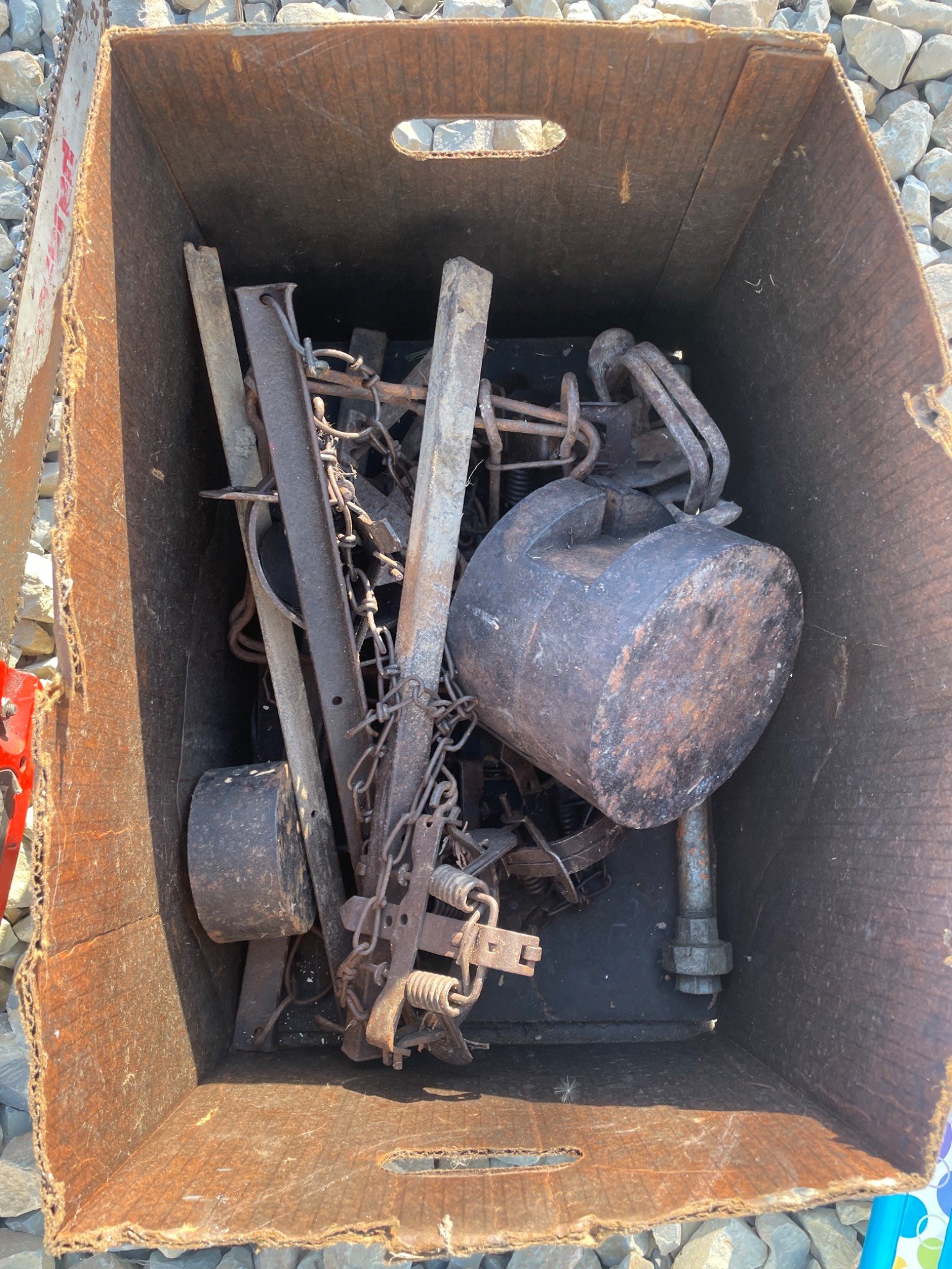 9640 Metal Parts and Tools Including Chains, Bolts, and Traps