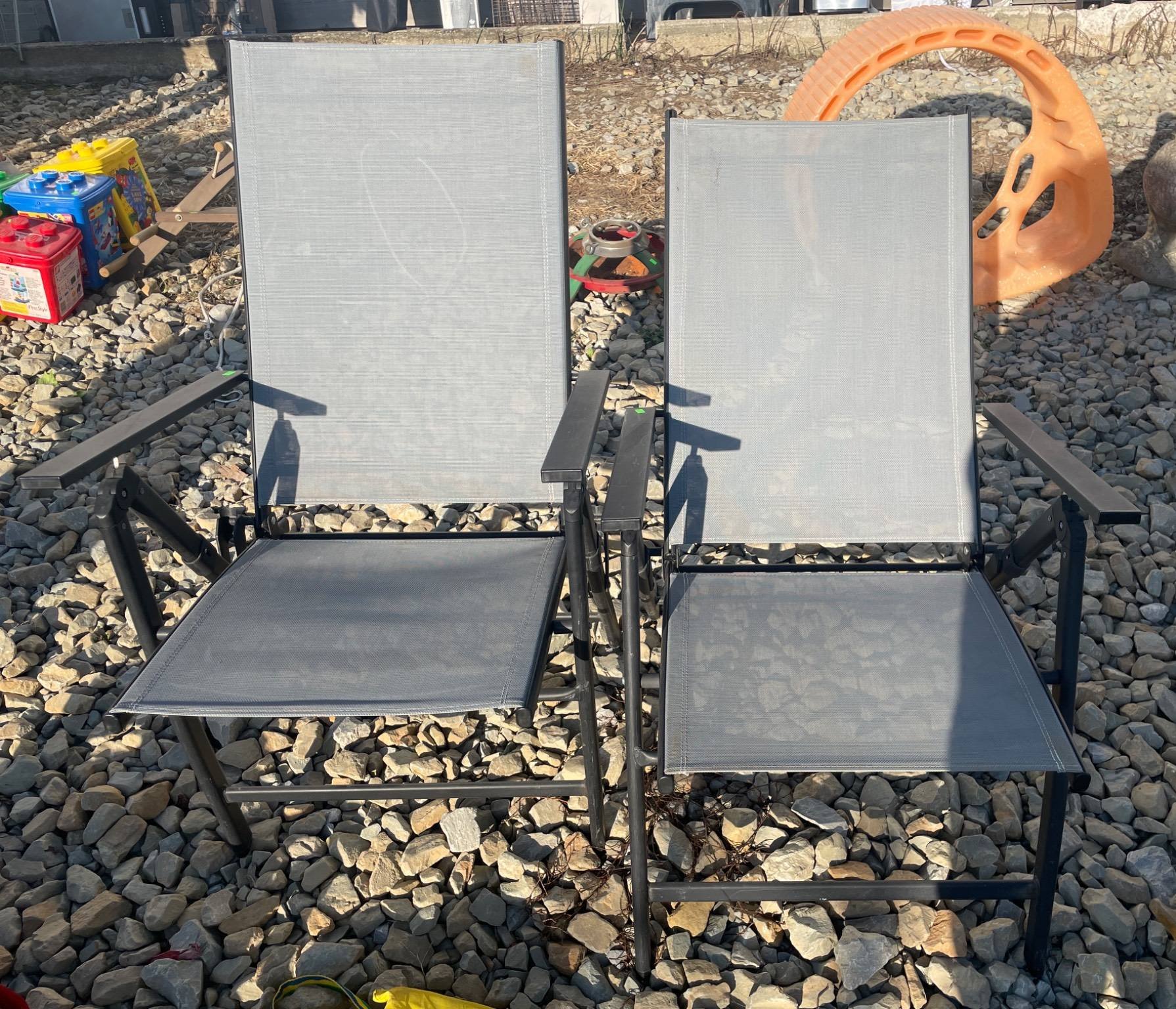 9643 2 Outdoor Metal-Framed Sling Chairs with Gray Mesh Seats 19”x20”x42”