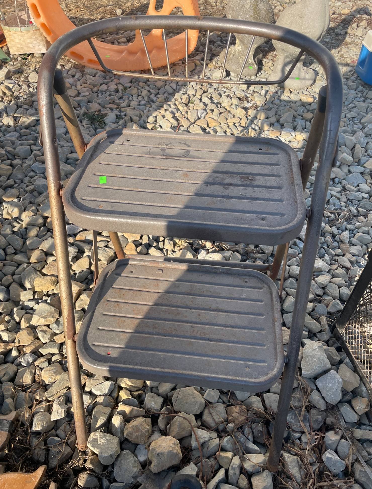 9646 Metal 2-Tier Folding Step Stool With Wire Backrest 28”