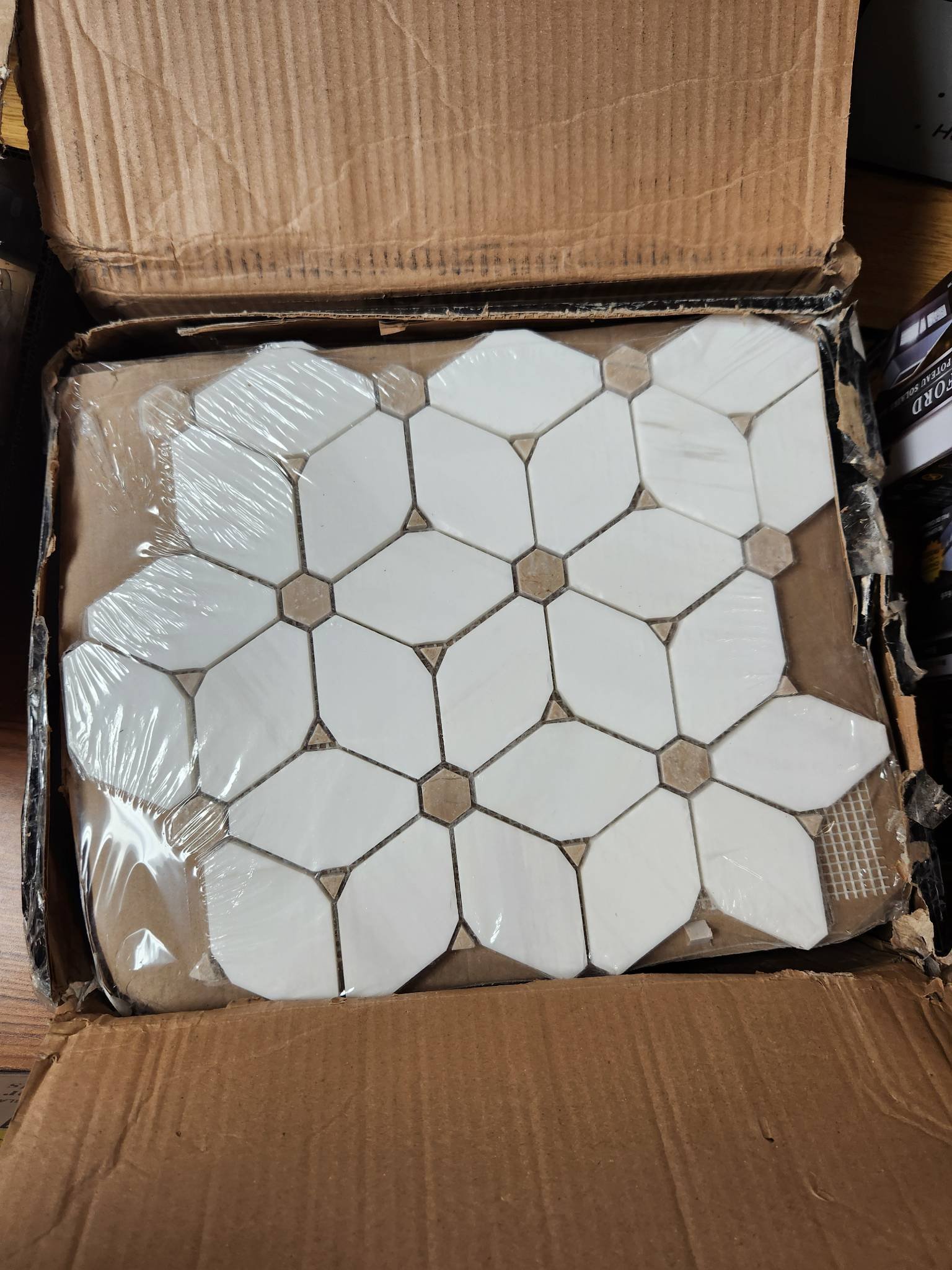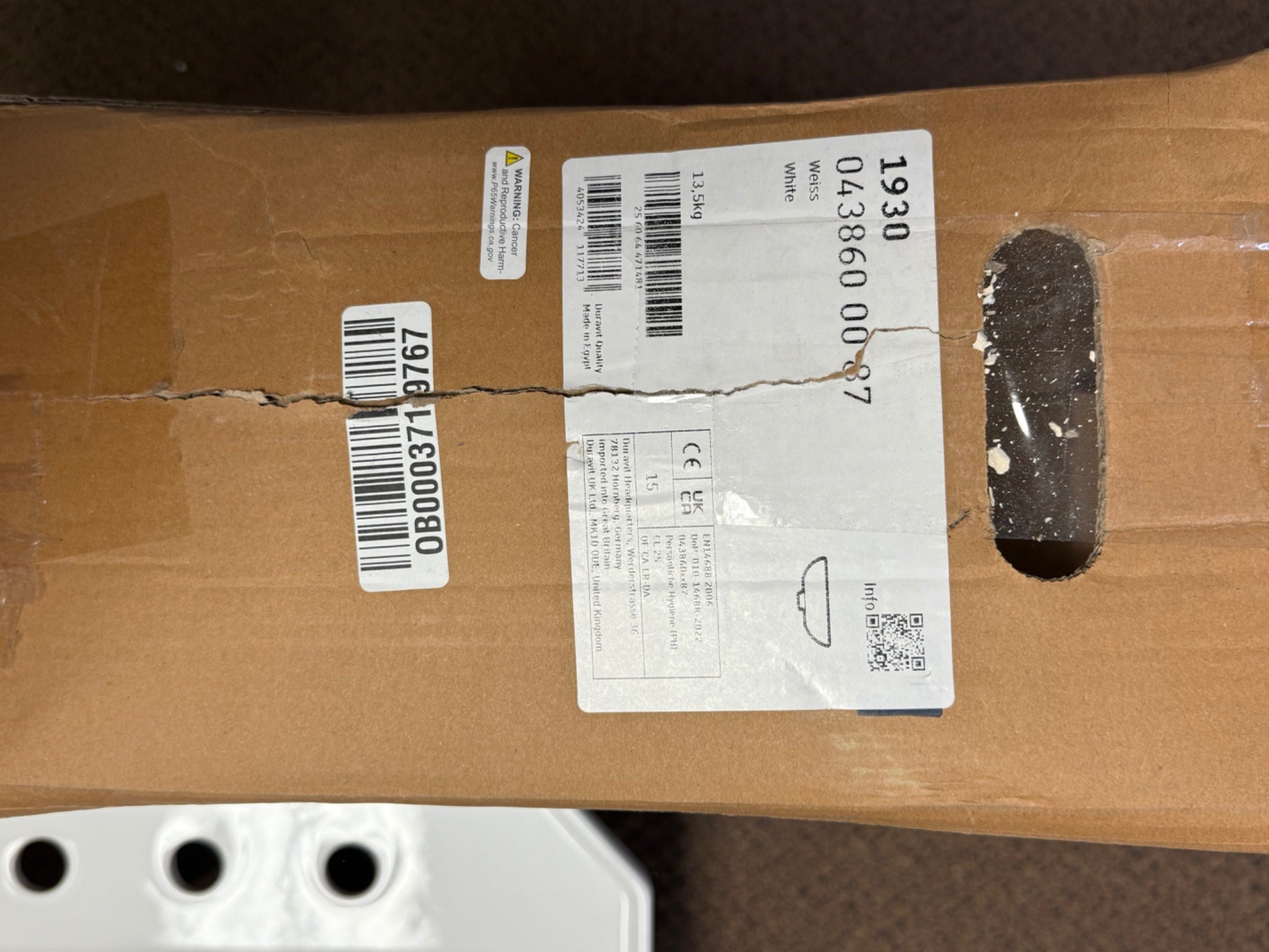 4606 White Porcelain Bathroom Sink with Octagonal Design and 4 Faucet Holes 1930 Series 7.875 in. Bathroom Sink in White Ceramic bottom cracked but not in the bowl.