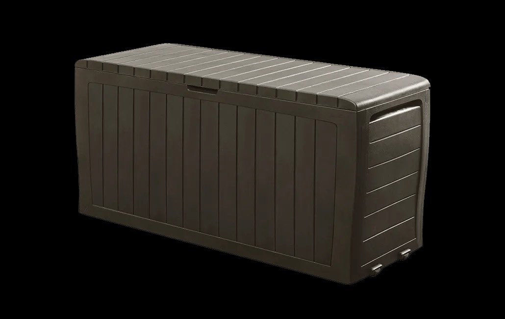 5024 Keter Hudson Plastic Storage Bench, 60-Gallon Capacity, Non-Brushed Brown 35×52.2×24 in.